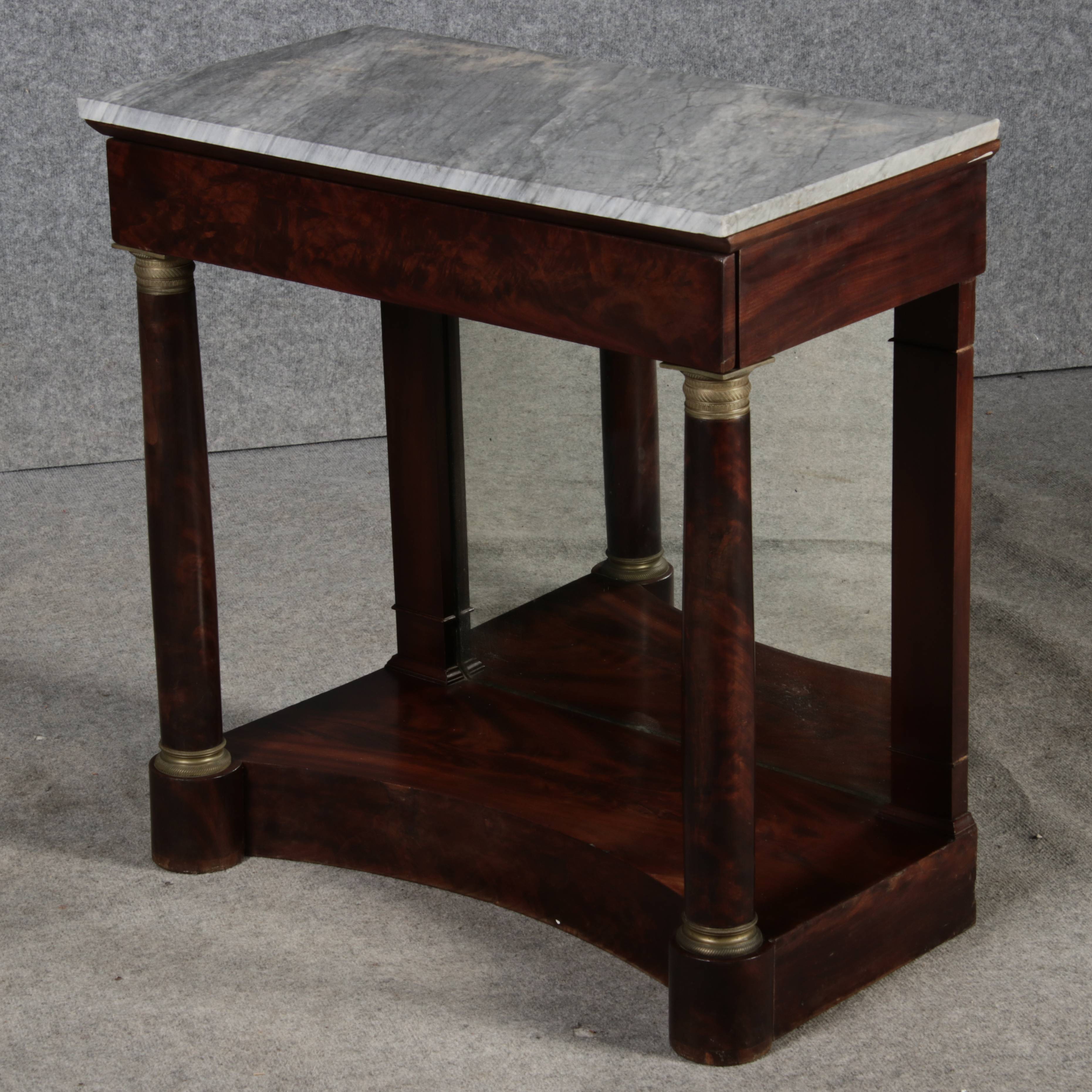 Antike Empire Wandkonsole Mahagoni Marmor Spiegel Messing Basen und Kapitele um 1810 | ||