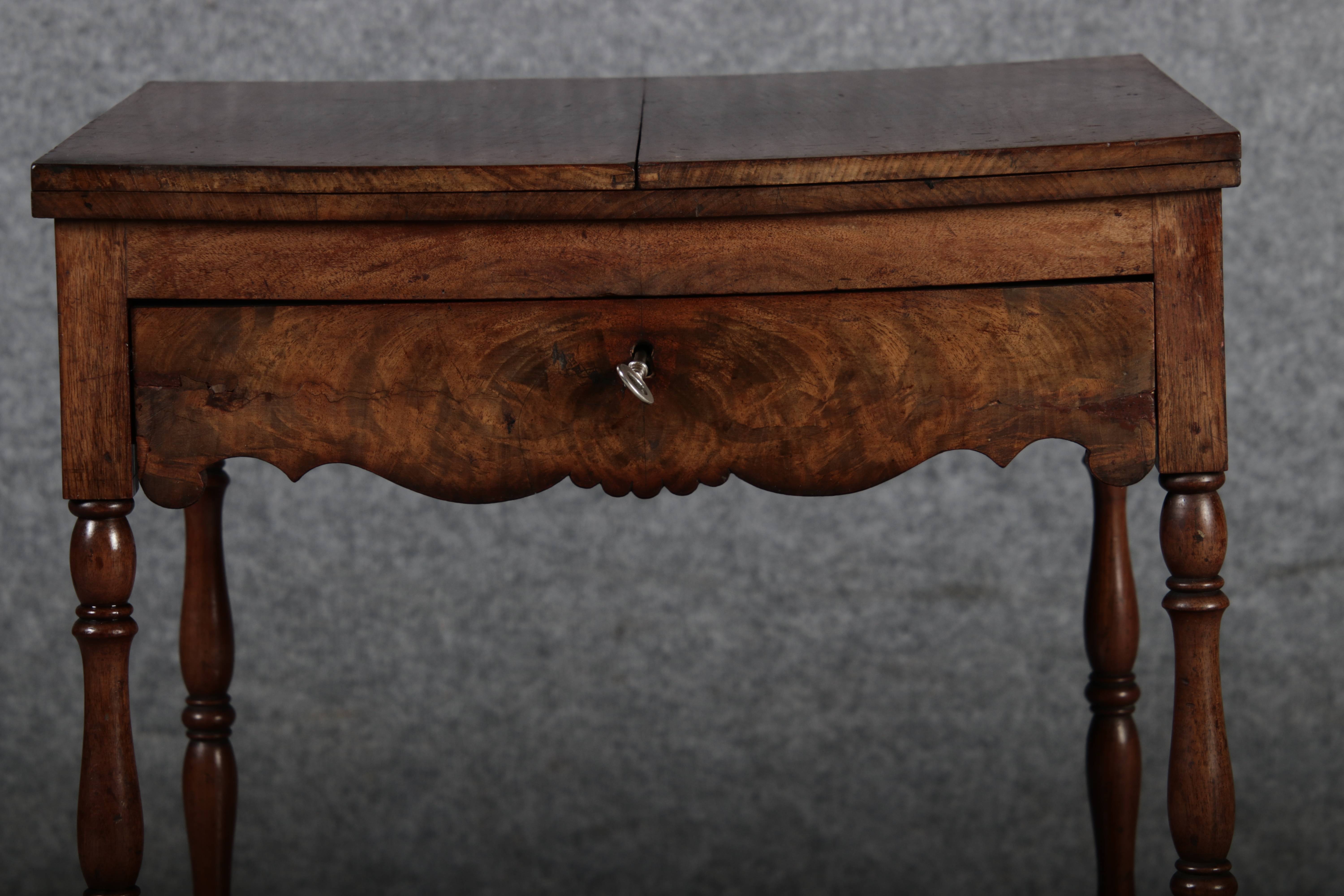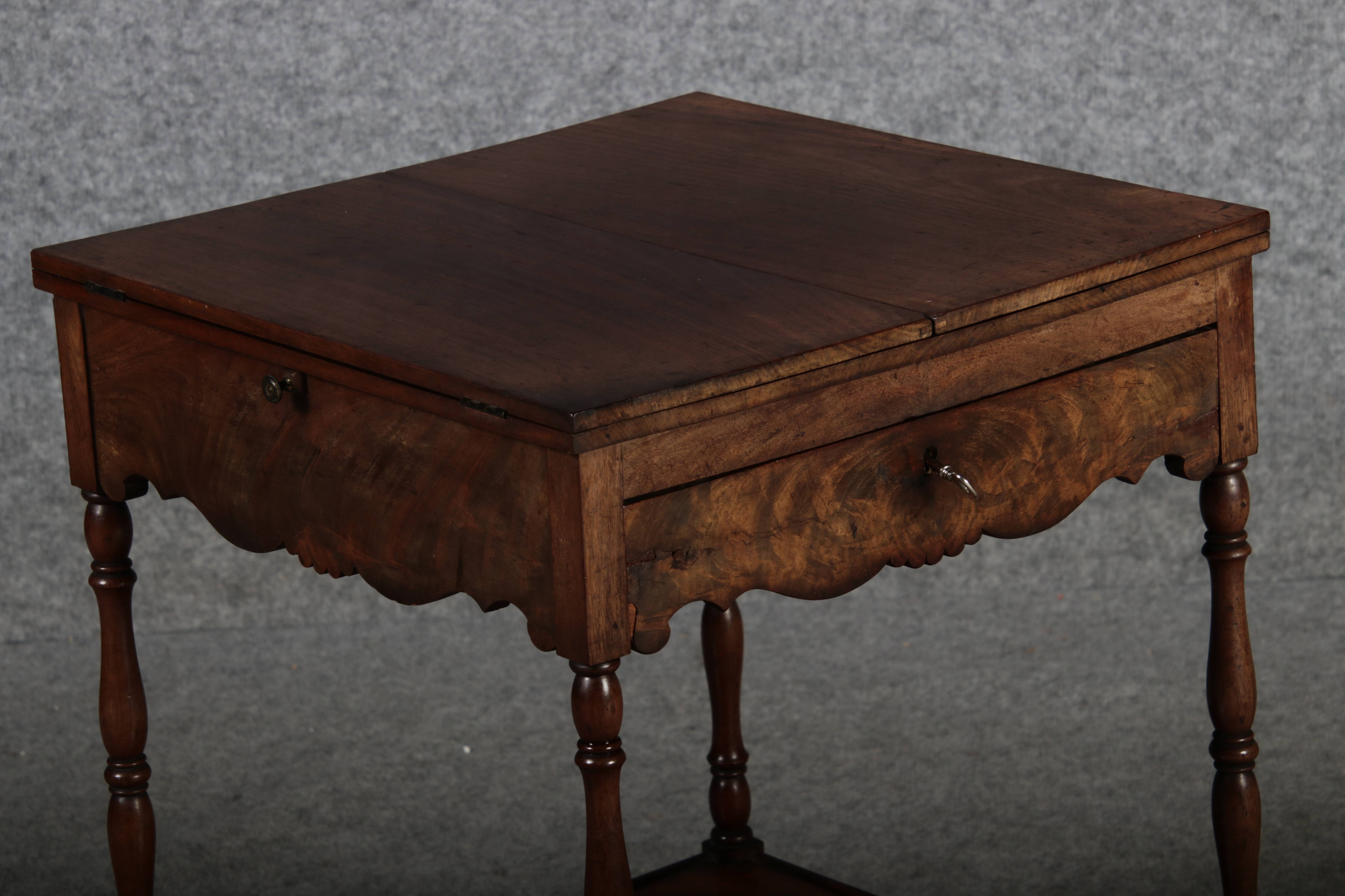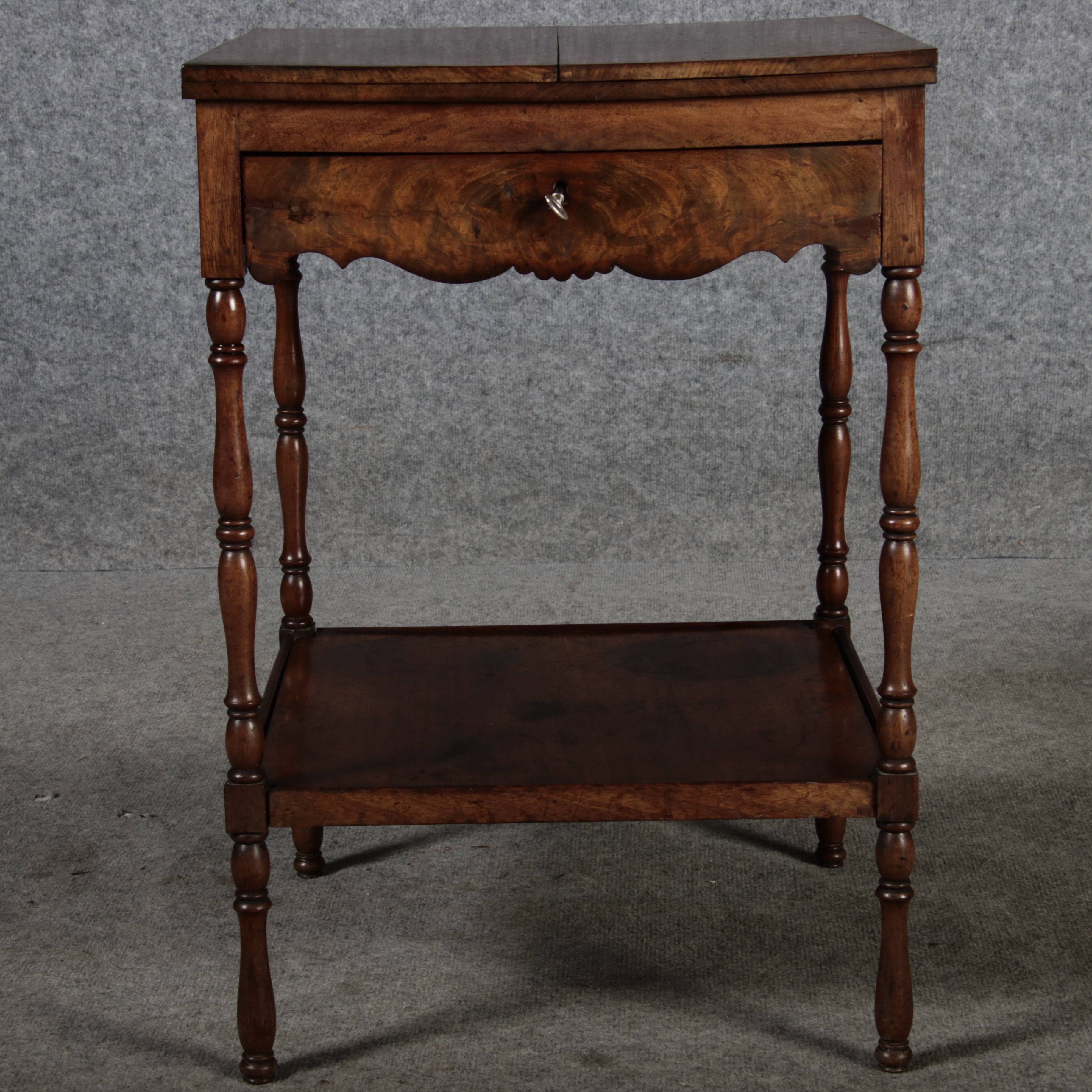 Masse/dimensions: Höhe/Height ca. 67 cm, Breite /Broad ca. 46 cm, Breite aufgeklappt/Broad unfoldedca. 92 cm, Tiefe /Deep ca. 46 cm Material/material Das Material ist Mahagoni ,er hat 1 Schlüssel