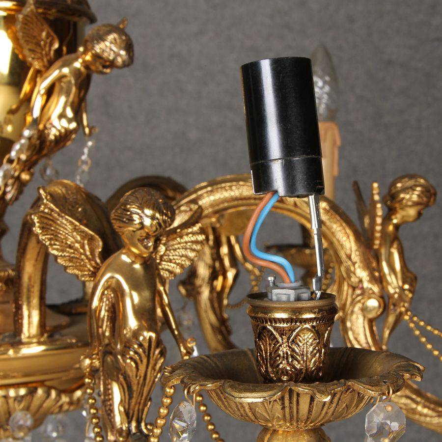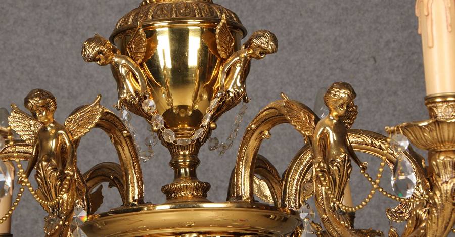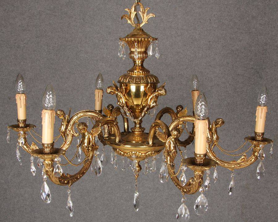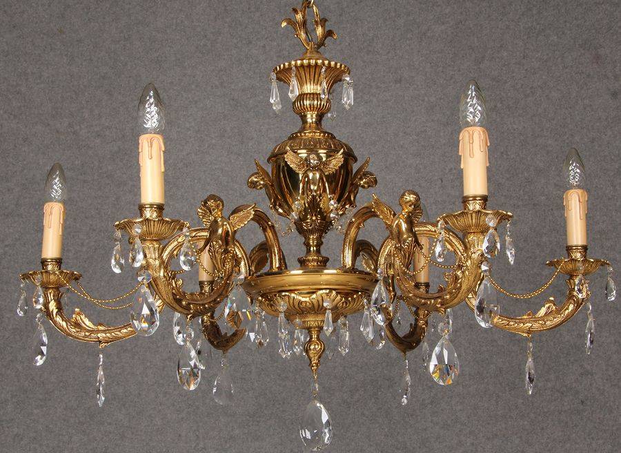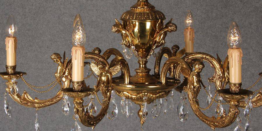 Durchmesser/diameter ca. 80 cm. Material, Brennstellen/material, Hotspots: Die Lampe wurde aus Bronze und Messing gefertigt und hat 6 Brennstellen mit E14 Fassung