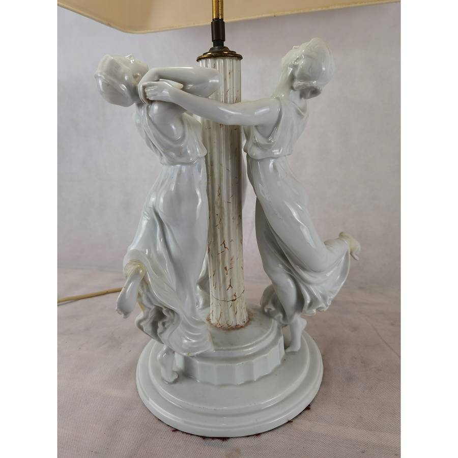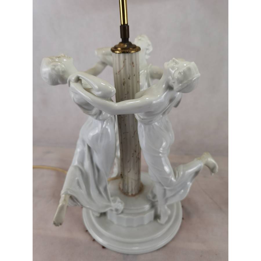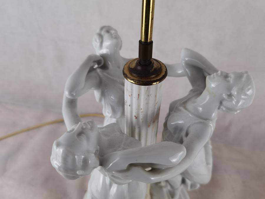 Masse/dimensions: Höhe/Height ca. 75 cm, Maximale Breite /Maximumum width ca. 45 cm Maximale Tiefe/Maximumum depth ca. 45 cm Material, Brennstellen/material, Hotspots: Die Lampe wurde aus Porzelan gefertigt und hat 2 Brennstellen mit E27 Fassung