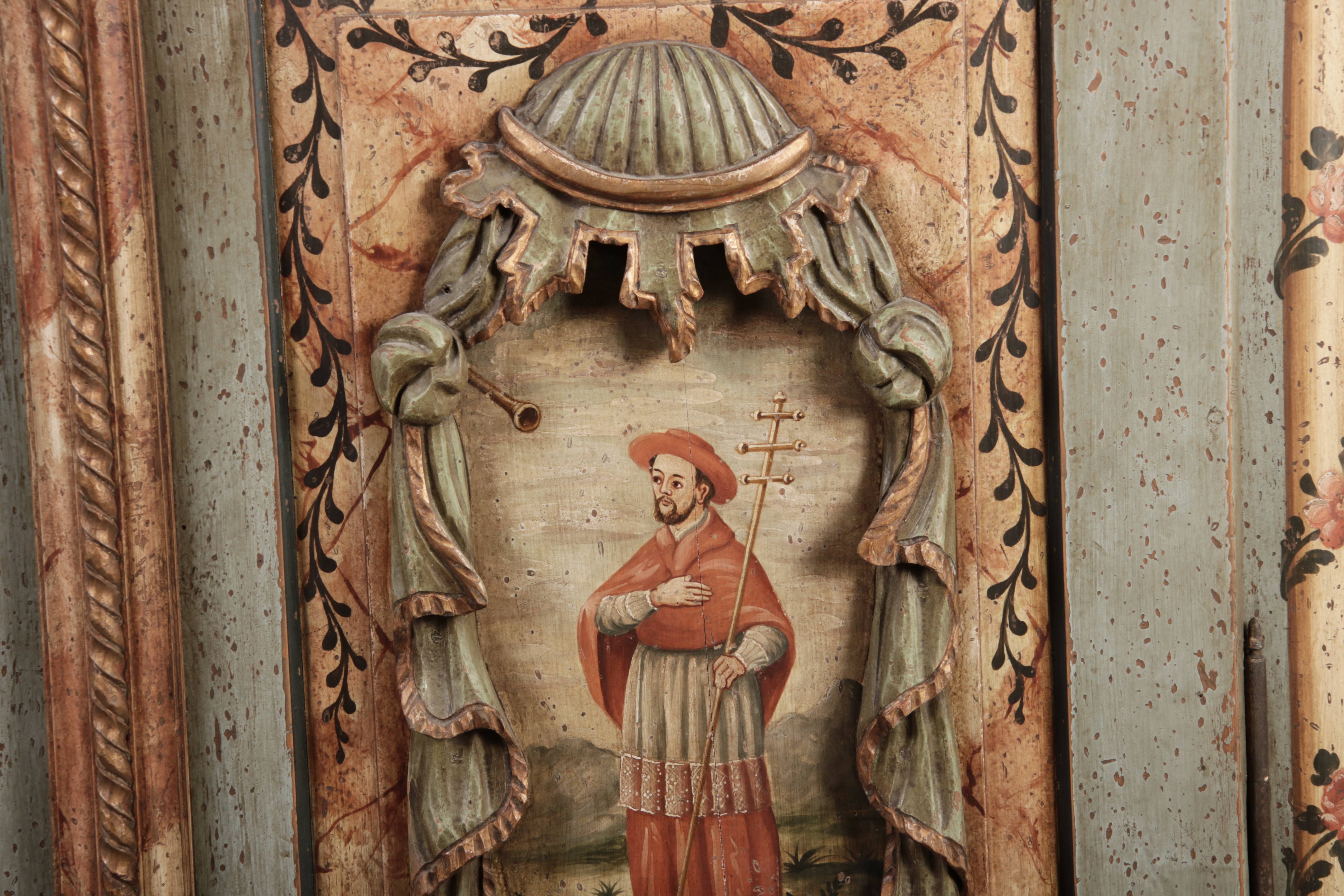 Barockschrank aus dem 19 Jh. mit aufwendig geschnitzten Türfeldern.Die vier Felder mit Schnitzwerk und Darstellungen von S. Gregorius, S. Ambrosius, S. Augustinus und S. Hieronymus