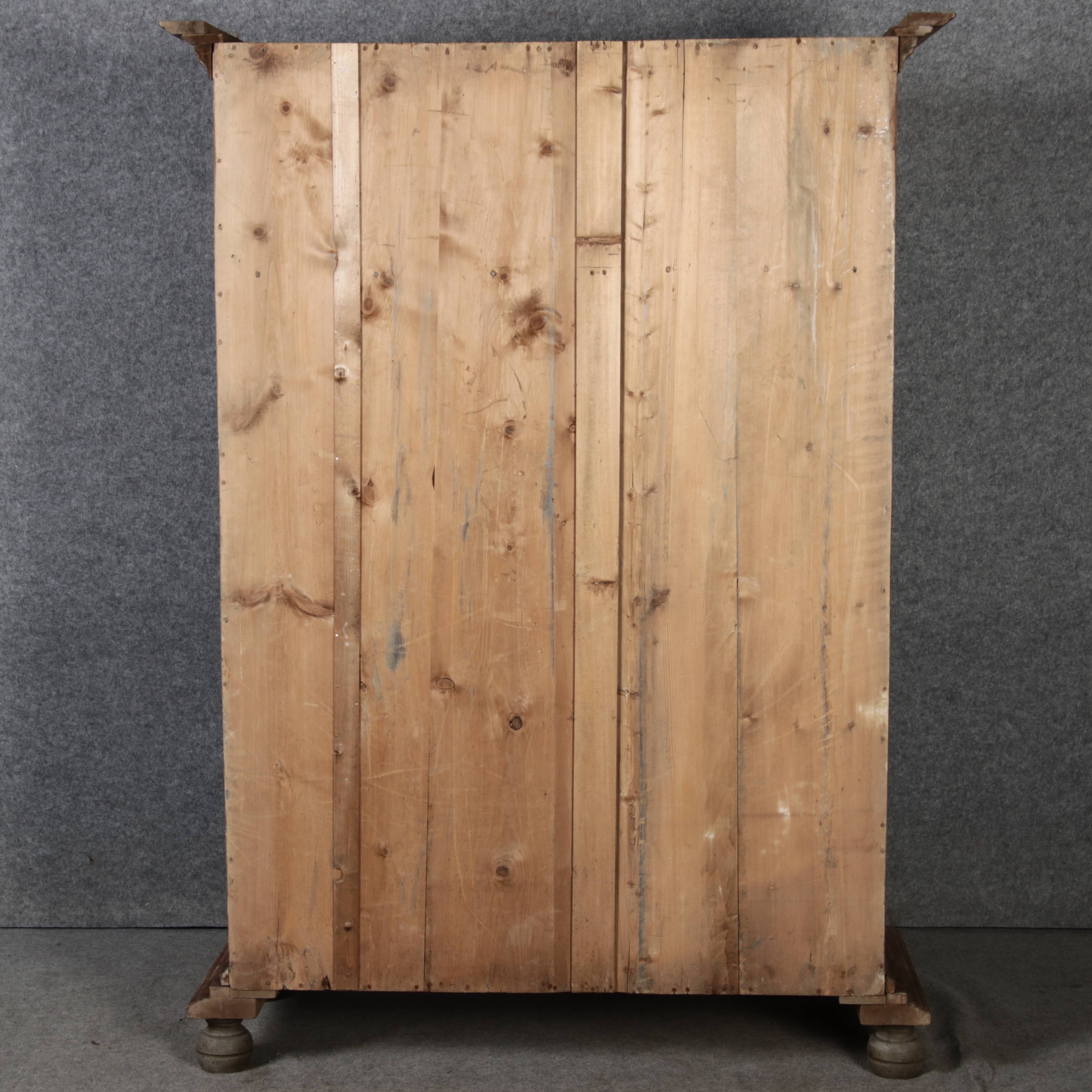 Masse/dimensions: Höhe/Height ca. 201 cm, Breite Korpus/Broad Boda ca. 126 cm, Breite Gesims/Broad cornice ca. 145 cm, Tiefe Korpus/Deep body ca. 49 cm, Tiefe Gesims/Deep cornice ca. 58 cm,