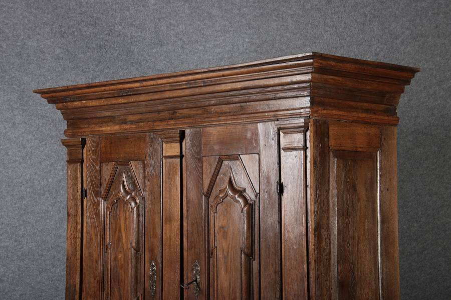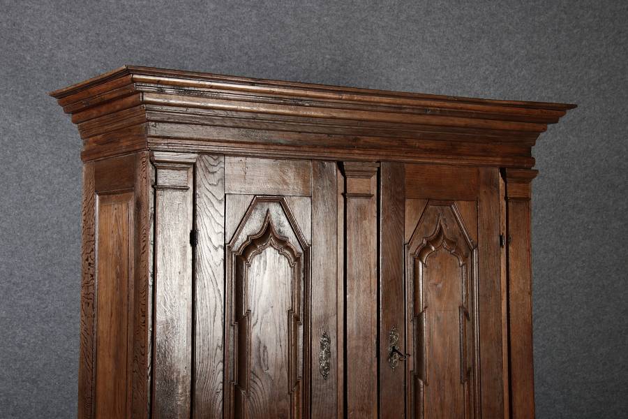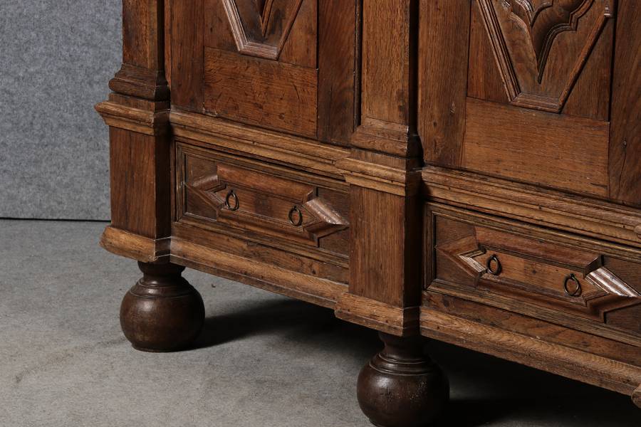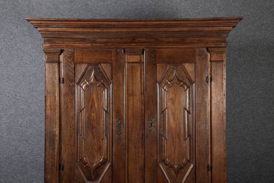 Antiker Barockschrank Ostfriesland mit Bastionsfüllungen erste Hälfte 18 Jh. um 1730, Eiche Massiv. |