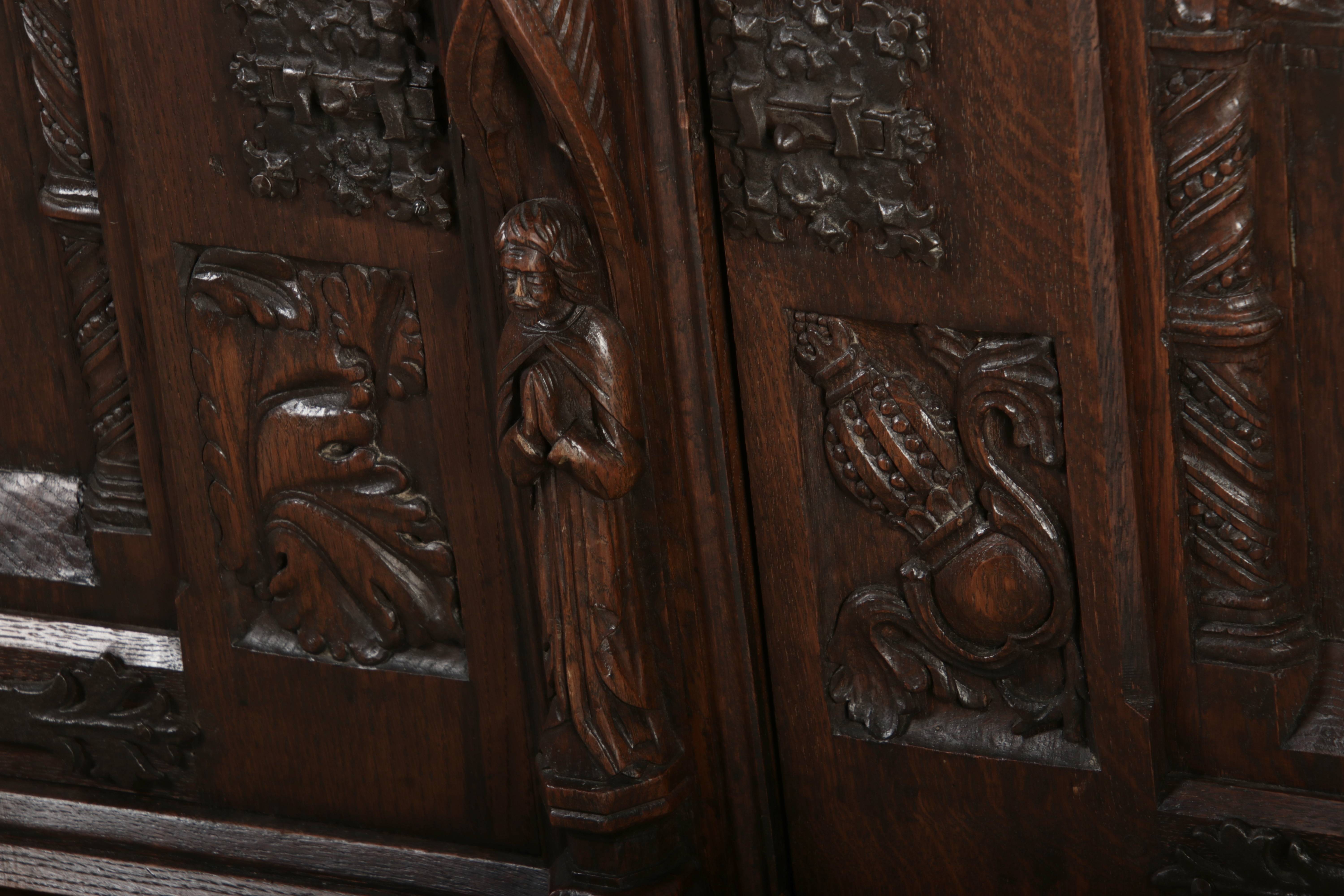| Antiker Historismus Schrank im Gotischen Stil Schnitzwerk Eiche Massiv |