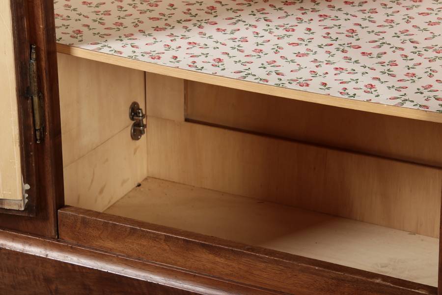Beschreibung/description: Biedermeier Schrank aus Nussbaum, um 1830 – innen neu ausgeschlagen, sehr sauberDieser elegante Biedermeierschrank um 1830 präsentiert sich in wunderschönem Nussbaum, dessen spiegelbildliche Maserung (Fladerung) auf den Türen ein besonders edles und harmonisches Gesamtbild erzeugt. Die klaren Linien und die zeittypische, zurückhaltende Formgebung machen diesen Schrank zu einem klassischen Vertreter der Biedermeier-Epoche. Der Innenraum wurde vollständig mit neuem Holz ausgeschlagen und befindet sich in absolut sauberem, gepflegtem Zustand – ideal für den sofortigen praktischen Einsatz. Die Rückwand wurde sachgerecht ergänzt, was zur Stabilität und Langlebigkeit des Möbelstücks beiträgt, ohne die authentische Gesamtwirkung zu beeinträchtigen. Merkmale: