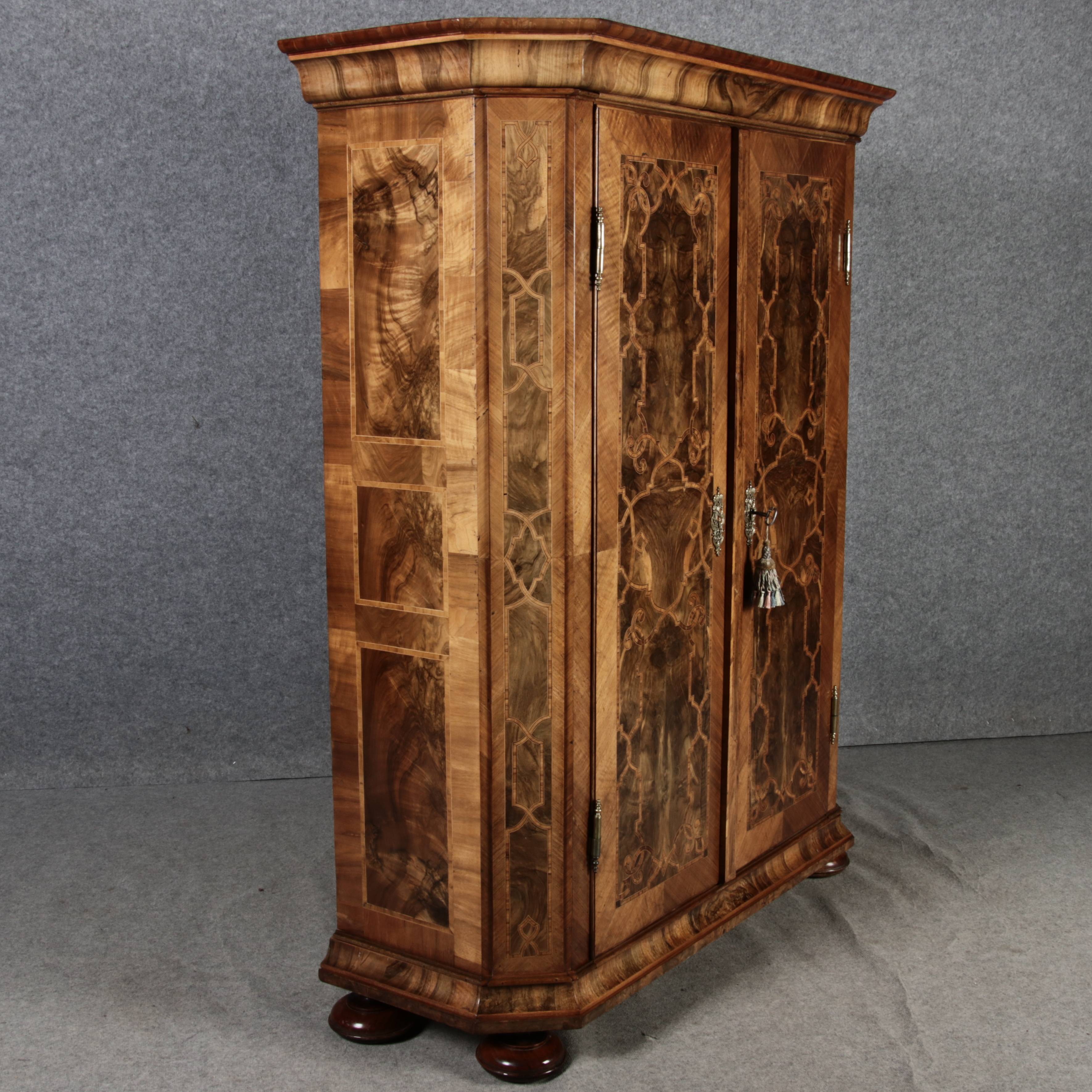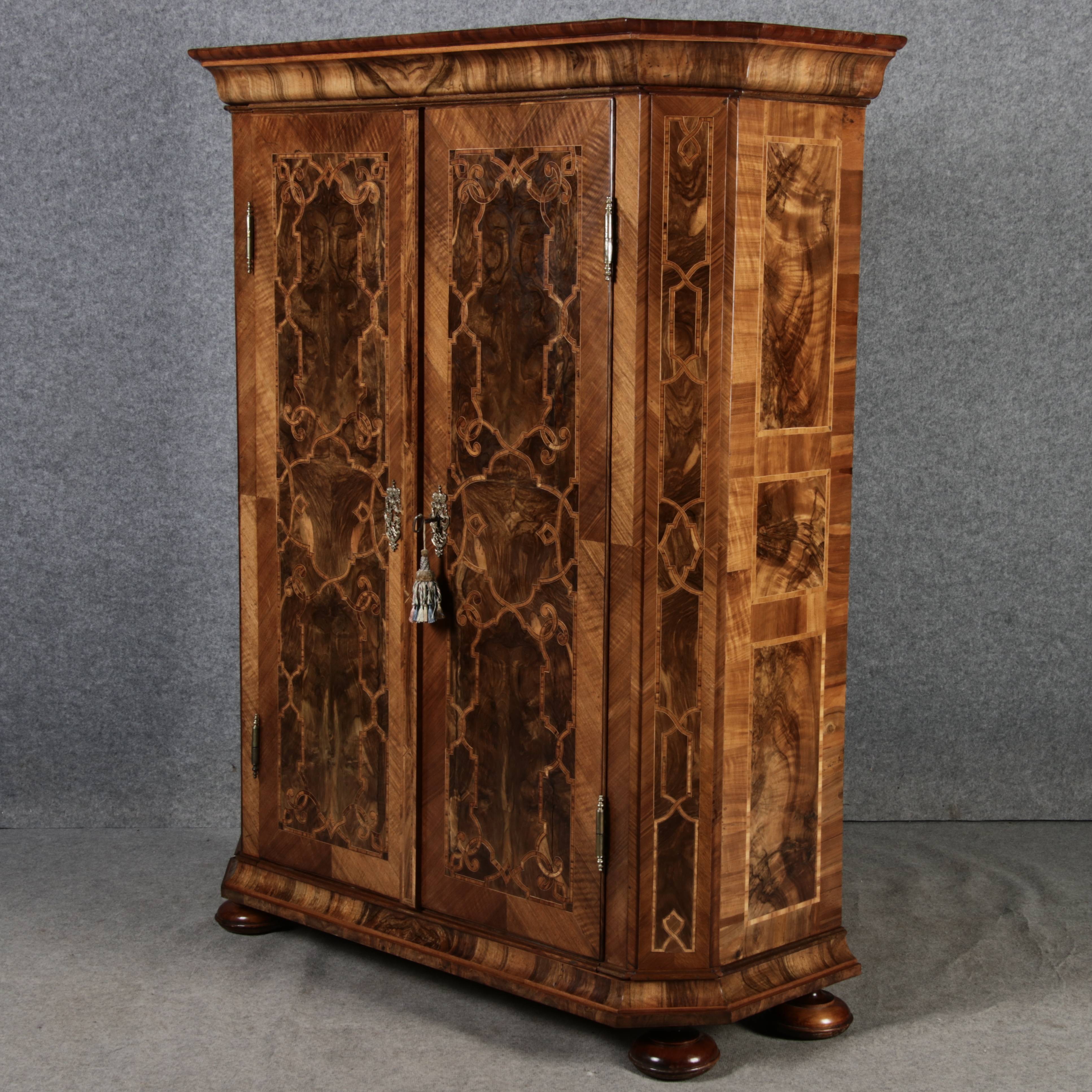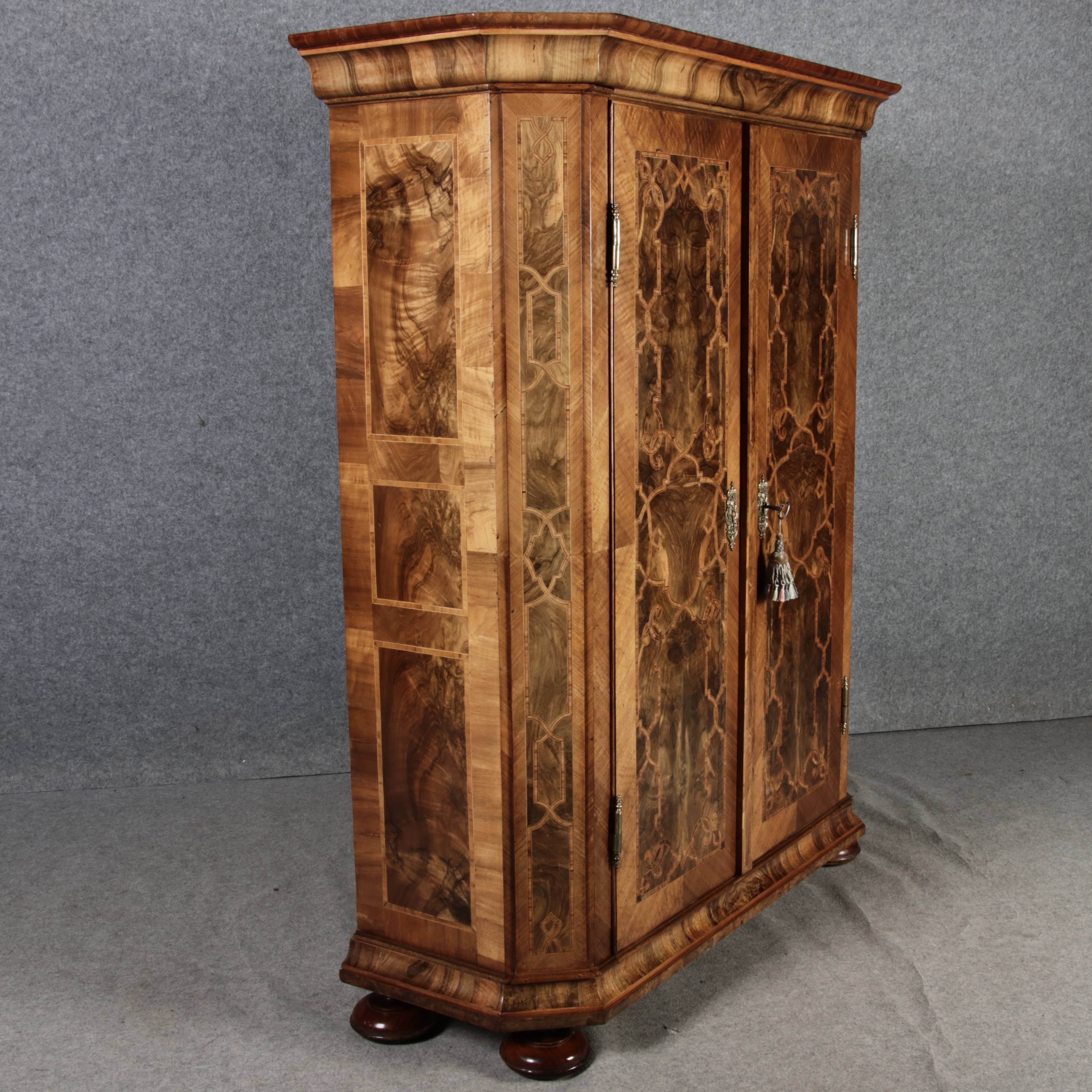 Masse/dimensions: Höhe/Height ca. 190 cm, Breite Korpus/Broad Boda ca. 140 cm, Breite Gesims/Broad cornice ca. 157 cm, Tiefe Korpus/Deep body ca. 48 cm, Tiefe Gesims/Deep cornice ca. 58 cm,