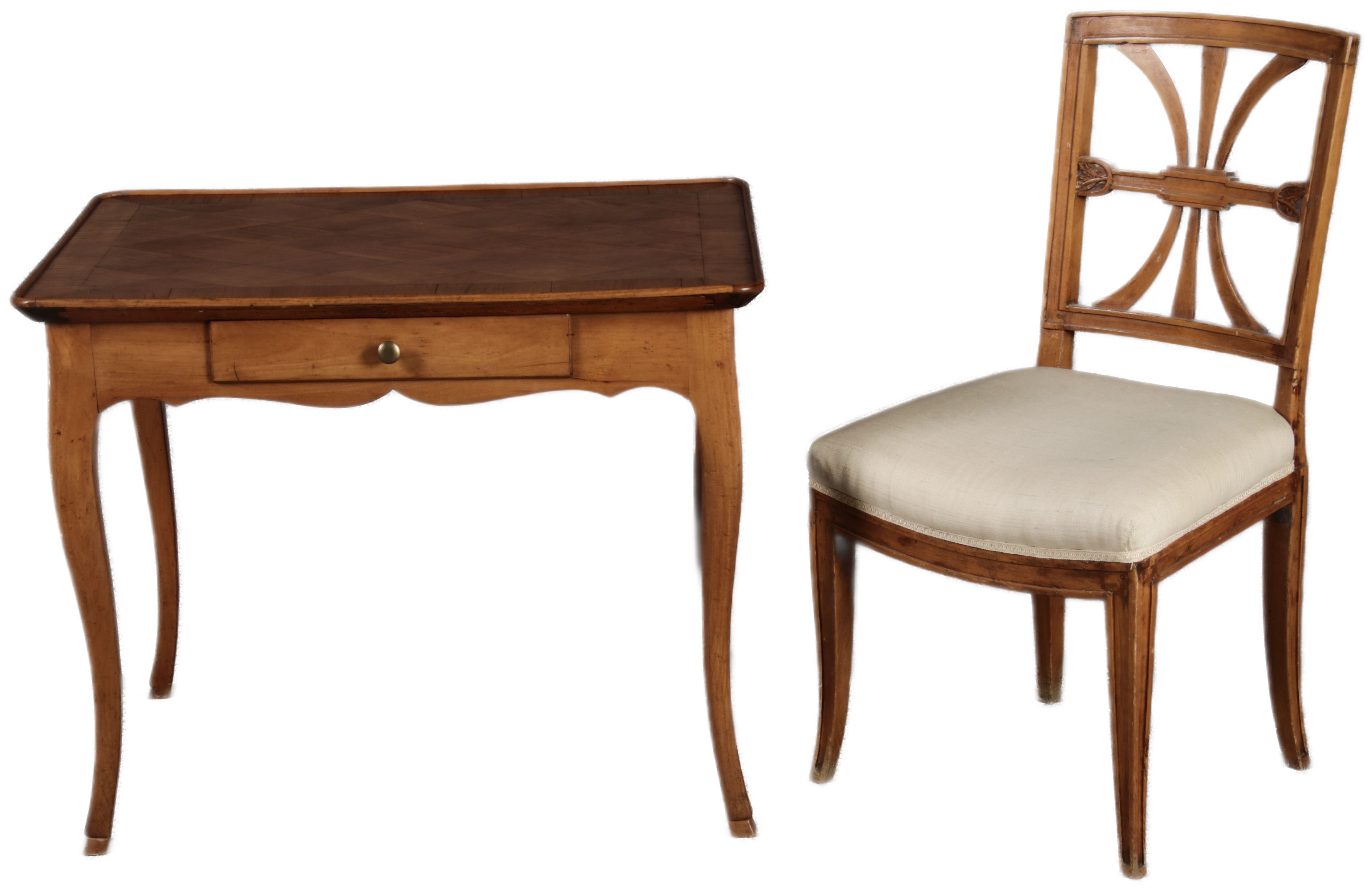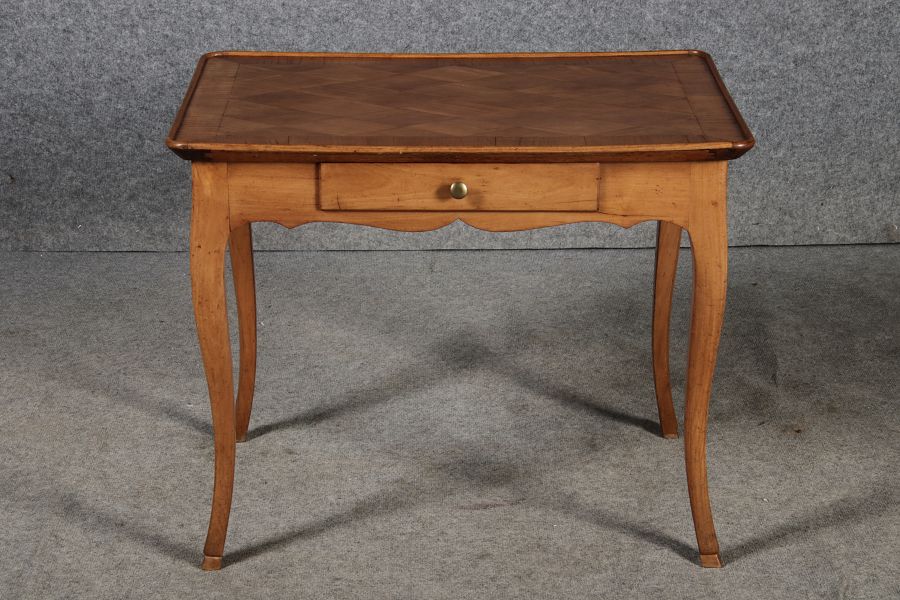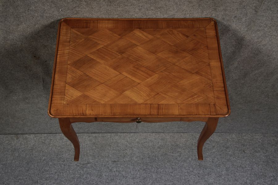 | Antiker Kleiner Damenschreibtisch Beistelltisch um 1760 Nussbaum Rauten Makerterie | ||