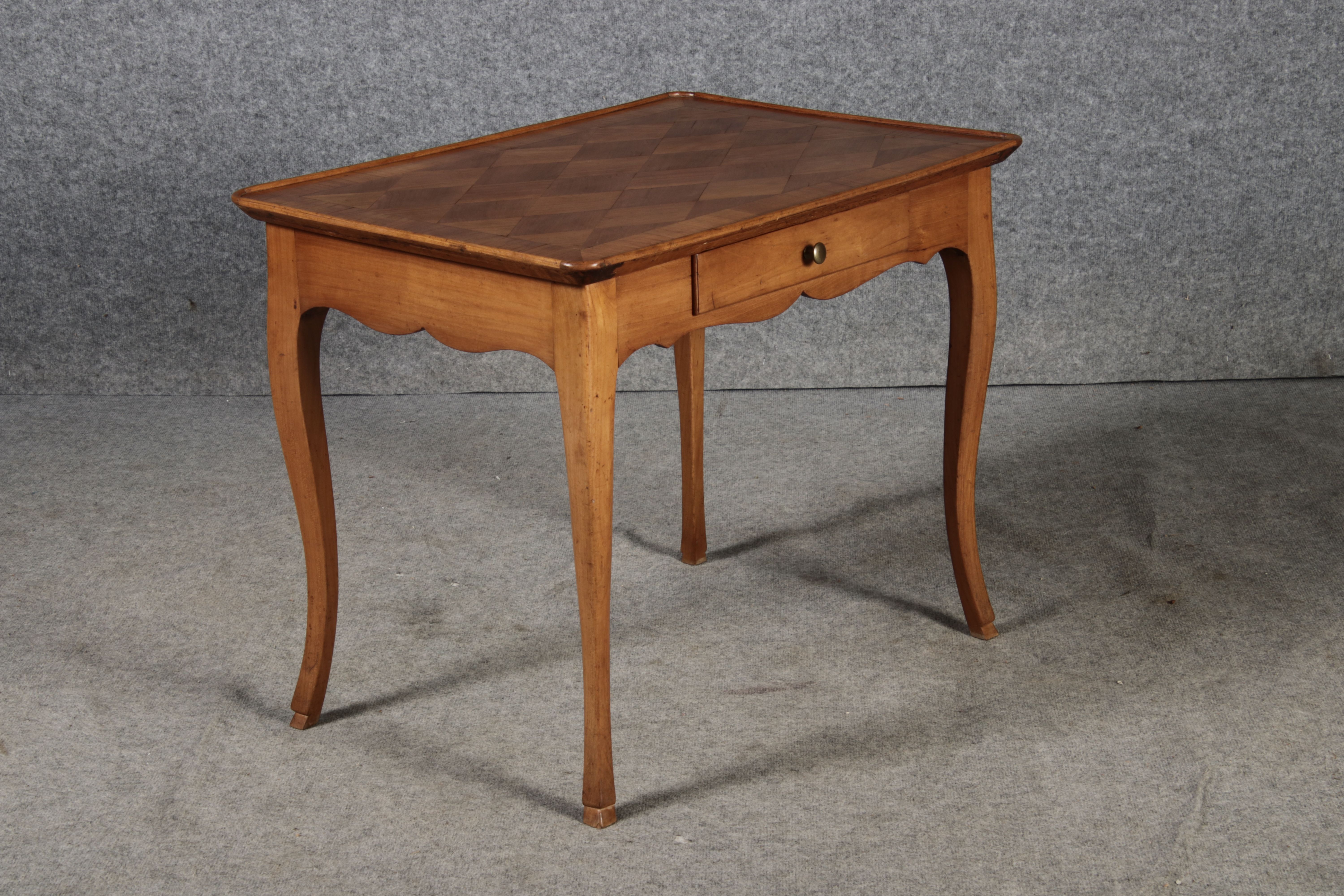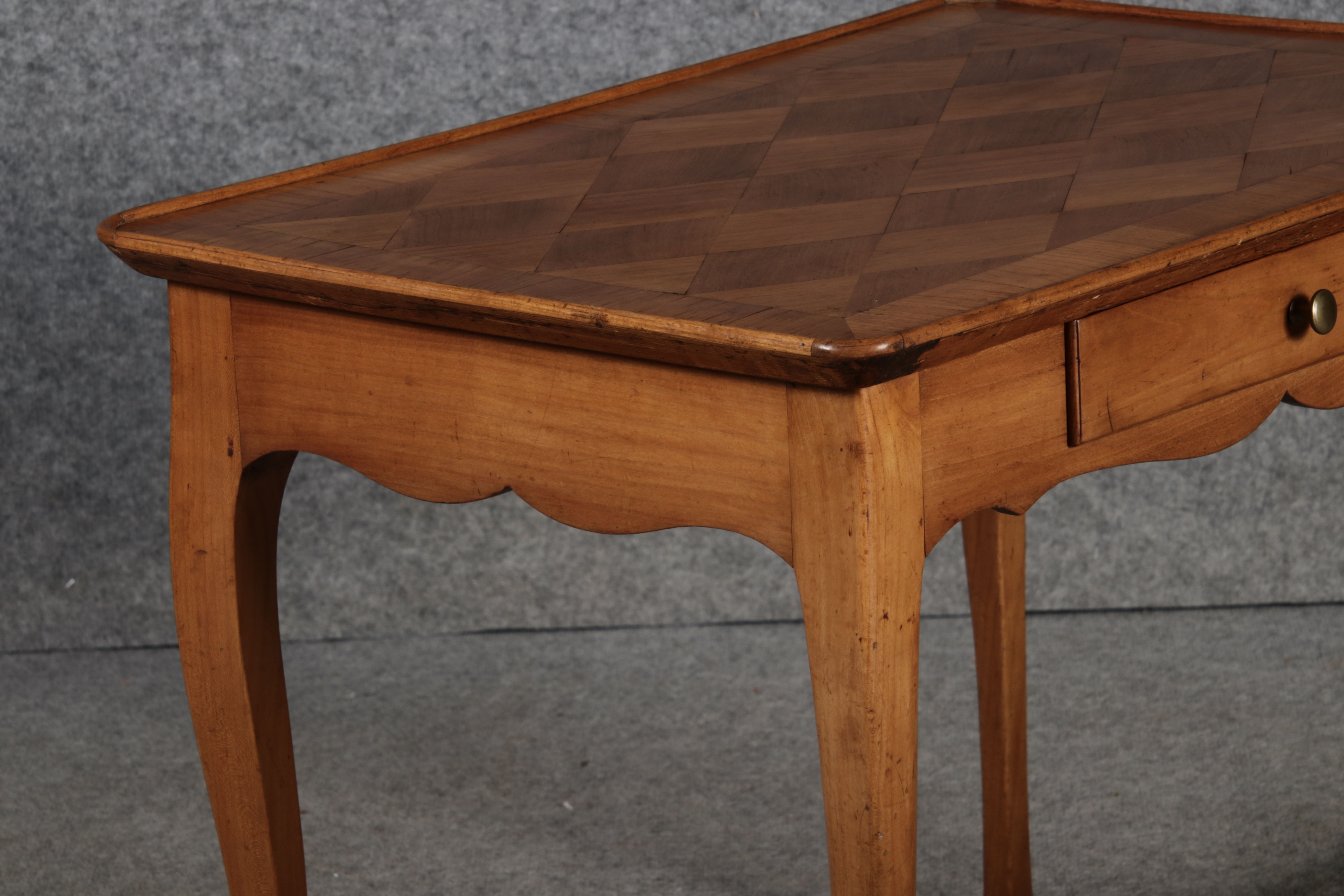 Antiker Kleiner Damenschreibtisch Beistelltisch um 1760 Nussbaum Rauten Makerterie |