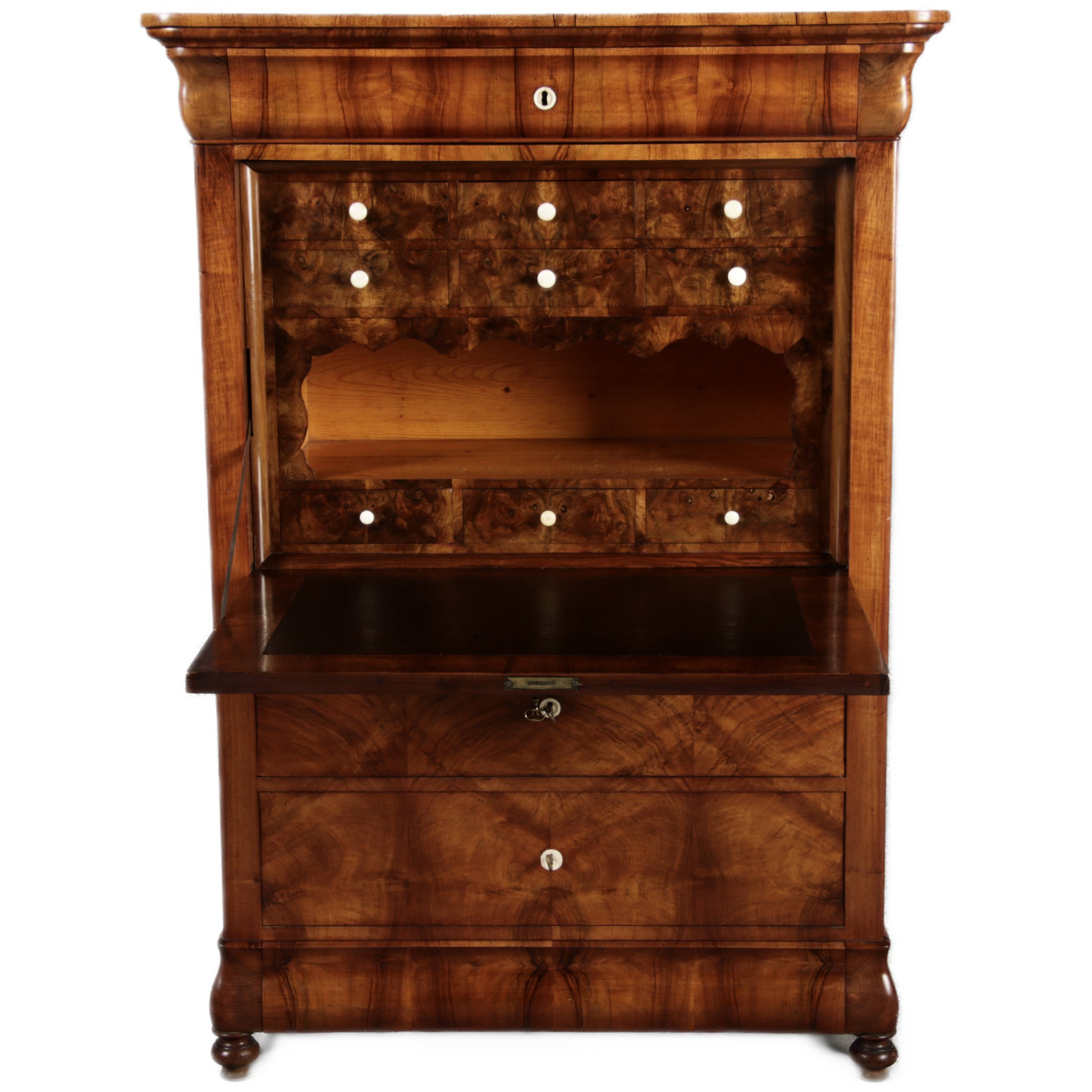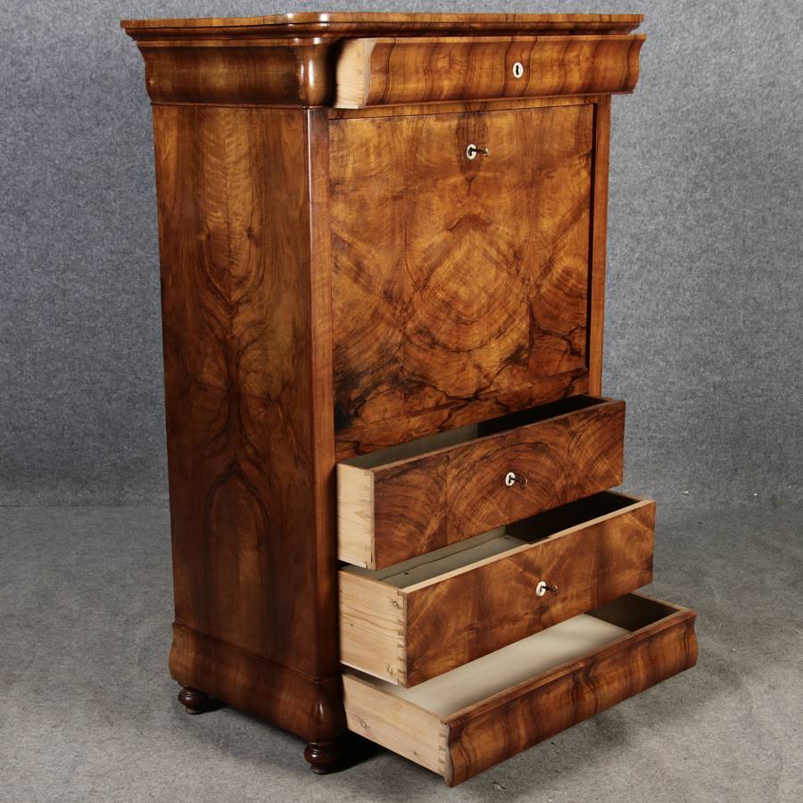 | Antiker Biedermeier- Louis Phillipe Sekretär Nussbaum um 1850 | ||