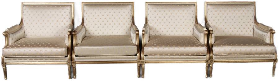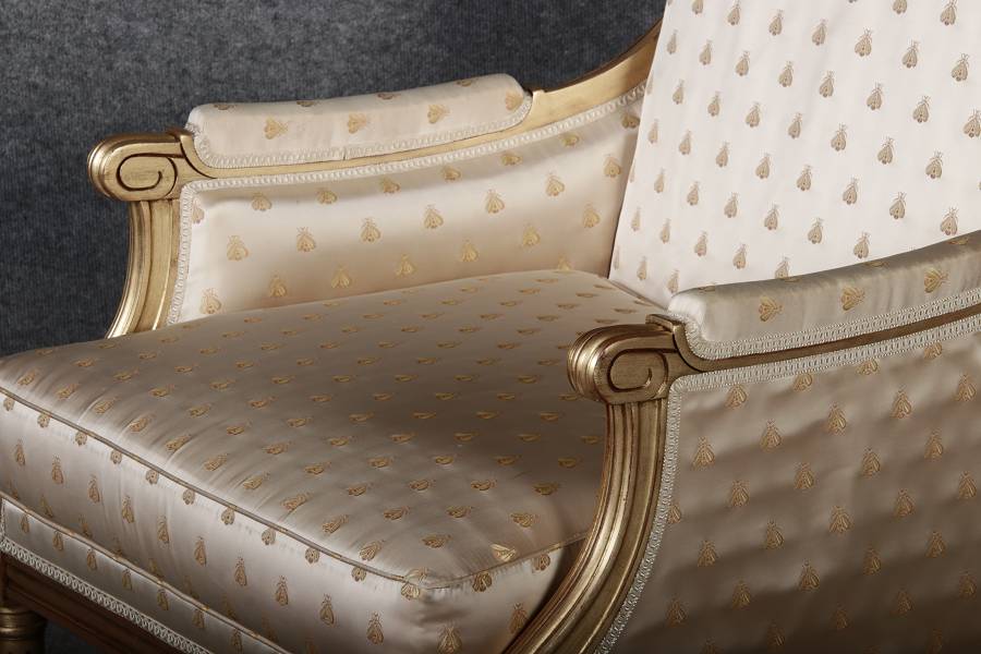Vergleichswerte zeigen jedoch das hohe Marktsegment: Der geschätzte Neupreis dieser exklusiven Sitzgruppe aus vier Sesseln und zwei Bänken dürfte daher bei ca. 25.000–30.000 €, möglicherweise auch darüber, gelegen haben. Ein seltenes Ensemble für Liebhaber klassischer französischer Möbelkunst, das Eleganz, Komfort und handwerkliche Perfektion vereint.