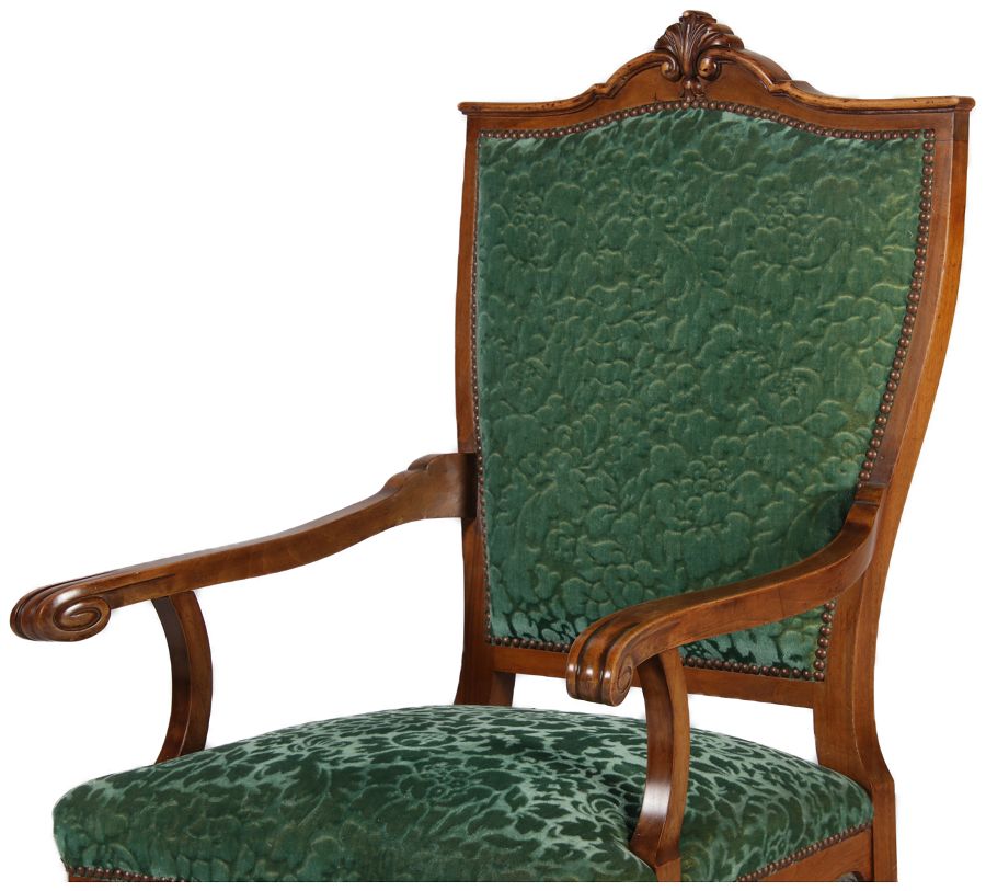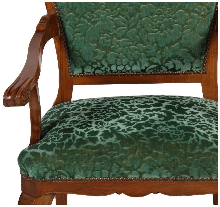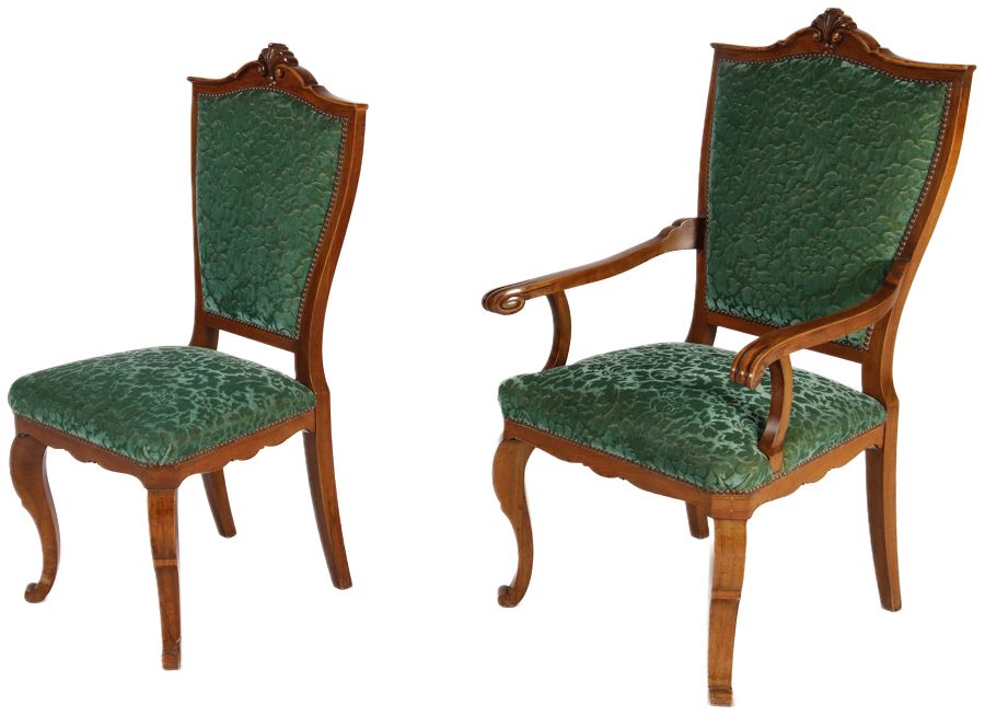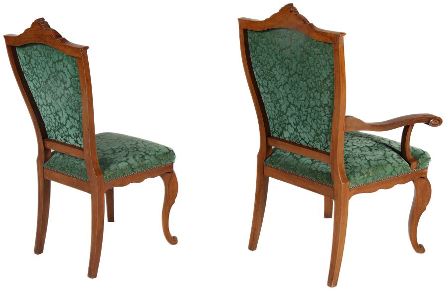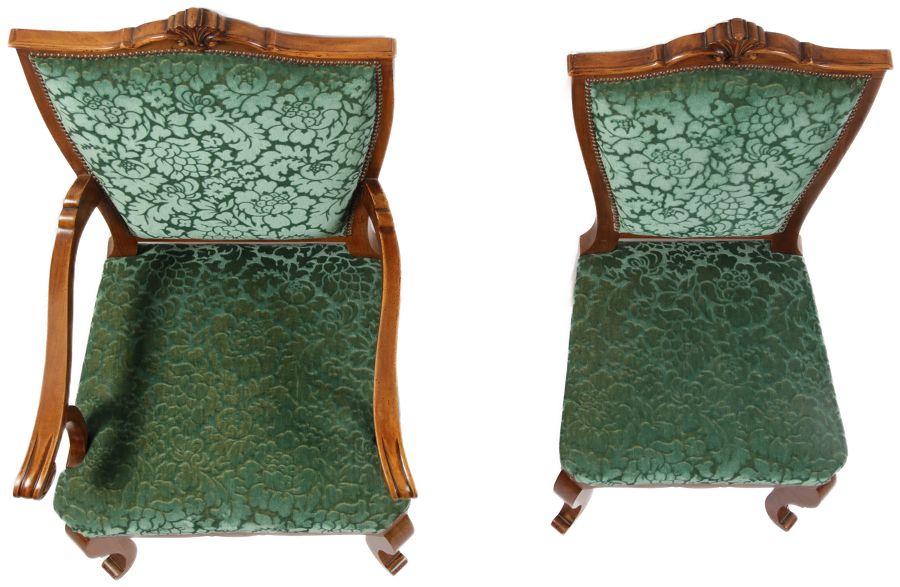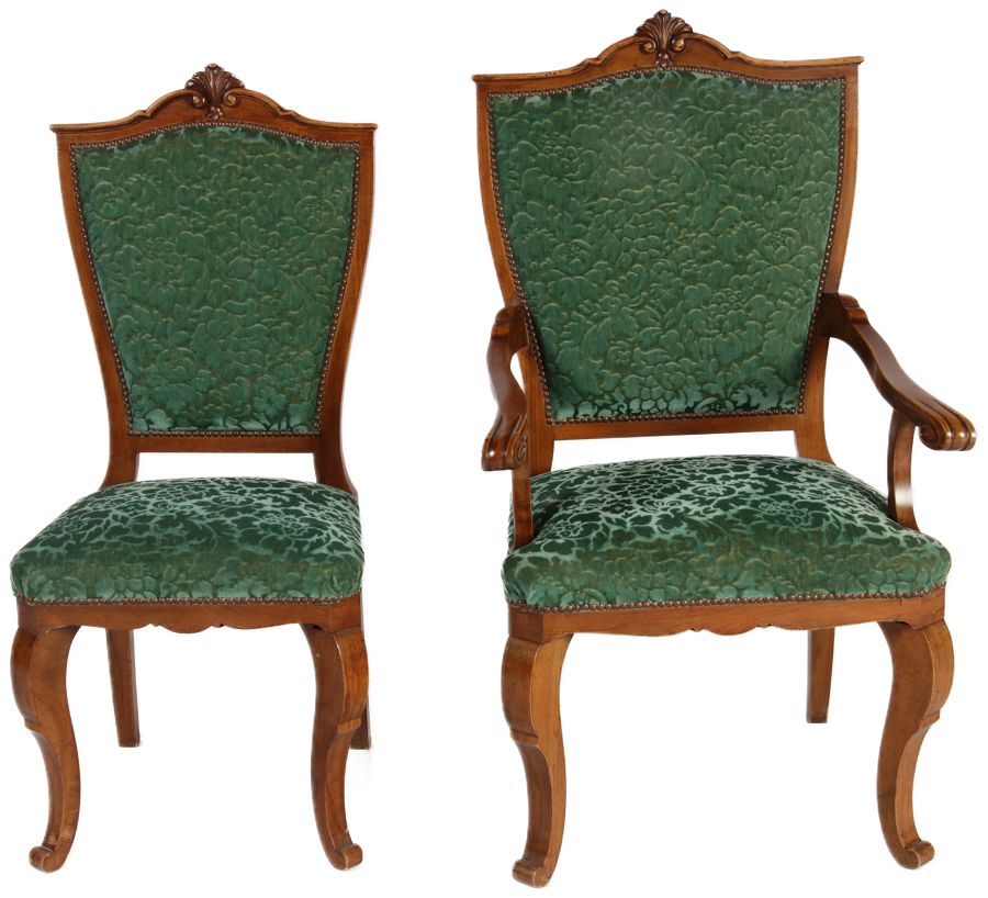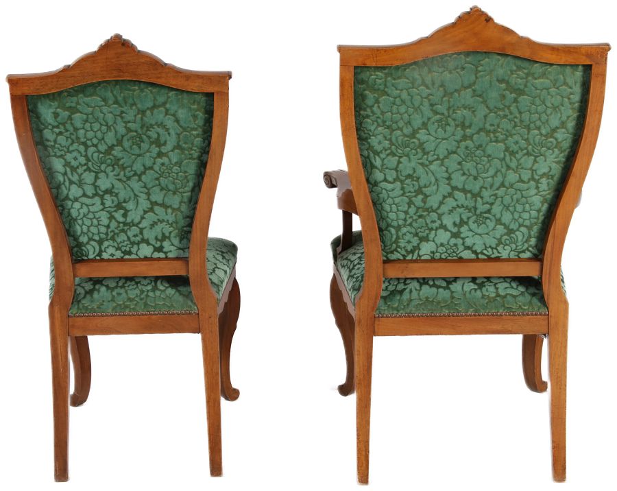 Antiker Achtersatz Stühle 2 Sesel und 6 Stühle. Viktorianisch zweite Hälfte 19 Jh. Nussbaum. |