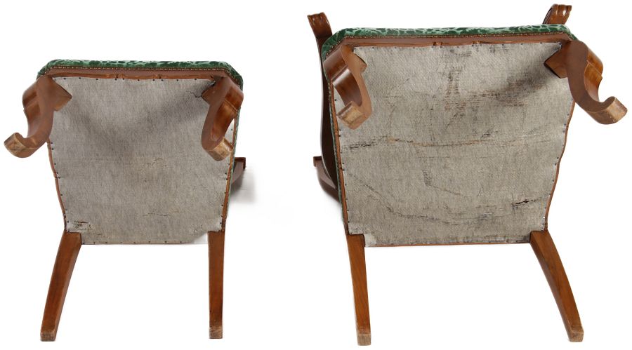 Stuhl/dimensions chair: Sesel Höhe/Height ca. 115 cm, Sitzhöhe/seat height ca. 50 cm, Breite ca. 66 cm, Tiefe ca. 58 cm. Stühle Höhe/Height ca. 109 cm, Sitzhöhe/seat height ca. 50 cm, Breite ca. 50 cm, Tiefe ca. 46 cm.