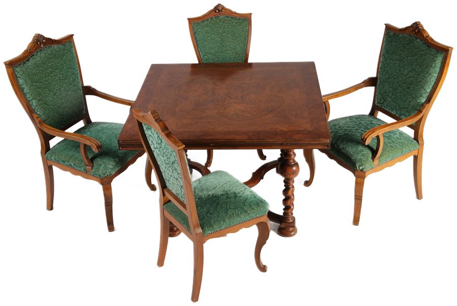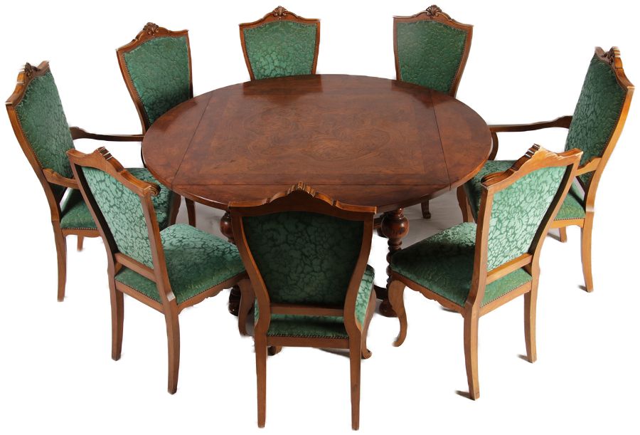 Beschreibung/description: Antiker Achtersatz Stühle 2 Sesel und 6 Stühle. Viktorianisch zweite Hälfte 19 Jh. Nussbaum.