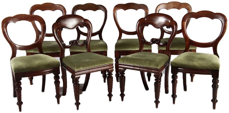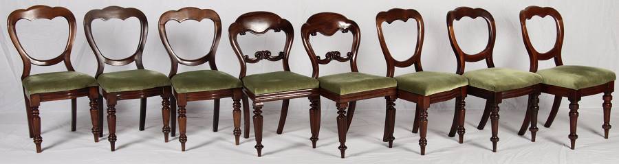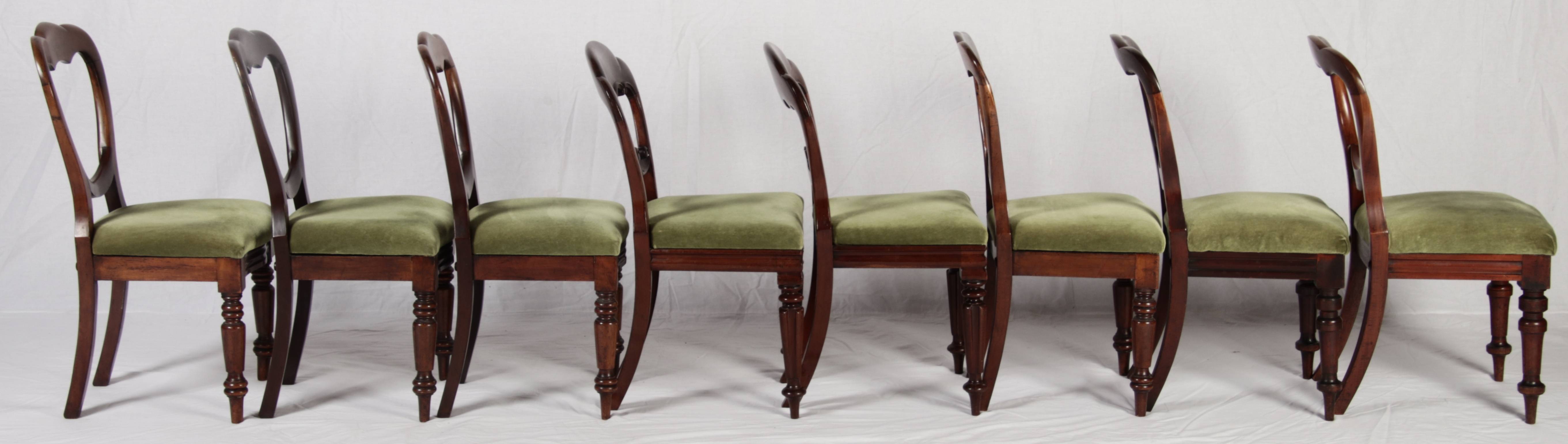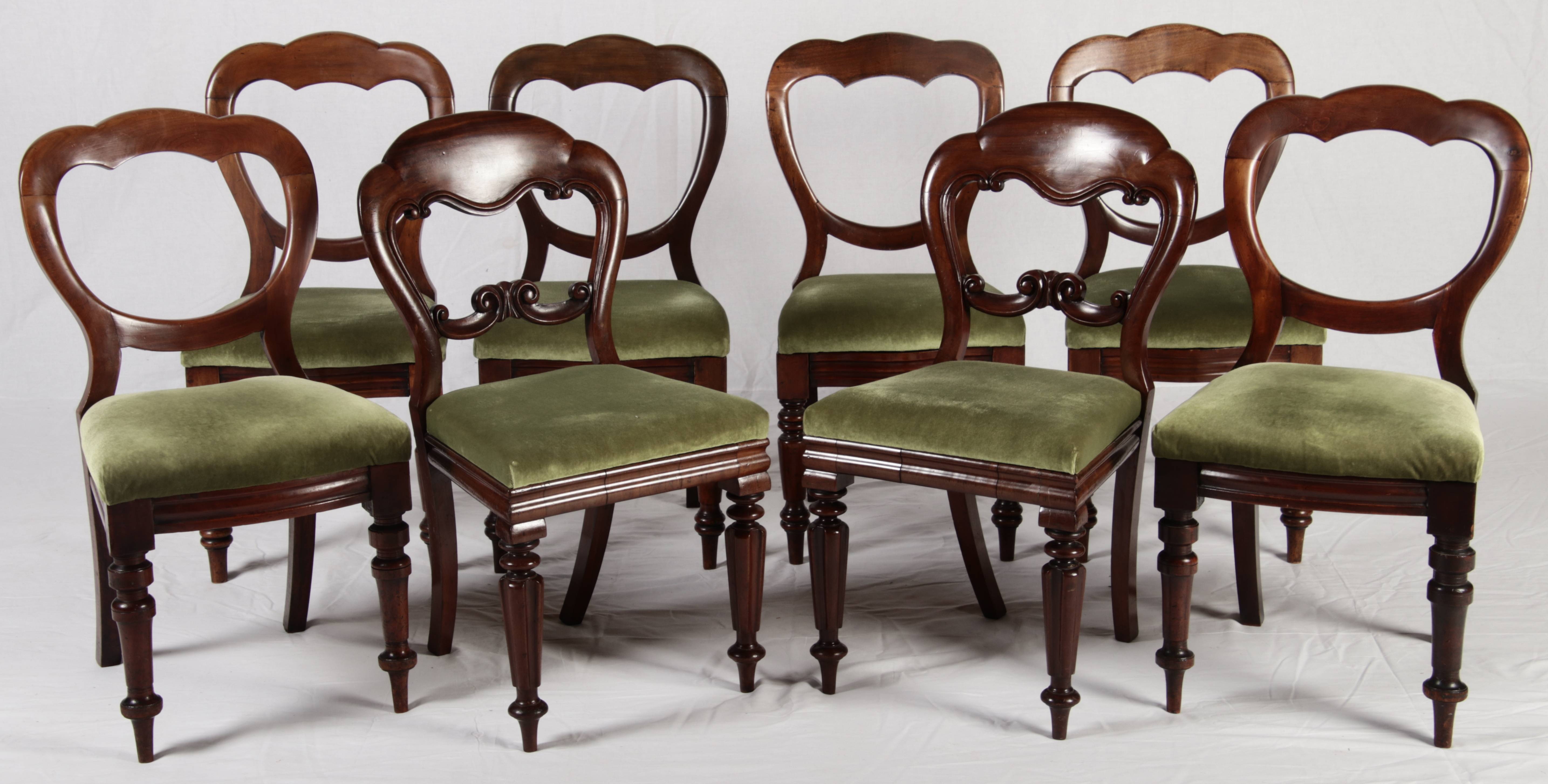 8 Antike viktorianische Stühle mit Ballonrücken aus Mahagoni 19 Jahrhundert. |