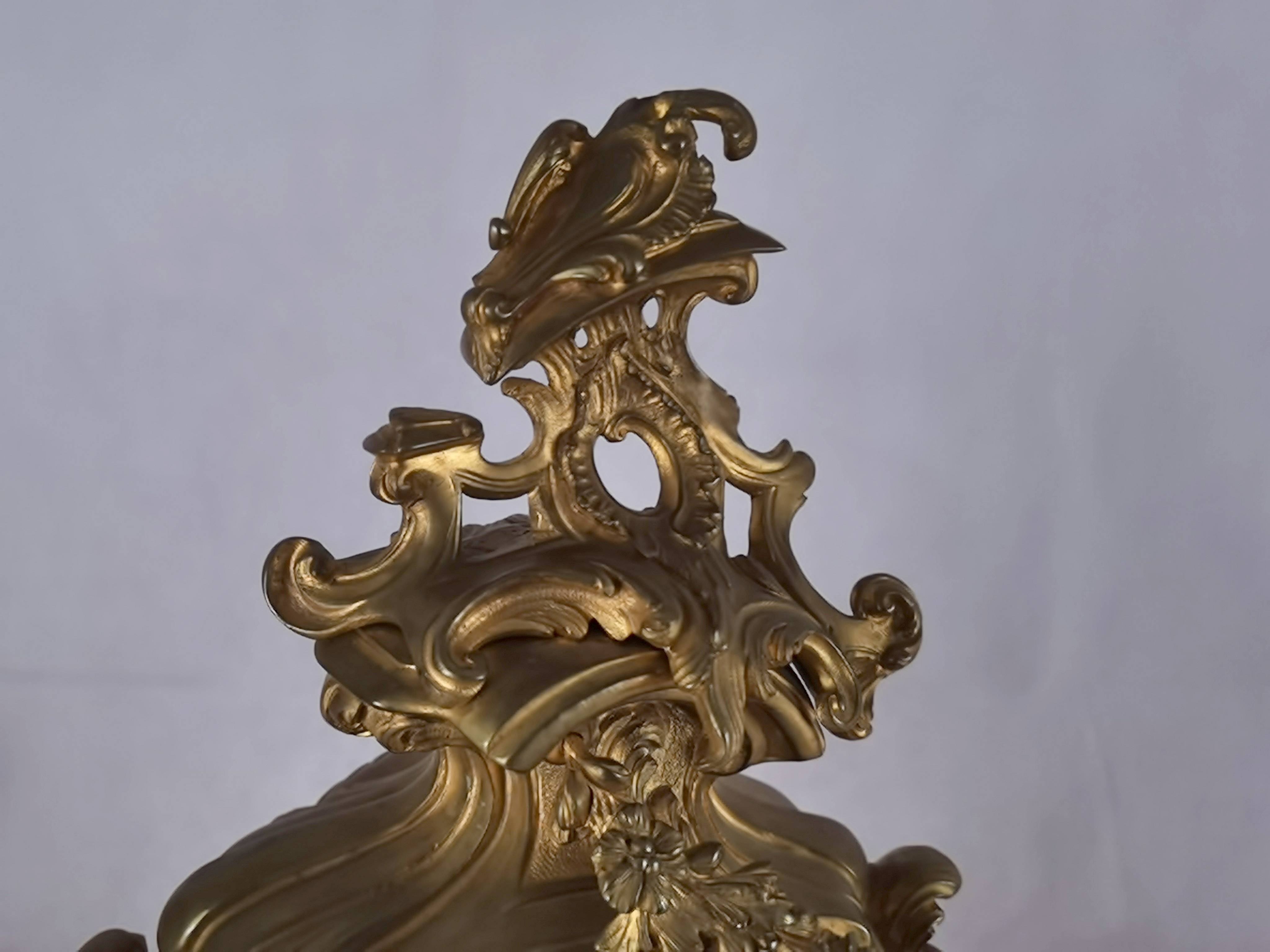 | Antike Neorokoko Pendule Bronze, vergoldet 19 Jh. | |||||