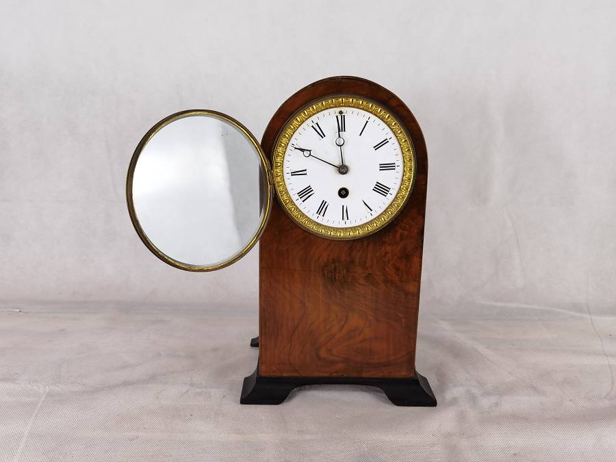 | Antike Pendeluhr Kaminuhr um 1900 Nussbaum |