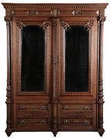 Barockschrank massiv Nussbaum mit Schnitzereien