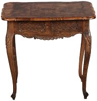 kleiner Rokoko Beistelltisch Nussbaum Einlegearbeiten Schnitzwerk