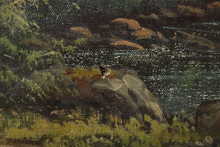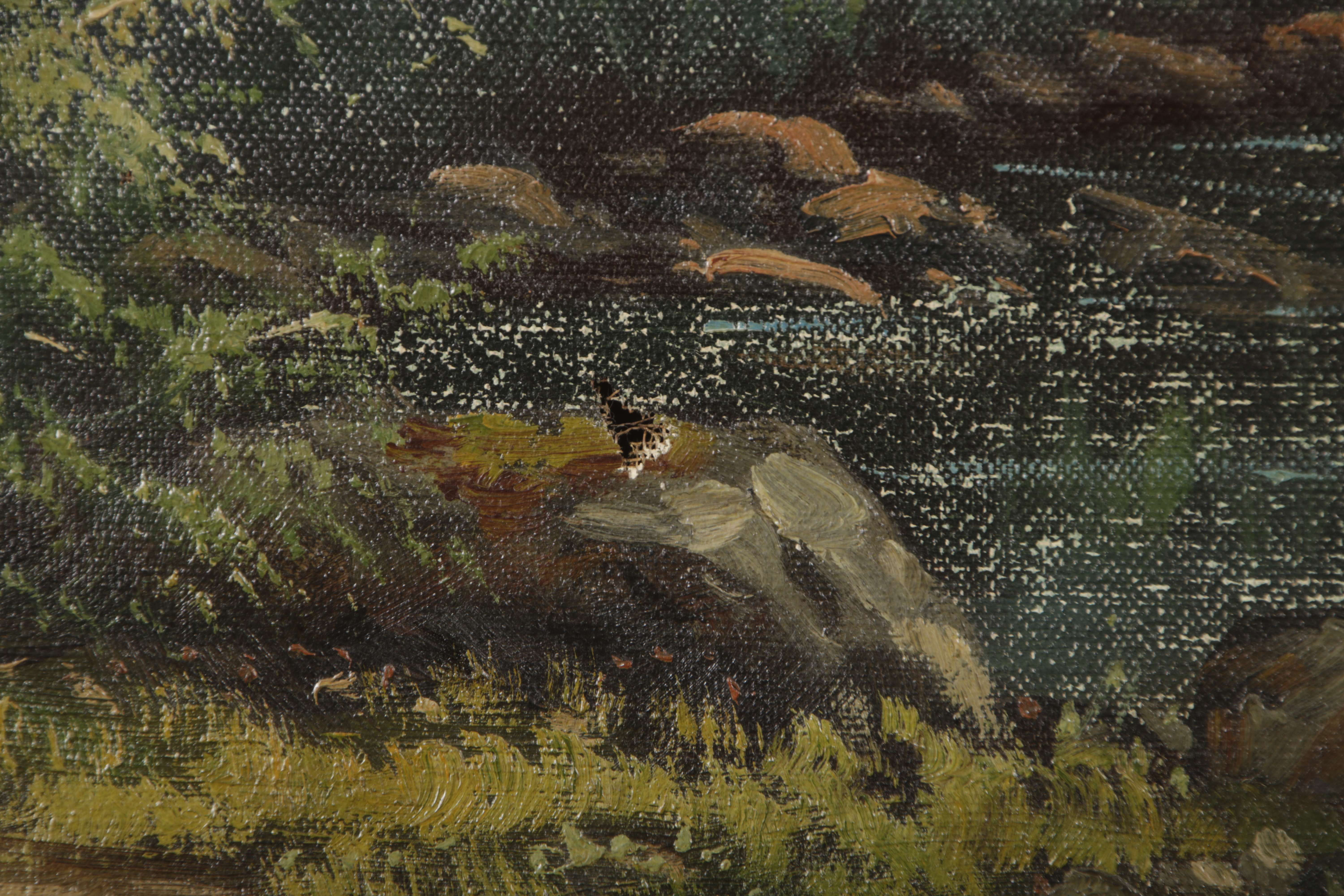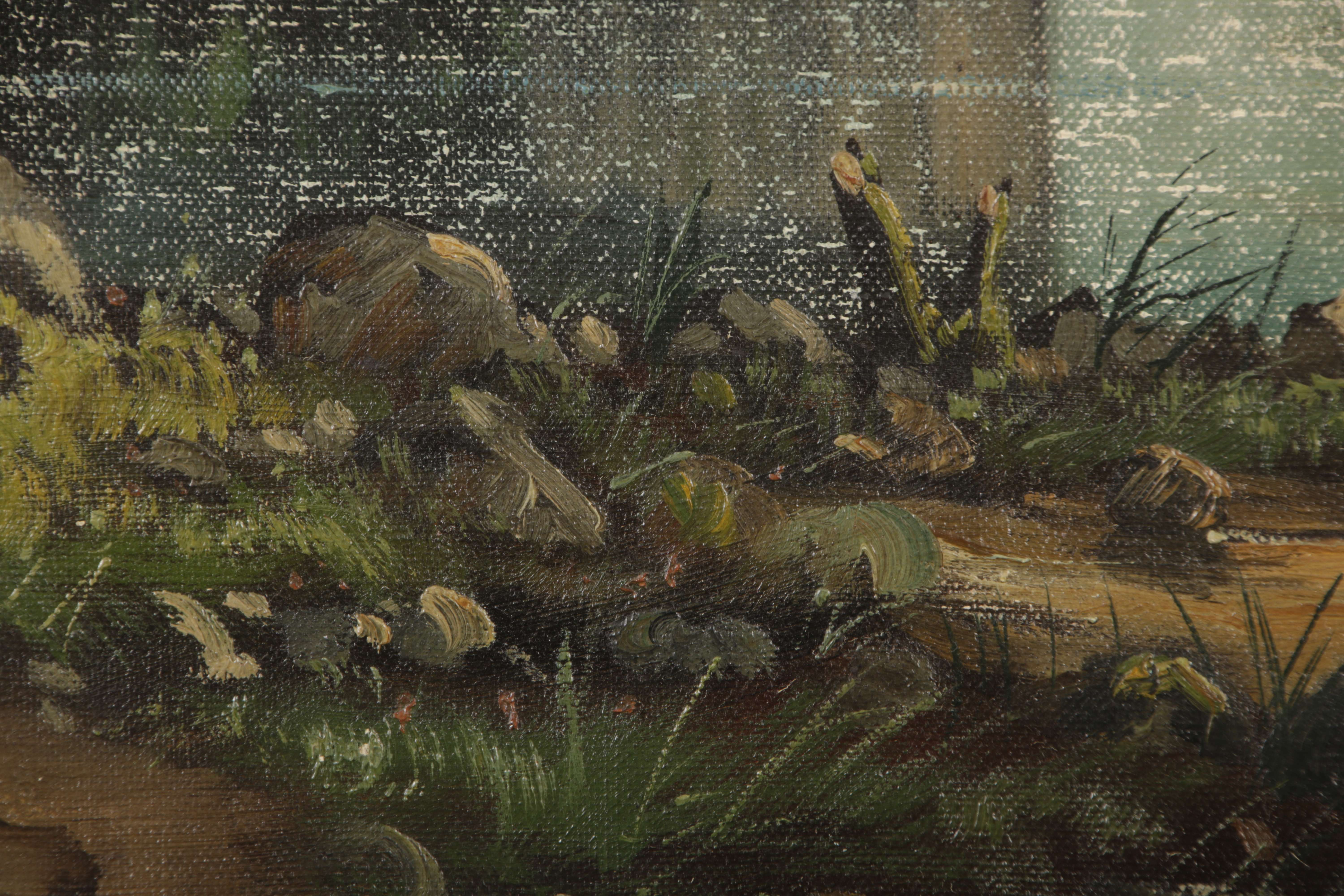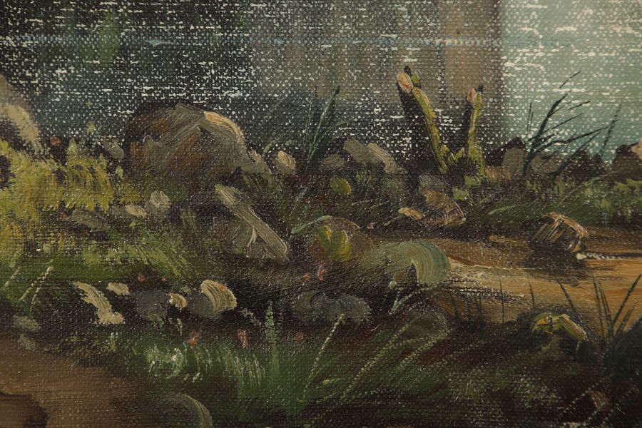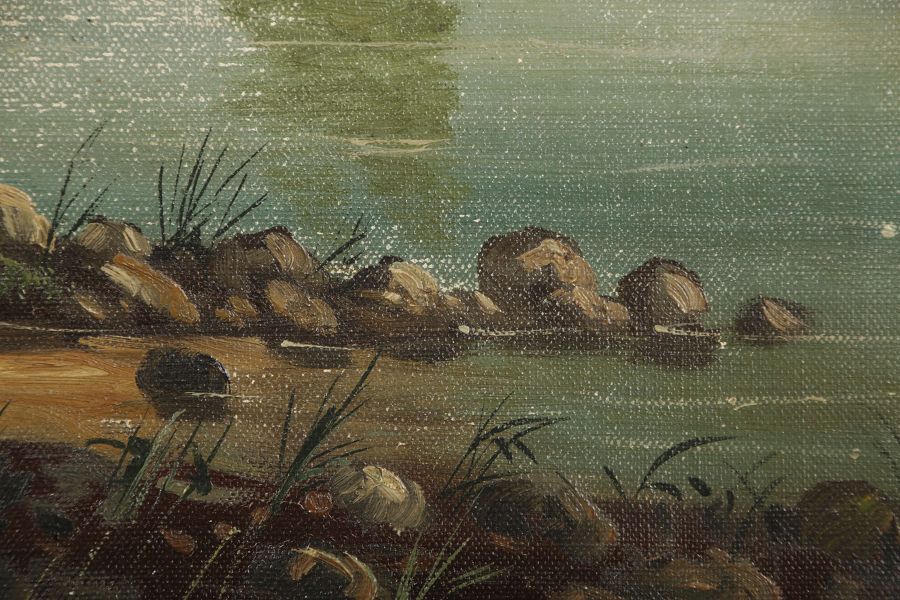 Landschaft Chateau Chillon Leman See, Schweiz Ölbild auf Leinwand 19 Jh. im durchbrochenen Holzrahmen |