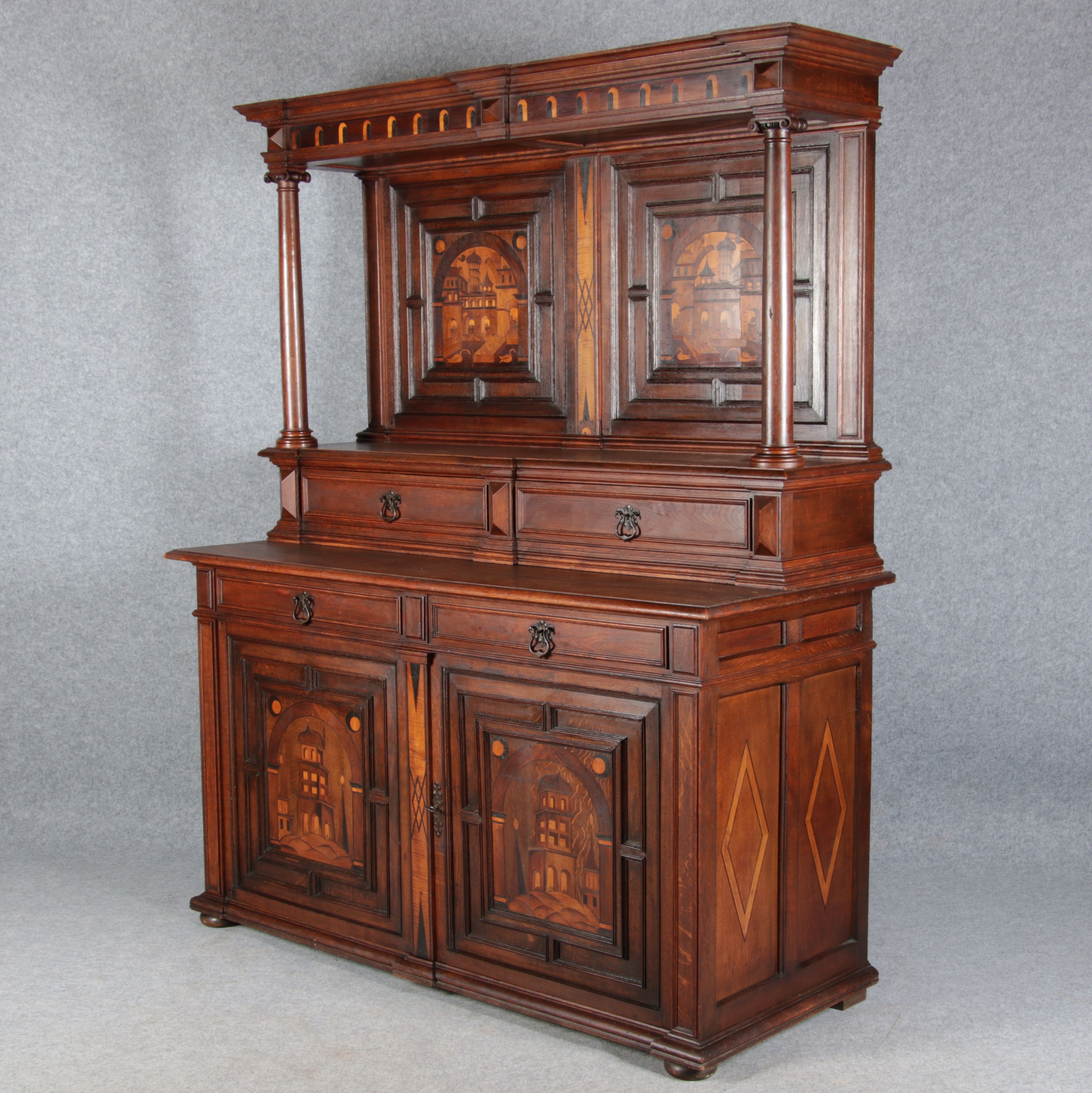 | Historismus Büffet mit Architektur Intarsien 19 Jh. | ||||||||||||||||||||||||||||||||||||||||||||||||||||||||||||||||||