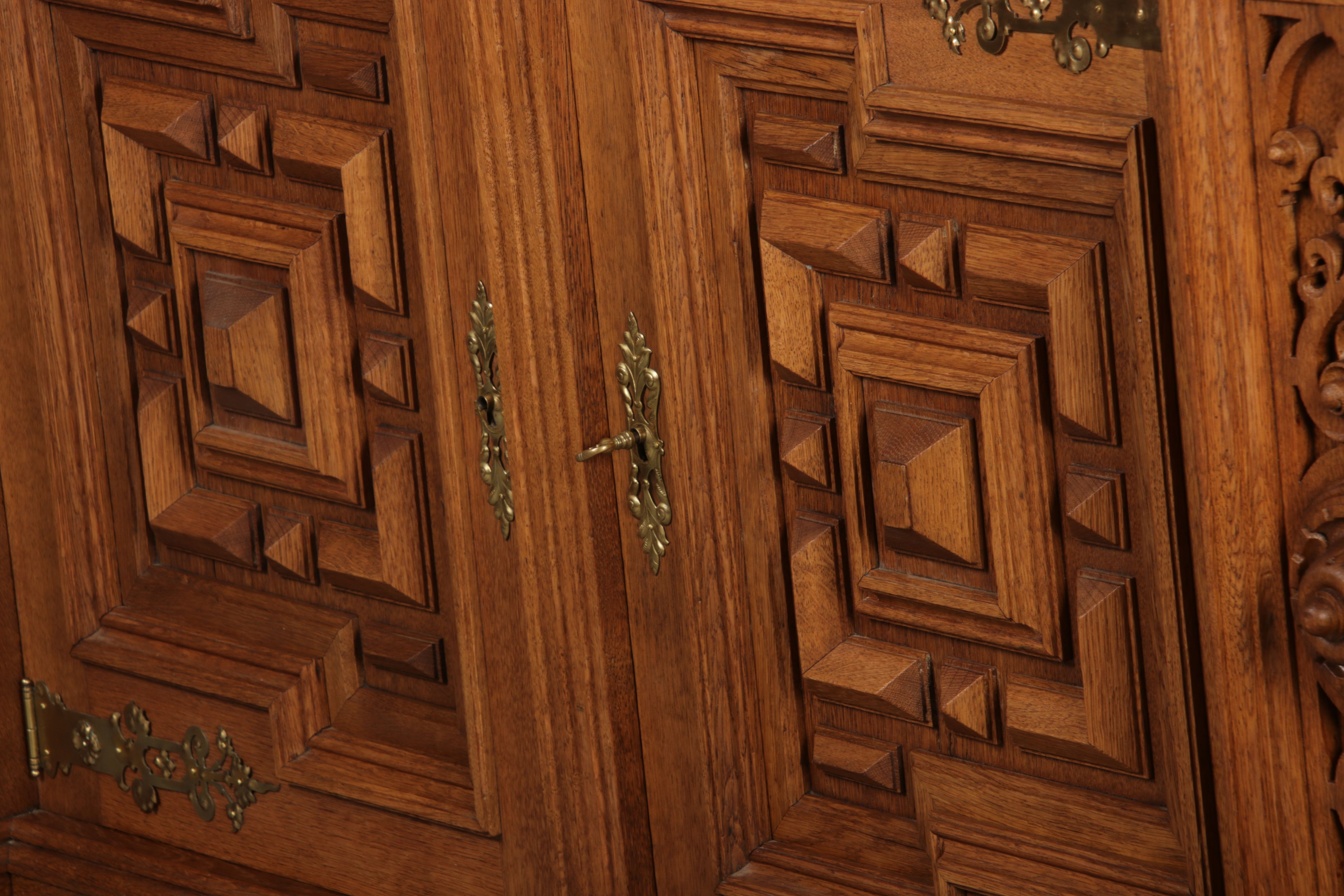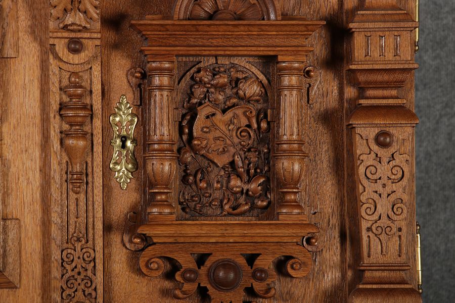Masse/dimensions: Höhe/Height ca. 222 cm, Breite /Broad ca. 175 cm, Tiefe /Deep ca. 70 cm Holz, Schlüssel/wood,
