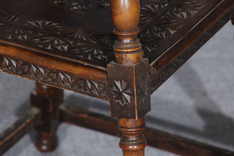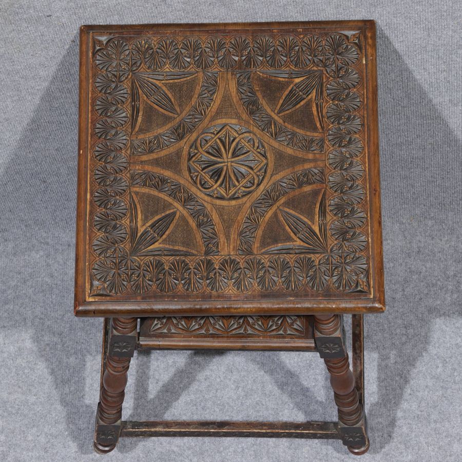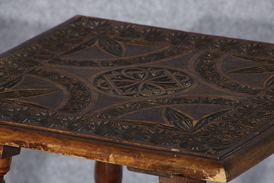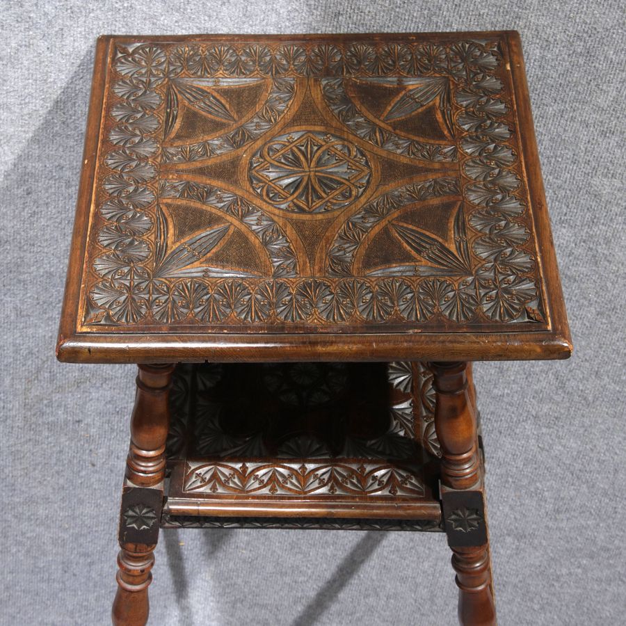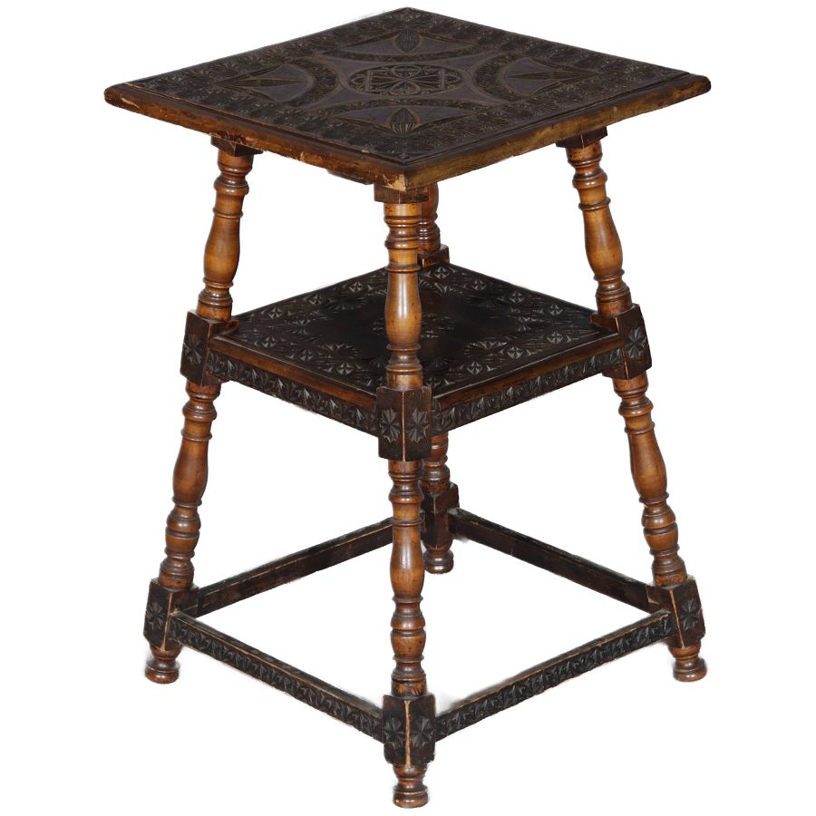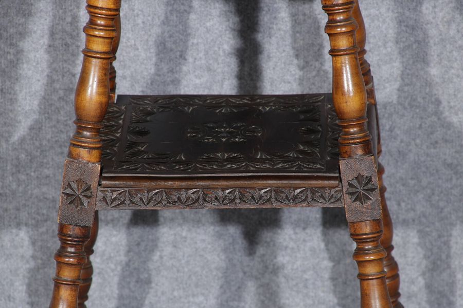 | Kleiner Blumentisch Beistelltisch um 1890 mit Kerbschnitzerei | ||||