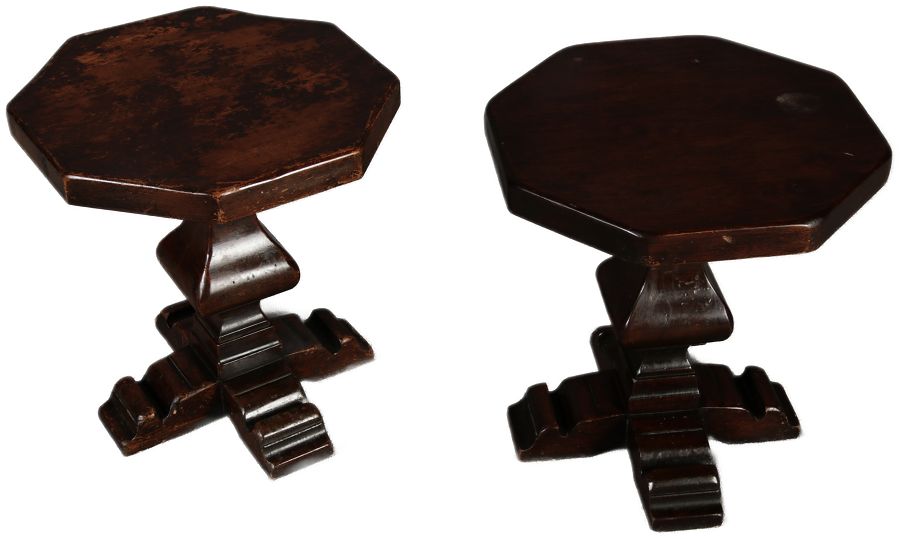 zwei Antike Blumen Tischchen Oktogonal um 1880 Nussbaum |