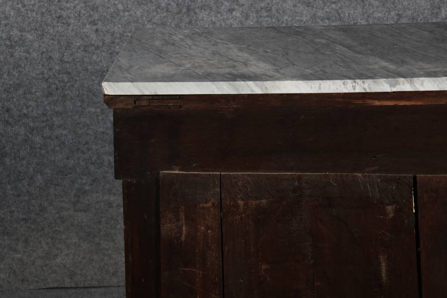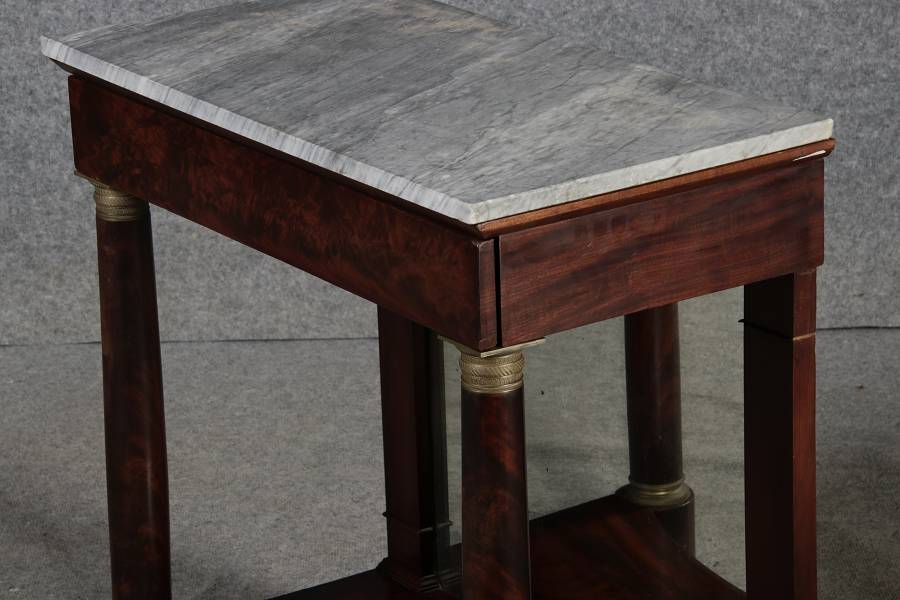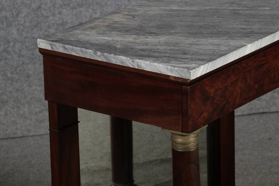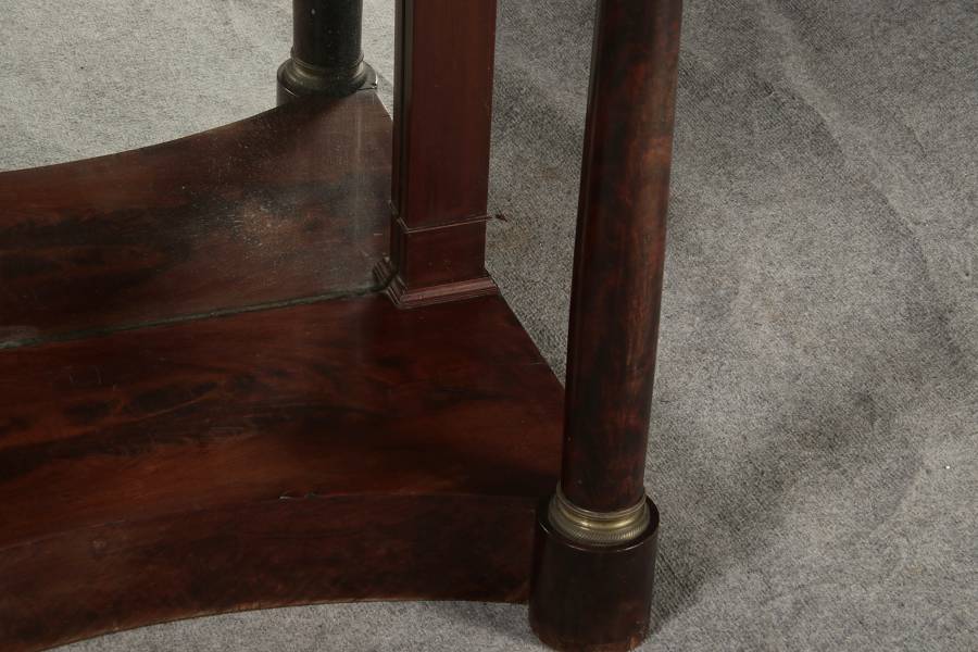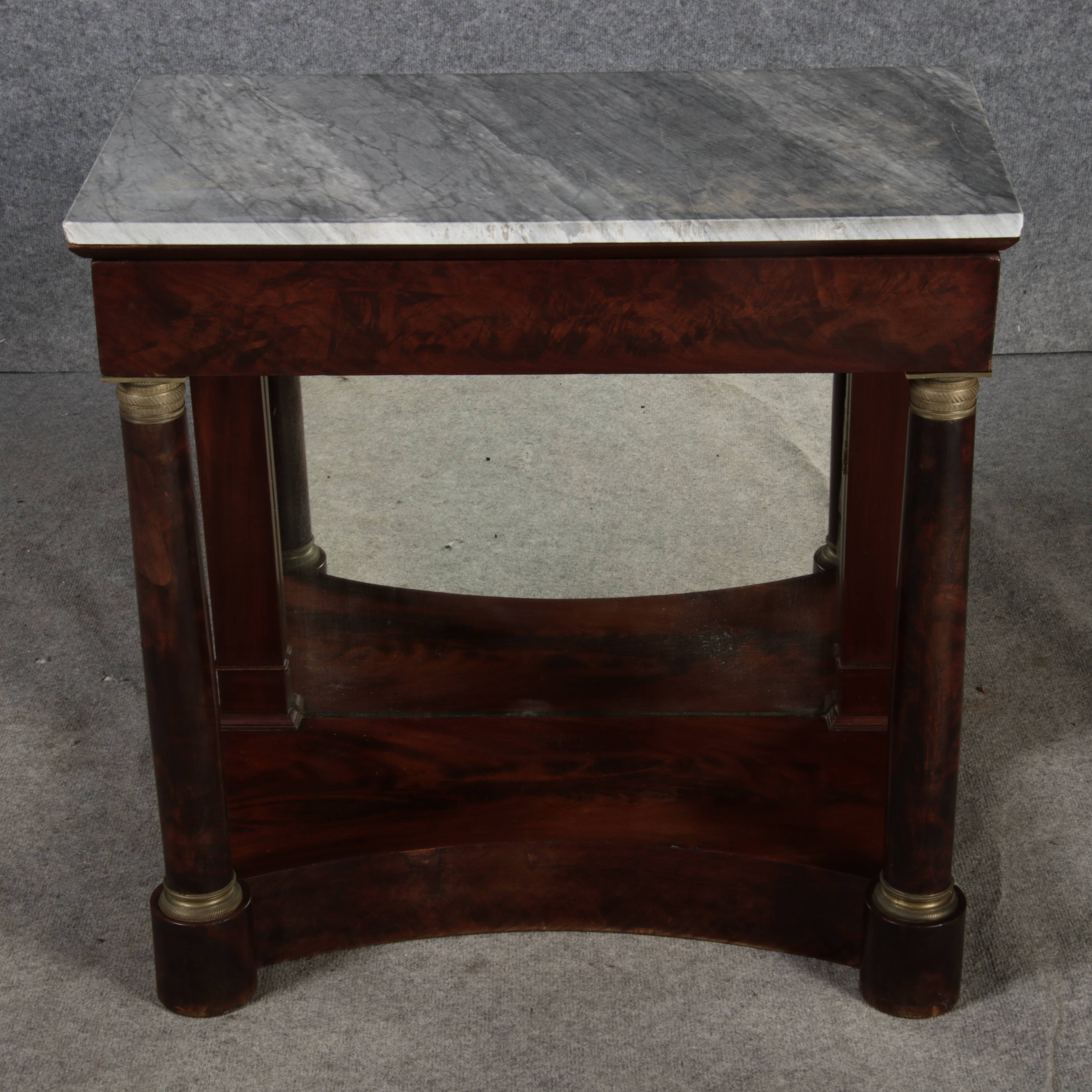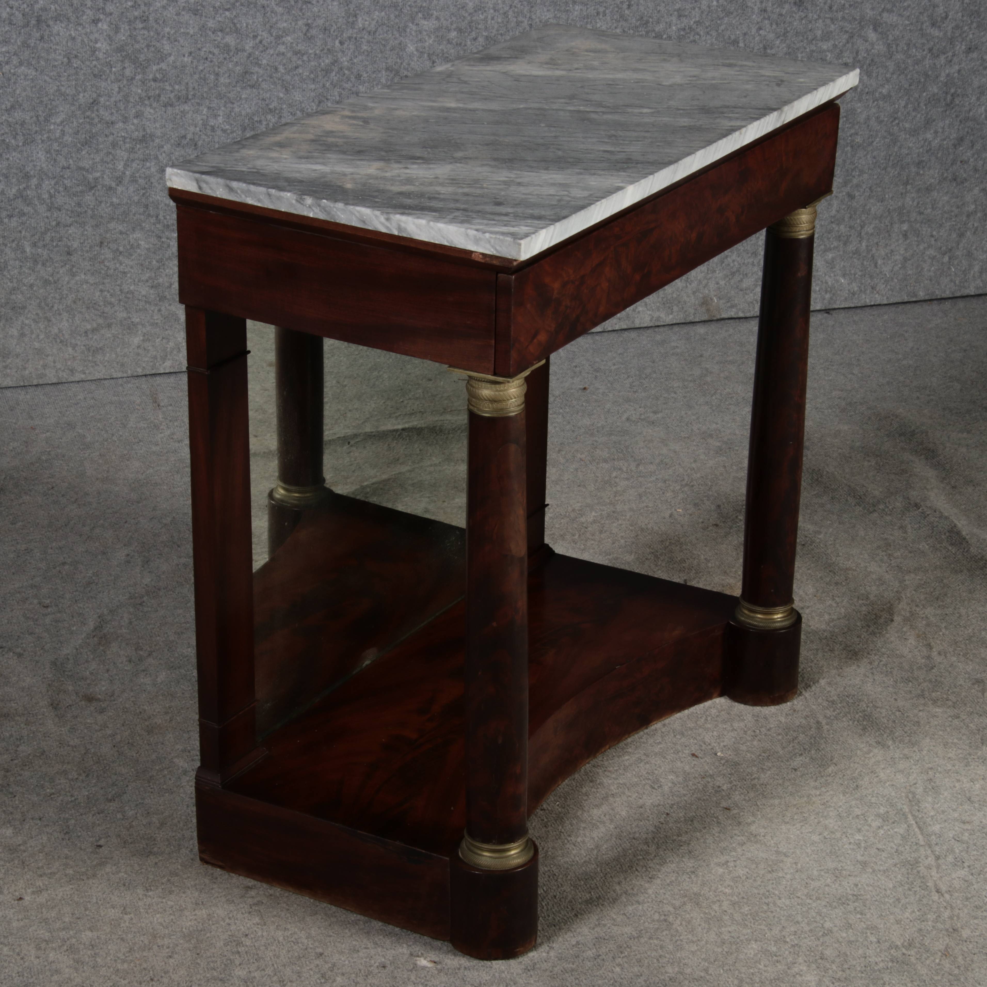 | Antike Empire Wandkonsole Mahagoni Marmor Spiegel Messing Basen und Kapitele um 1810 | ||