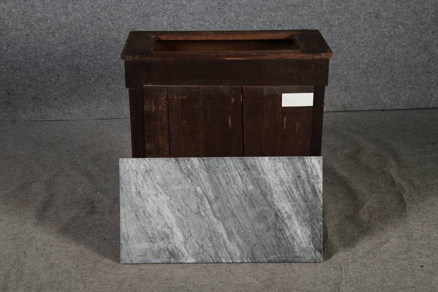 Masse/dimensions: Höhe/Height ca. 79 cm Breite /Broad ca.75,5 cm Tiefe /Deep ca. 39,5 cm Material/material Das Material ist Mahagoni, Messing, Marmor und Glass (Spiegel)