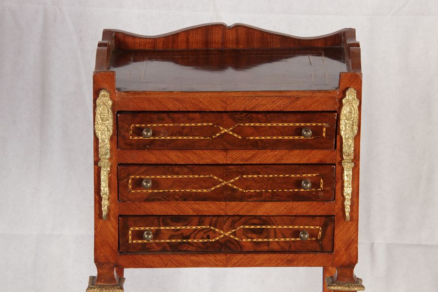 | Antikes sehr kleines Louis XVI Stil Beistellschränkchen Kommode | ||