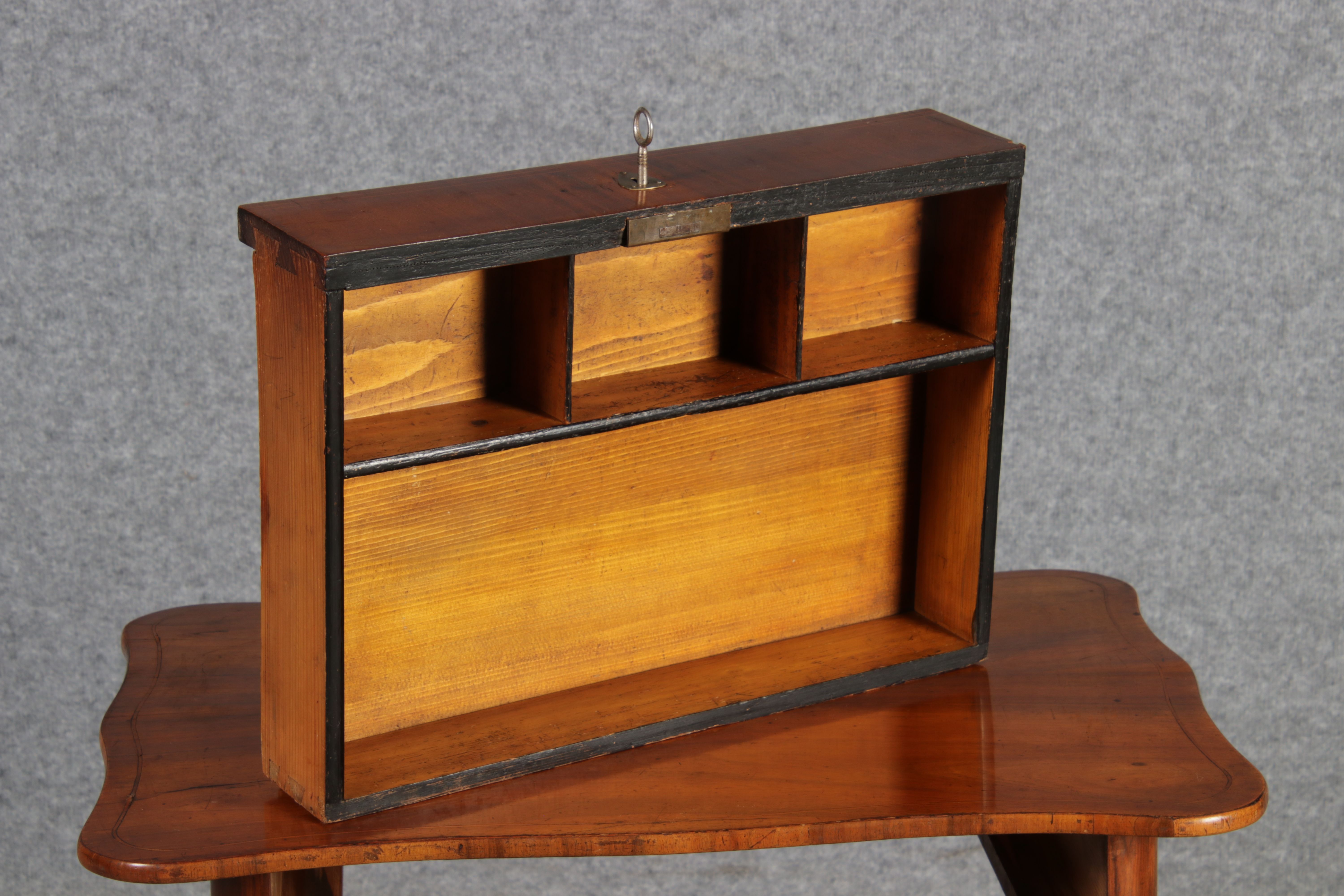 Masse/dimensions: Höhe/Height ca. 80 cm, Breite /Broad ca. 68 cm, Tiefe /Deep ca. 48 cm, Material/material Das Material ist Weicholz Nussbaum furniert ,es hat 1 Schlüssel