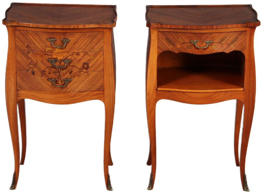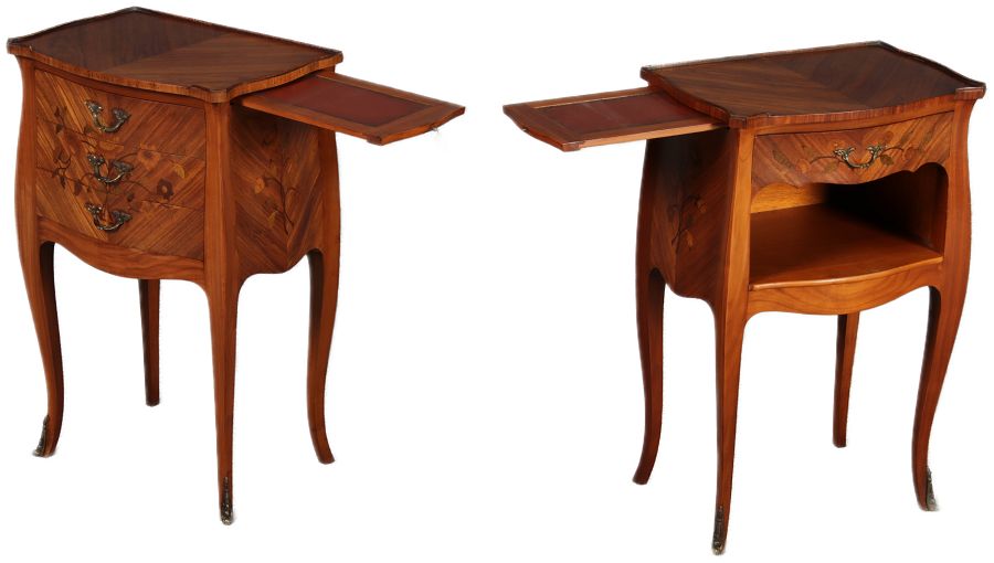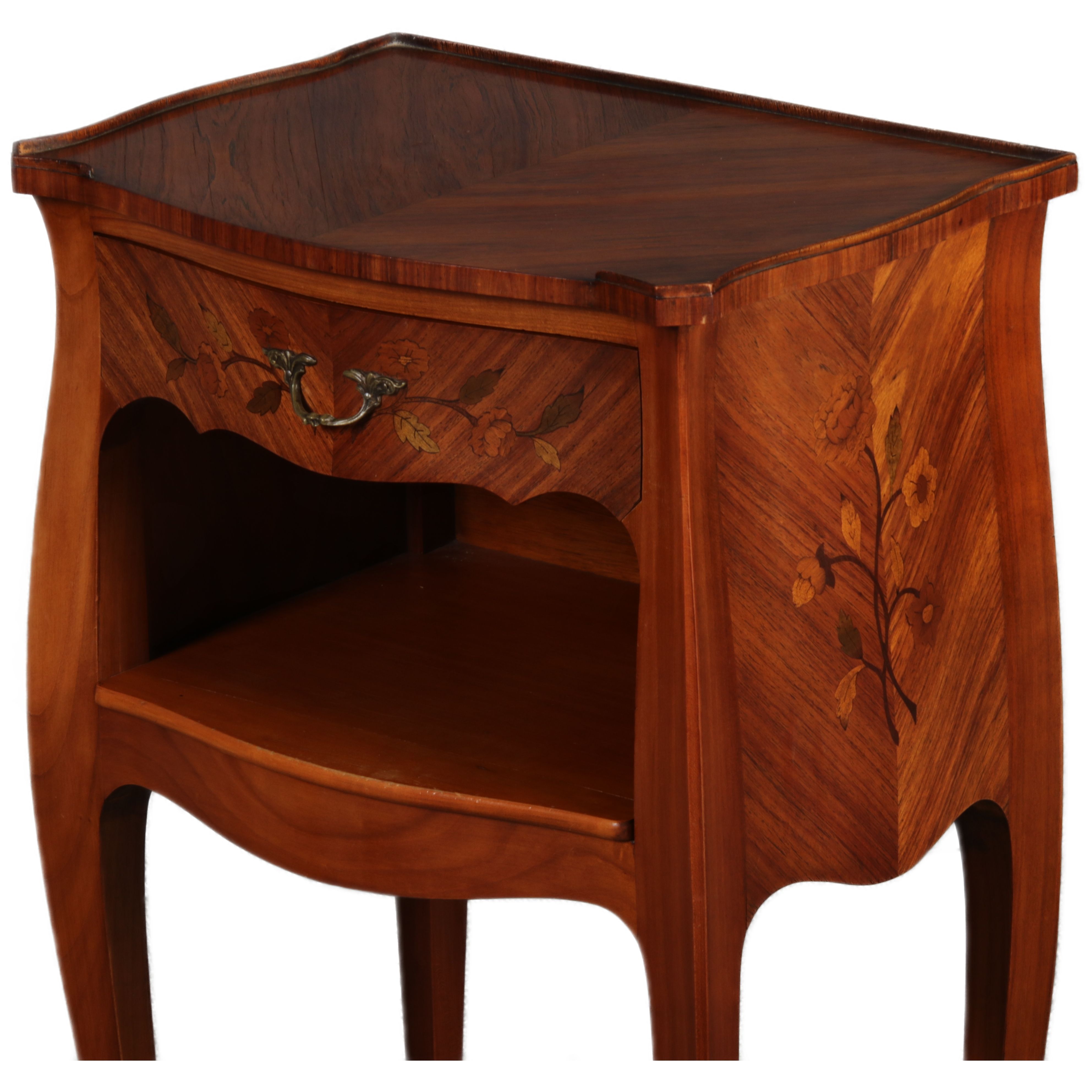 zwei Antike Nachttische mit Blumen Intarsien im Louis XV Stil |