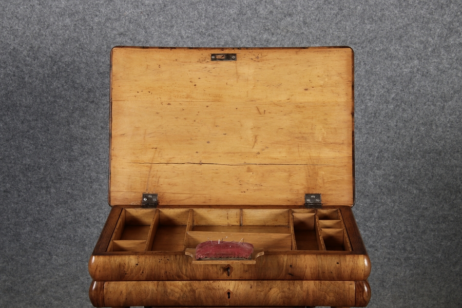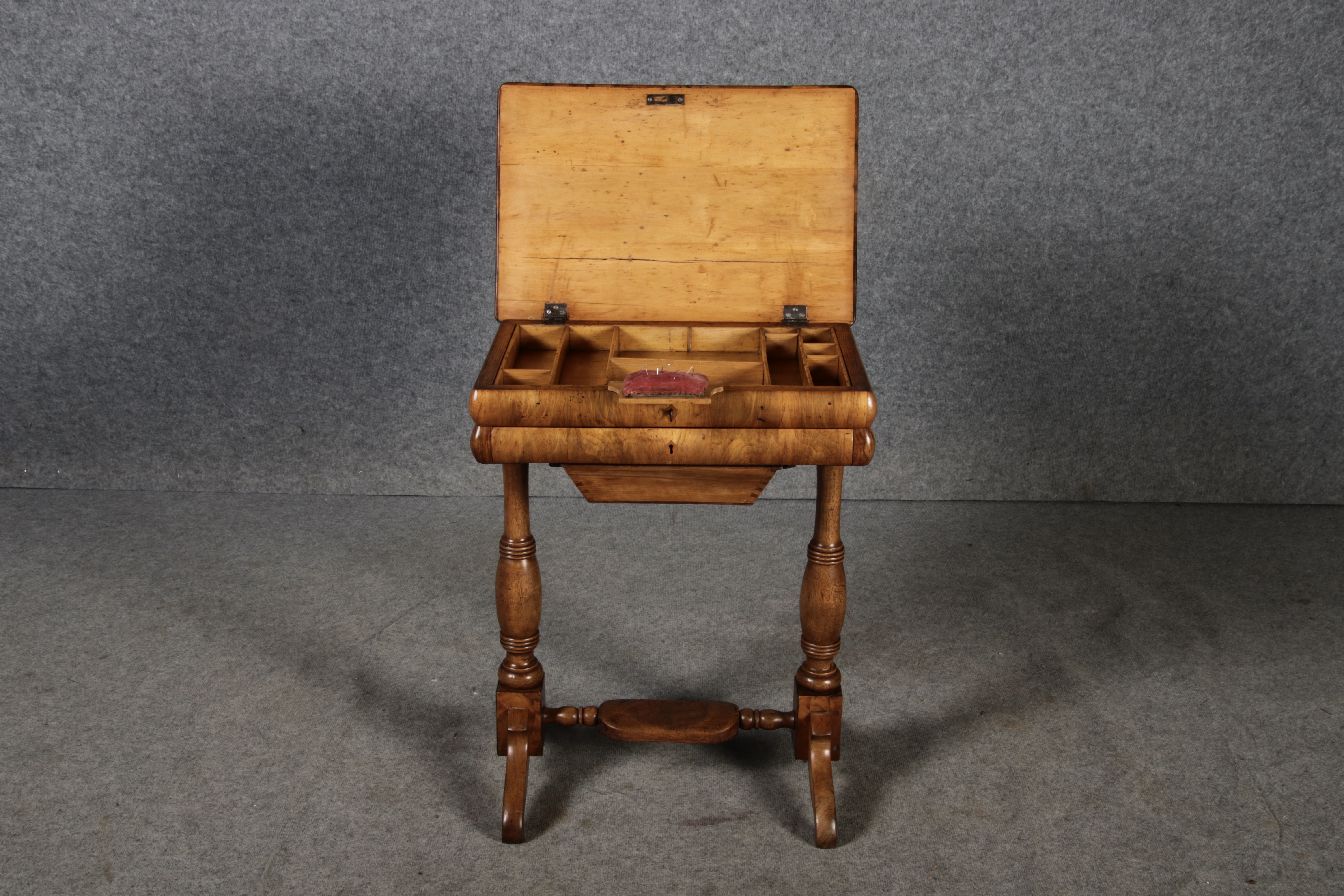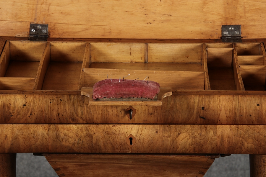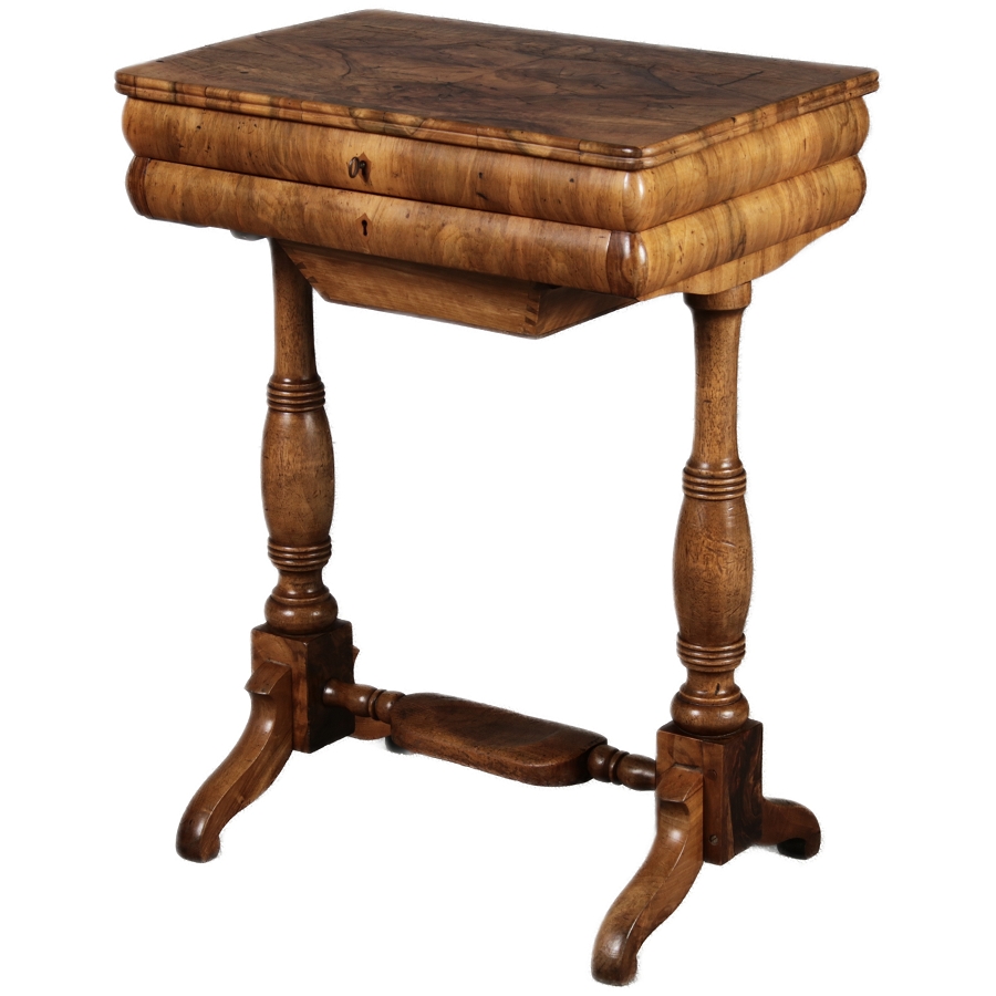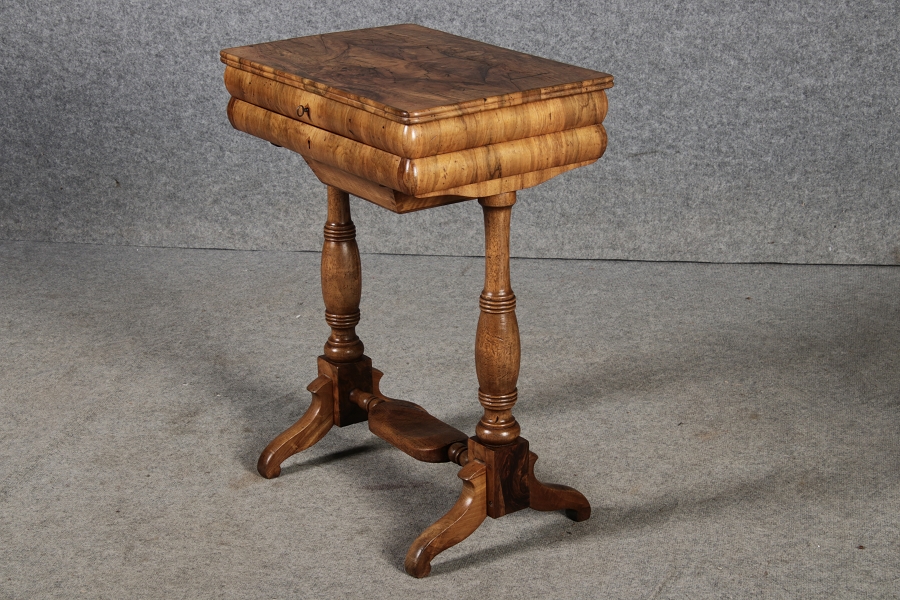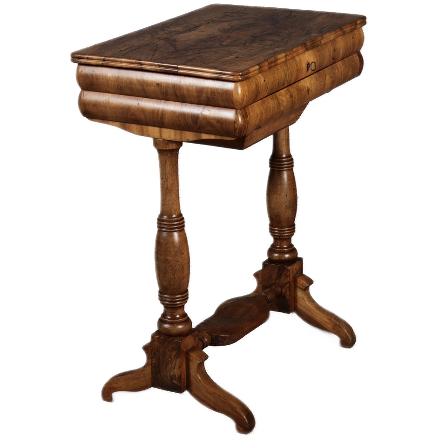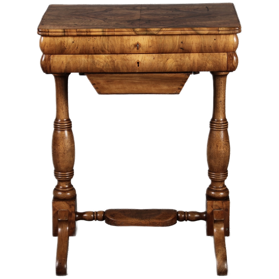 | Antiker Näh- Beistell- Tisch Biedermeier Nussbaum 19 Jh. | ||