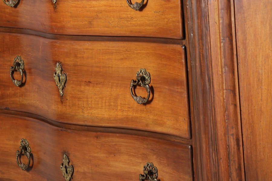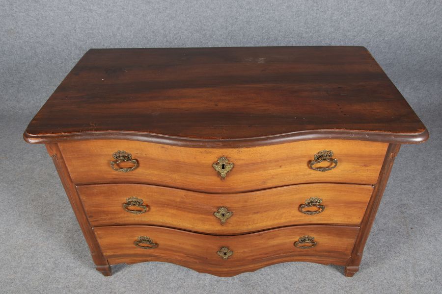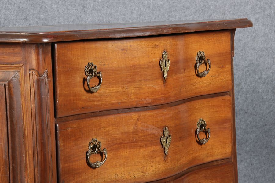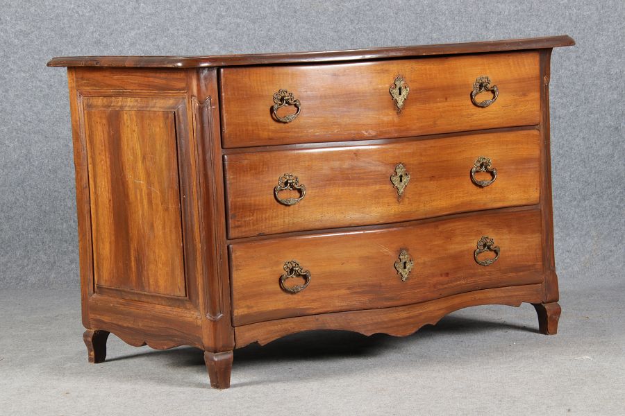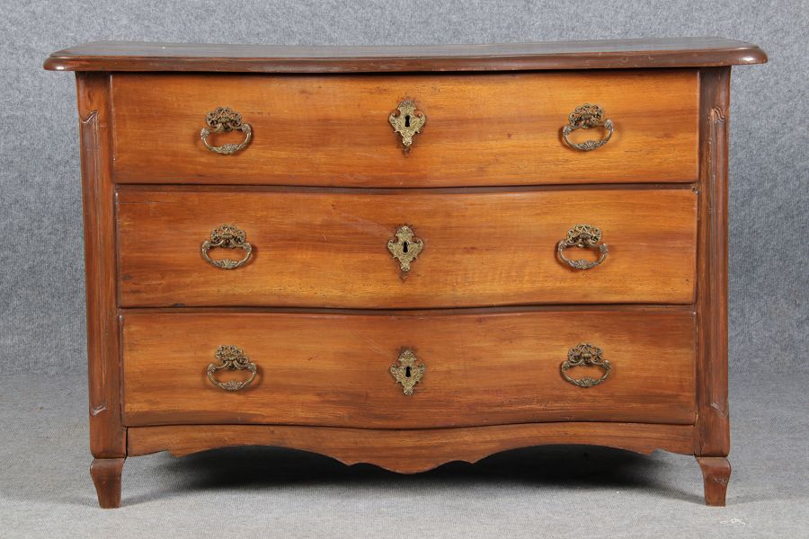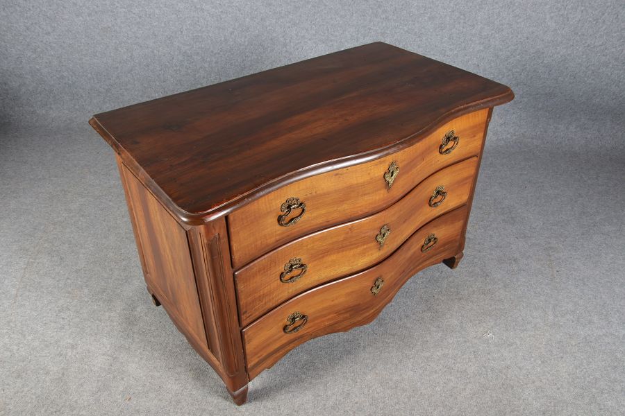Geschweifte Barockkommode massiv Nussbaum 18 Jh. |