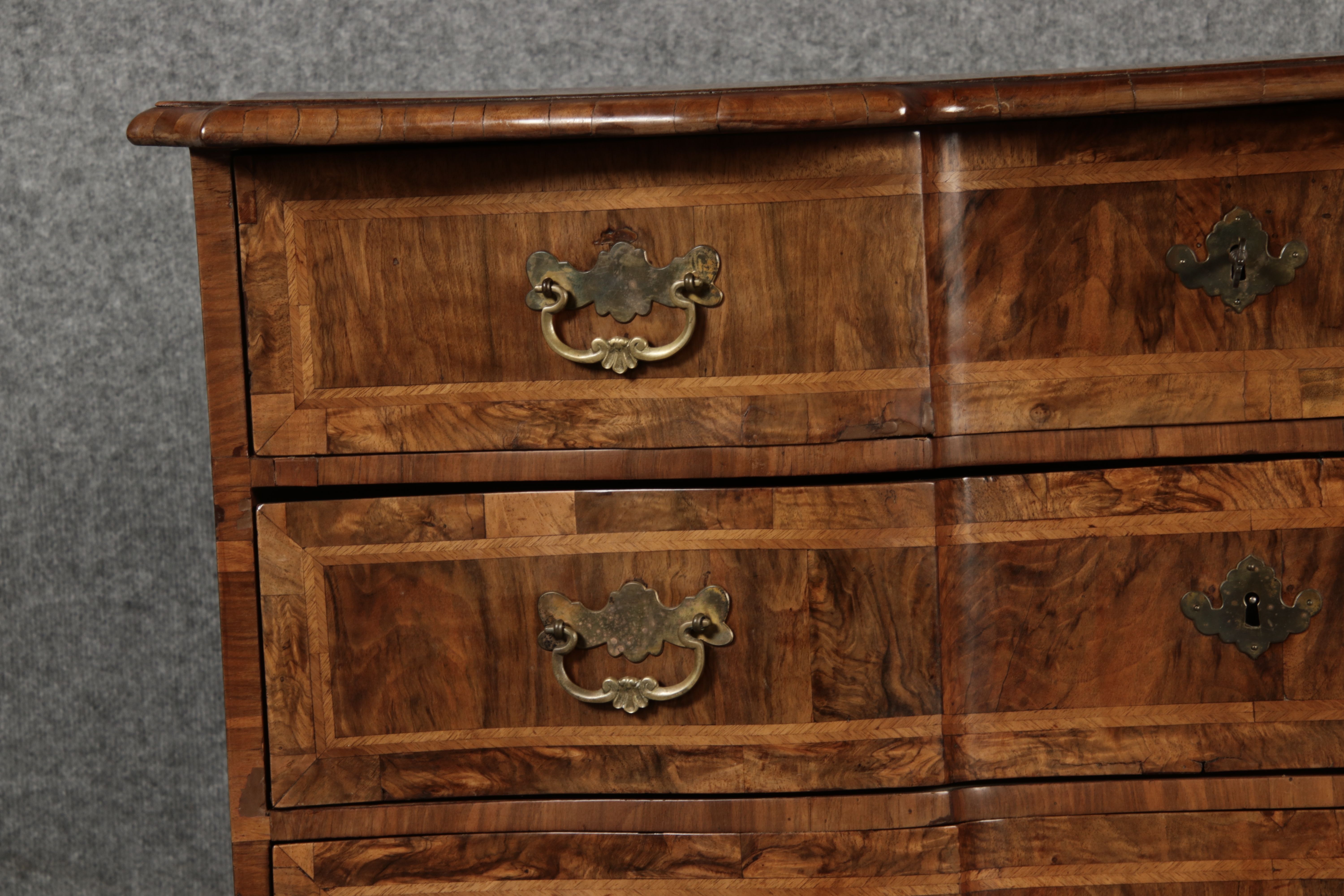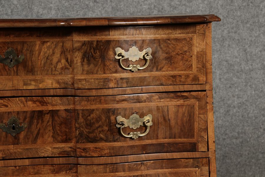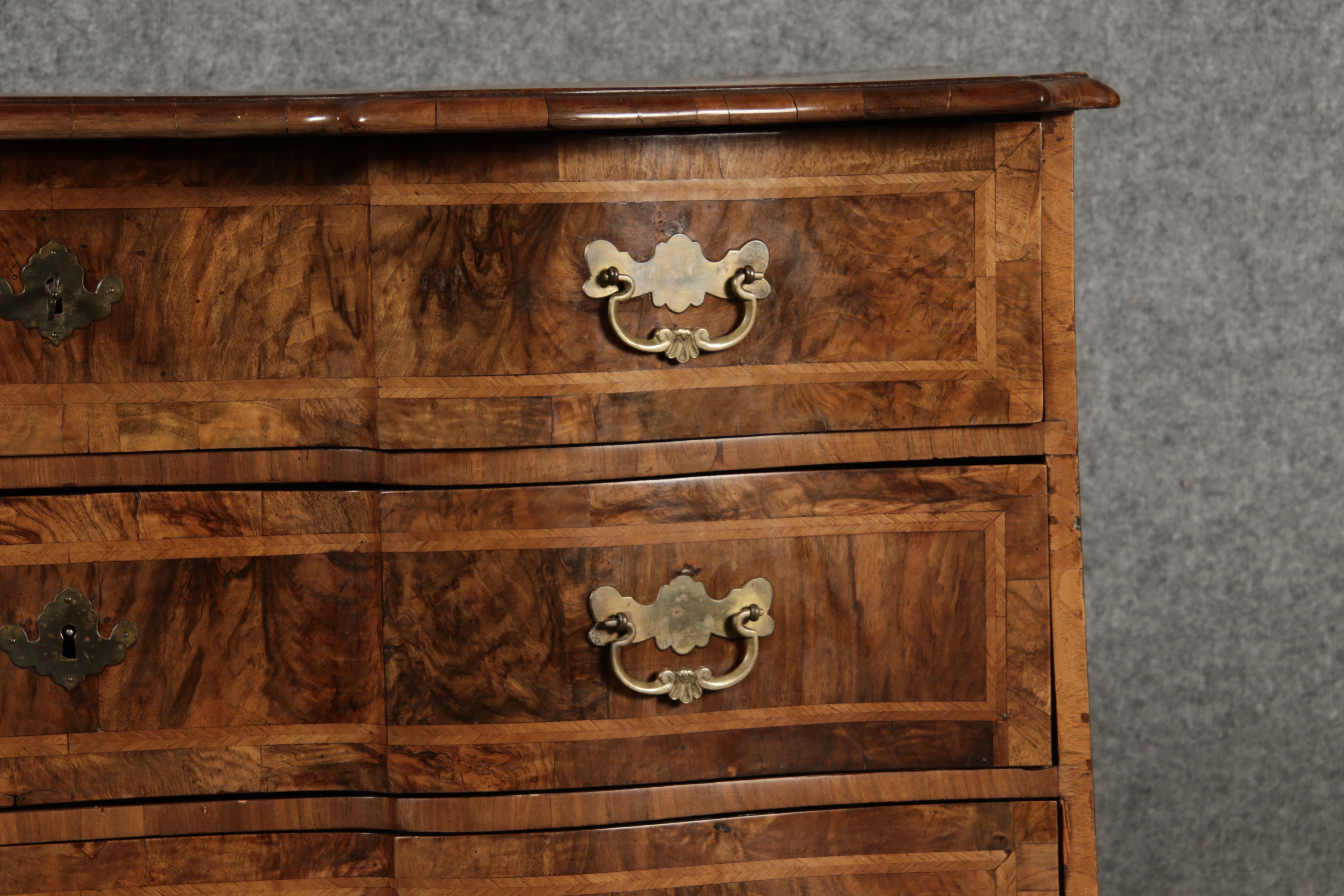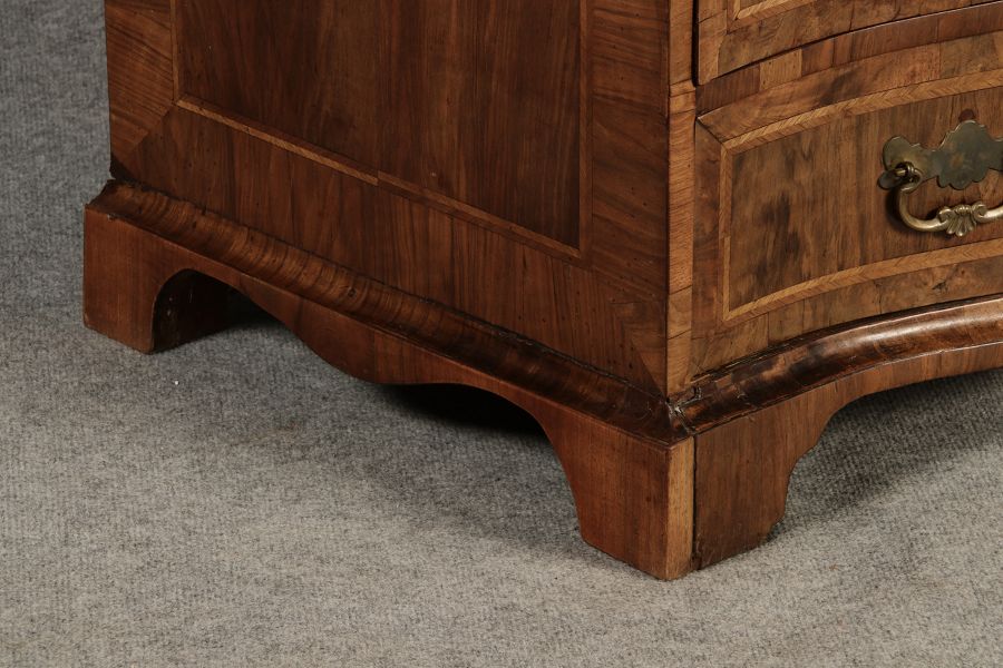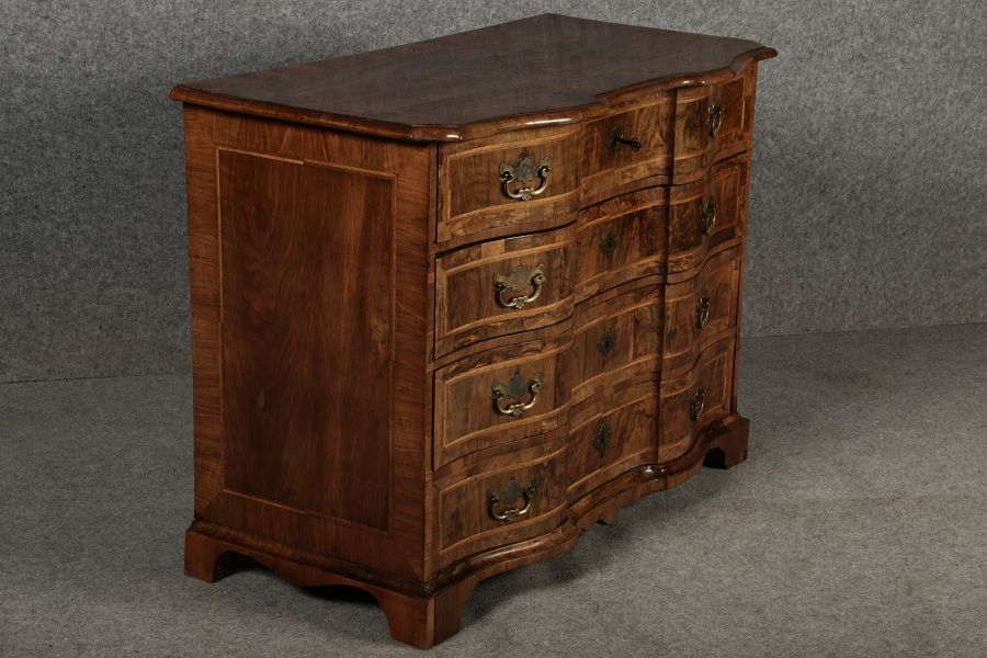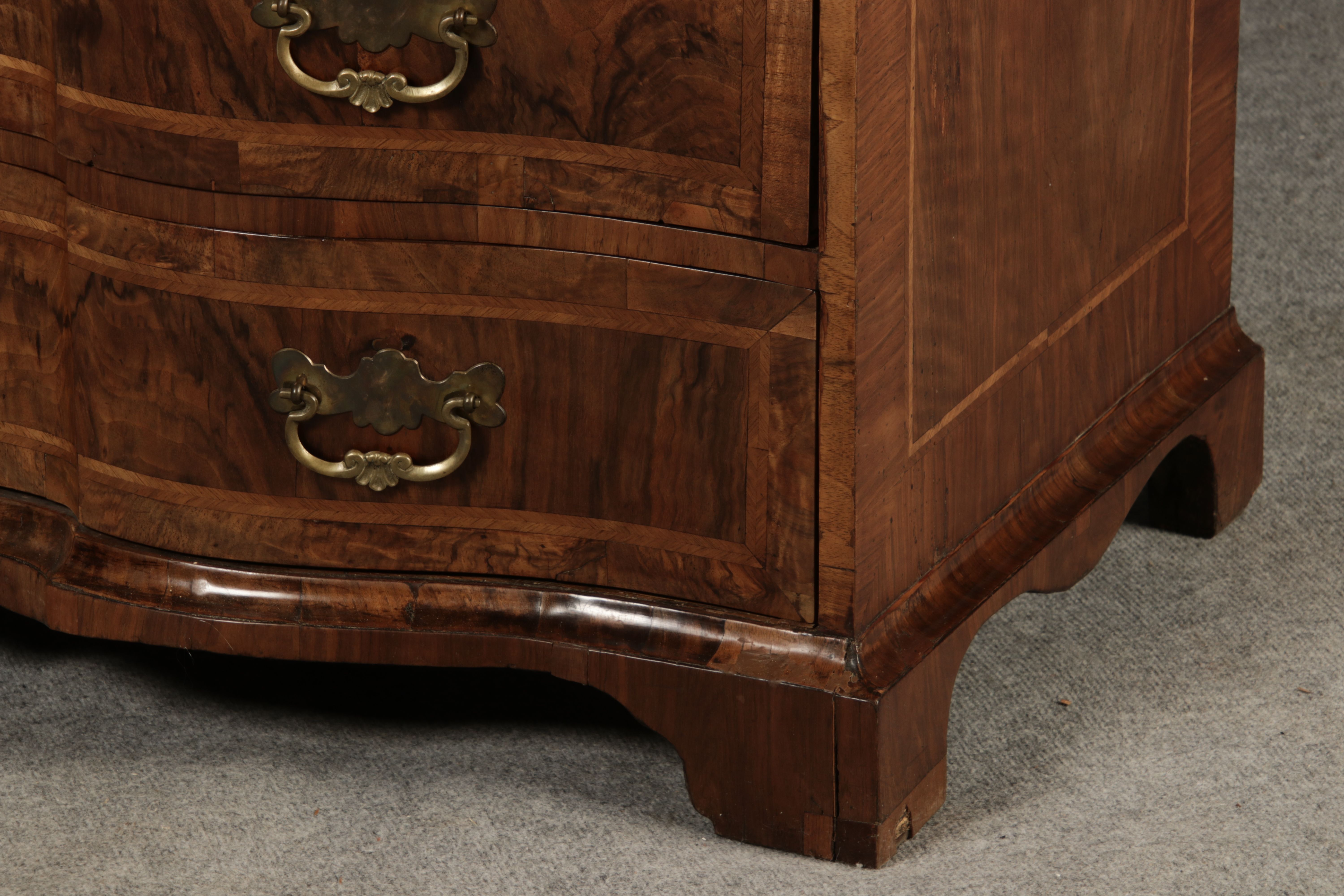 | Antike Barockkommode 4 Schubladen Nussbaum Einlegearbeiten geschweift 18 Jh. |