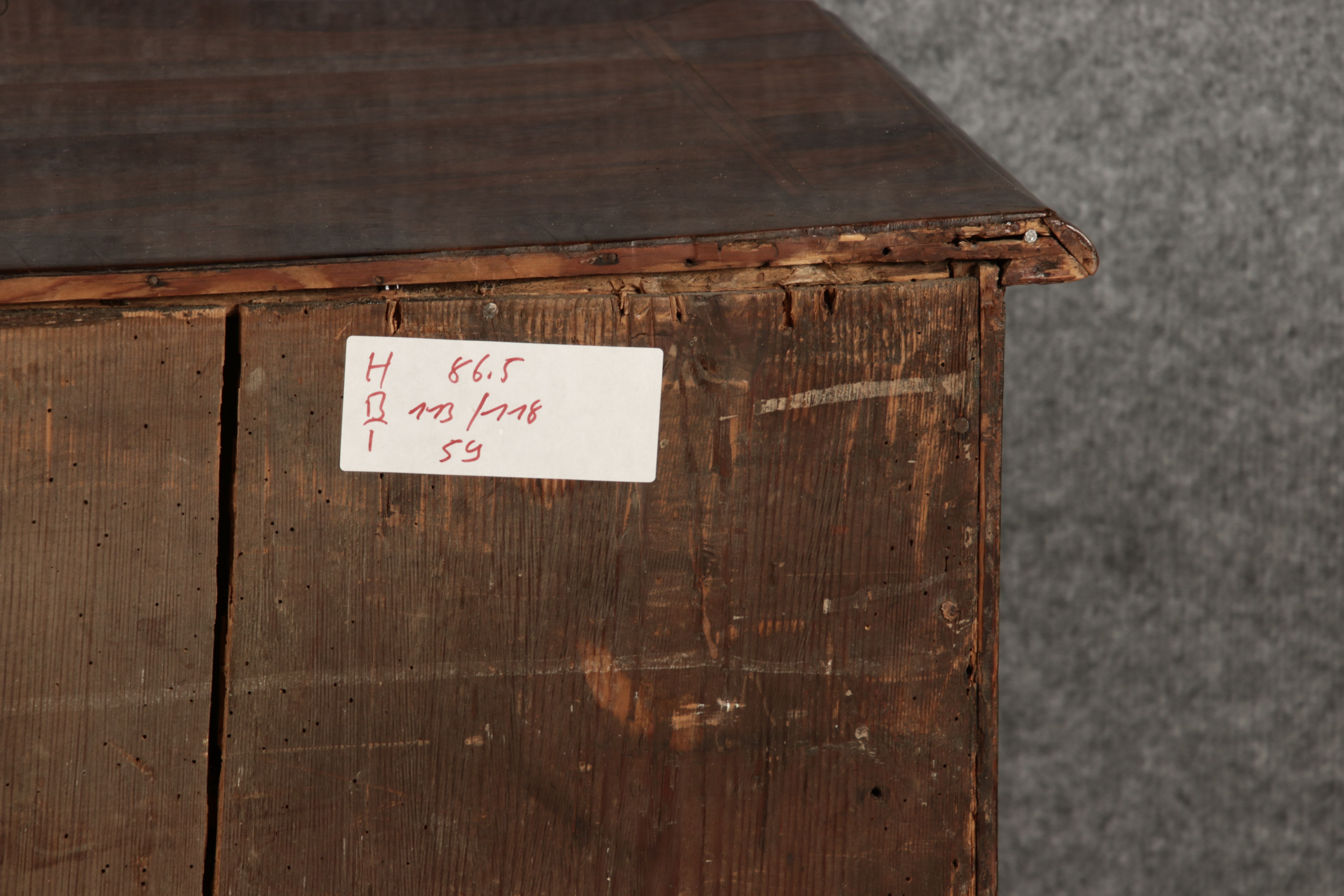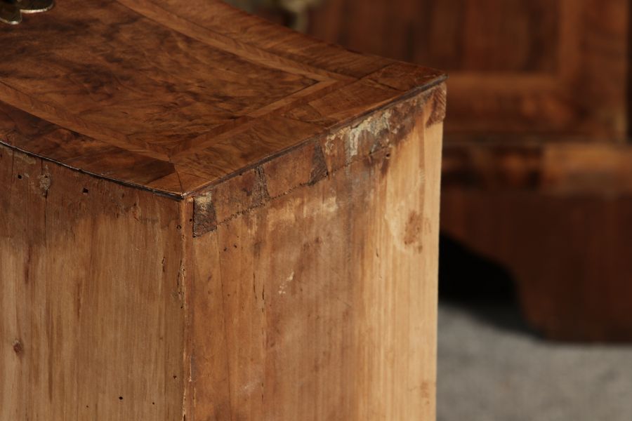 Antike Barockkommode 4 Schubladen Nussbaum Einlegearbeiten geschweift 18