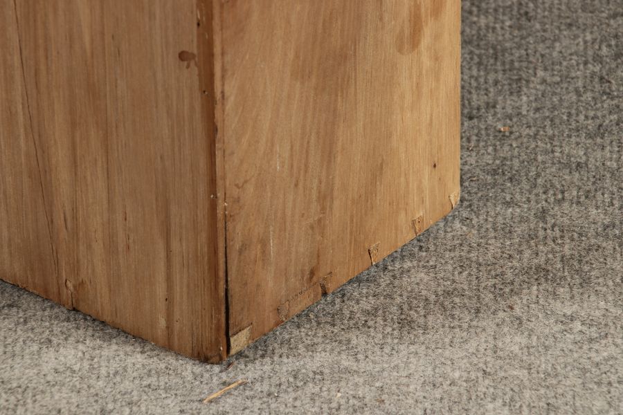 Masse/dimensions: Höhe/Height ca. 86,5 cm, Breite Korpus/Broad Boda ca. 113 cm, Breite Platte/plate ca. 118 cm, Tiefe Platte/plate ca. 59 cm.