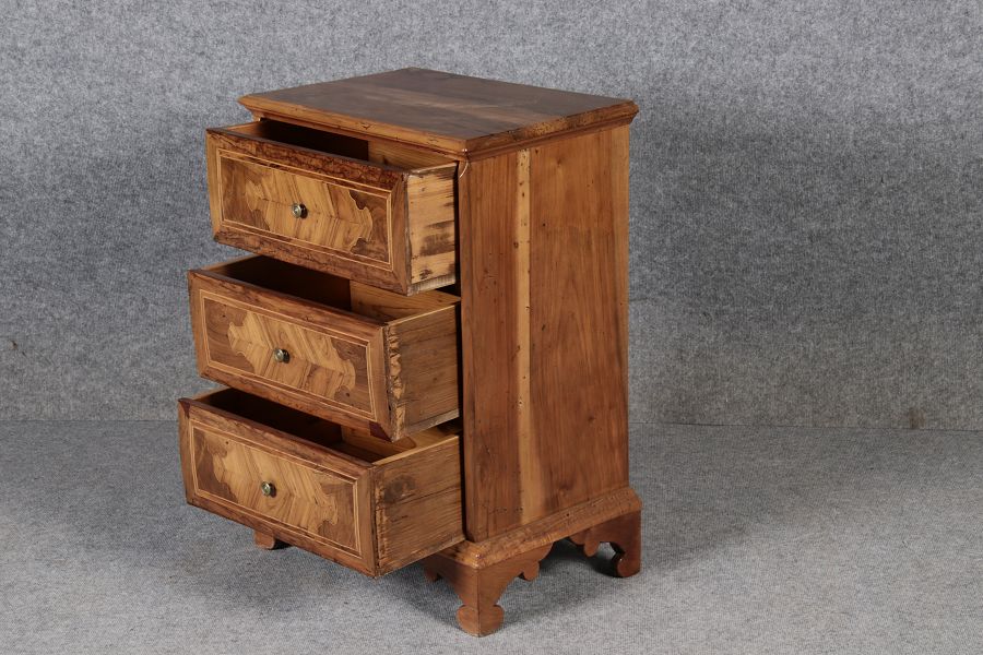 | Antike kleine 58 cm breite Italienische Barockkommode Nussbaum 18 Jh |