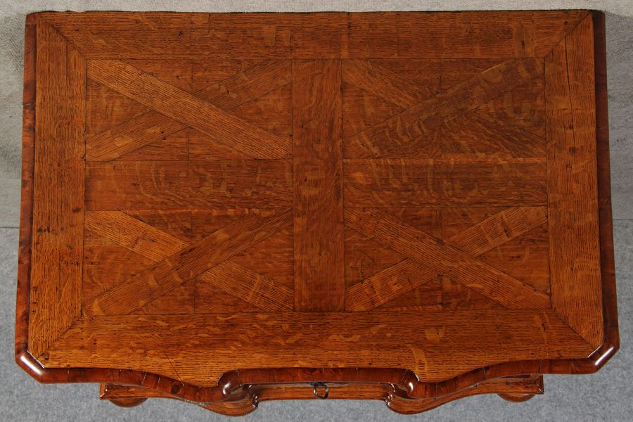 Das Holz ist Nussbaum und Eiche auf Weichhilz furniert