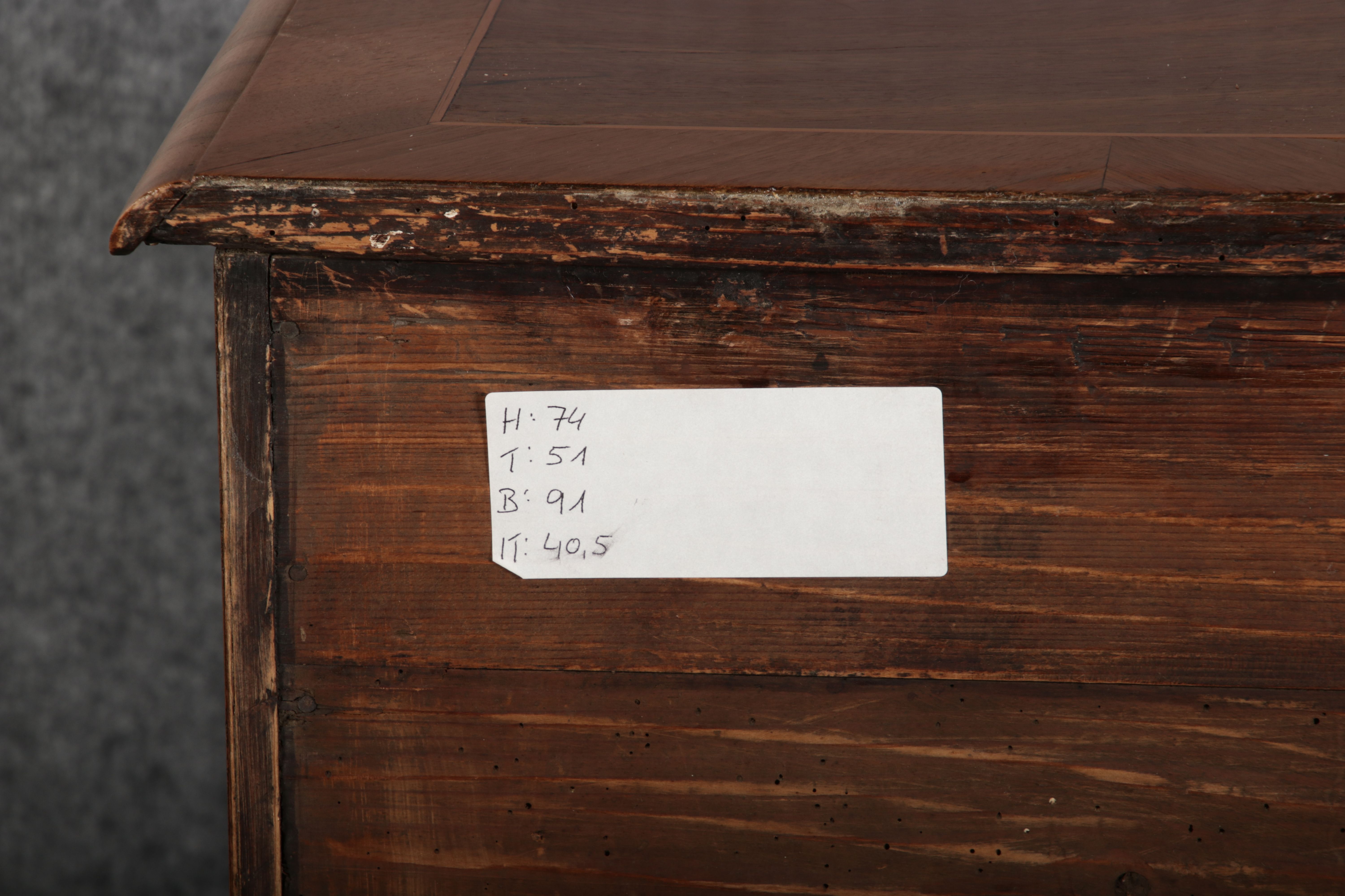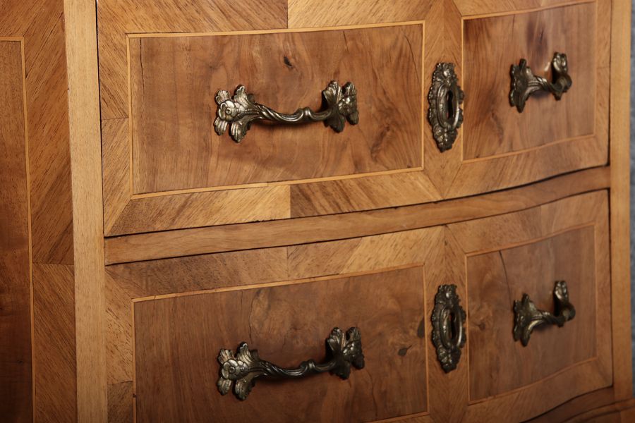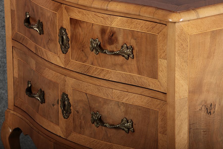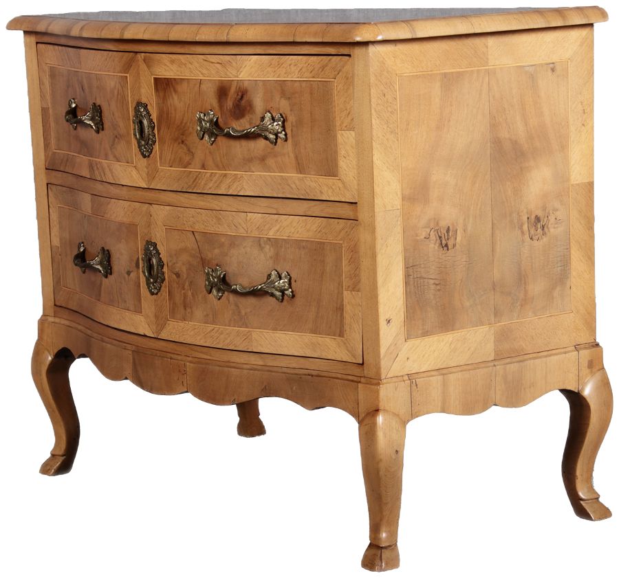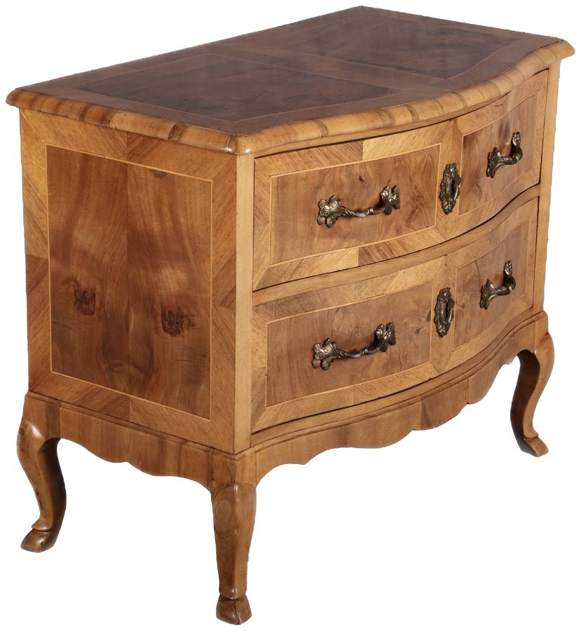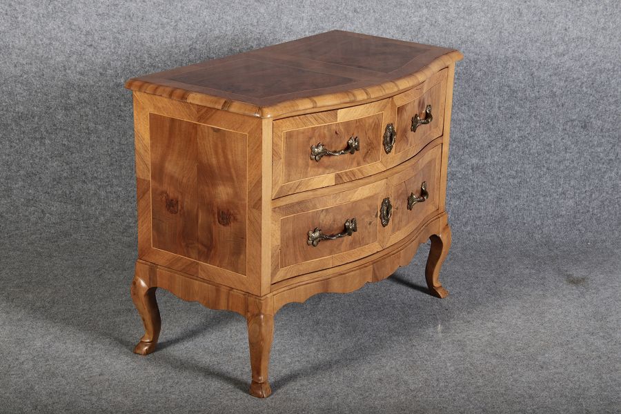 | Antike kleine Barockkommode Nussbaum um1800. |