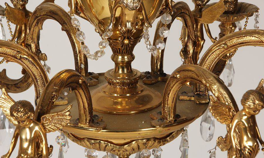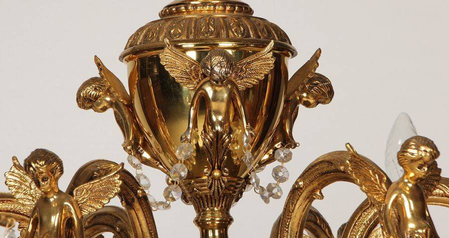 Durchmesser/diameter ca. 80 cm. Material, Brennstellen/material, Hotspots: Die Lampe wurde aus Bronze und Messing gefertigt und hat 6 Brennstellen mit E14 Fassung