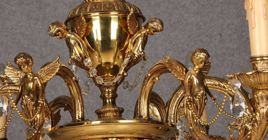 | Antike Jugendstiel Deckenlampe um 1910 Bronze vergoldete |