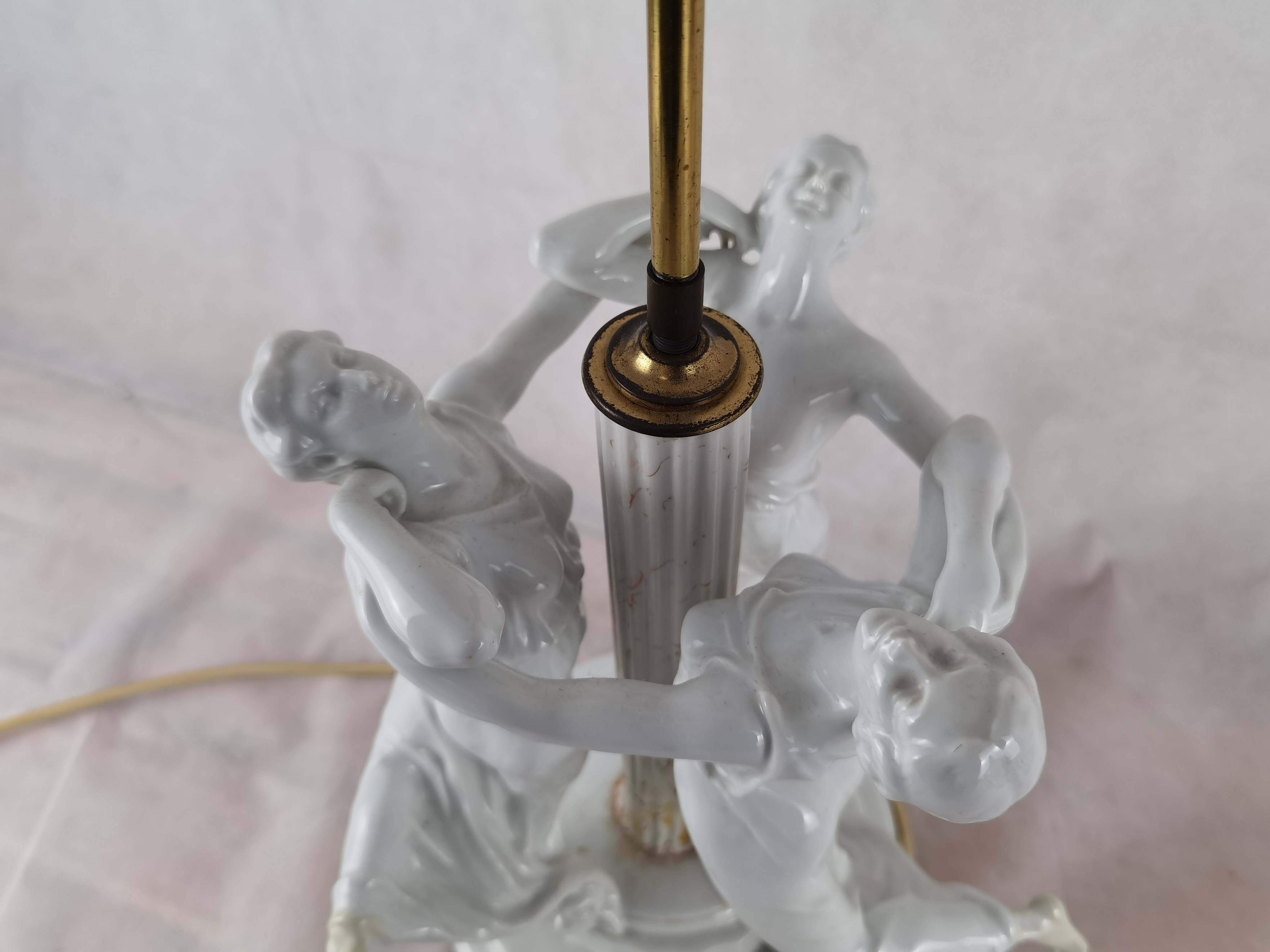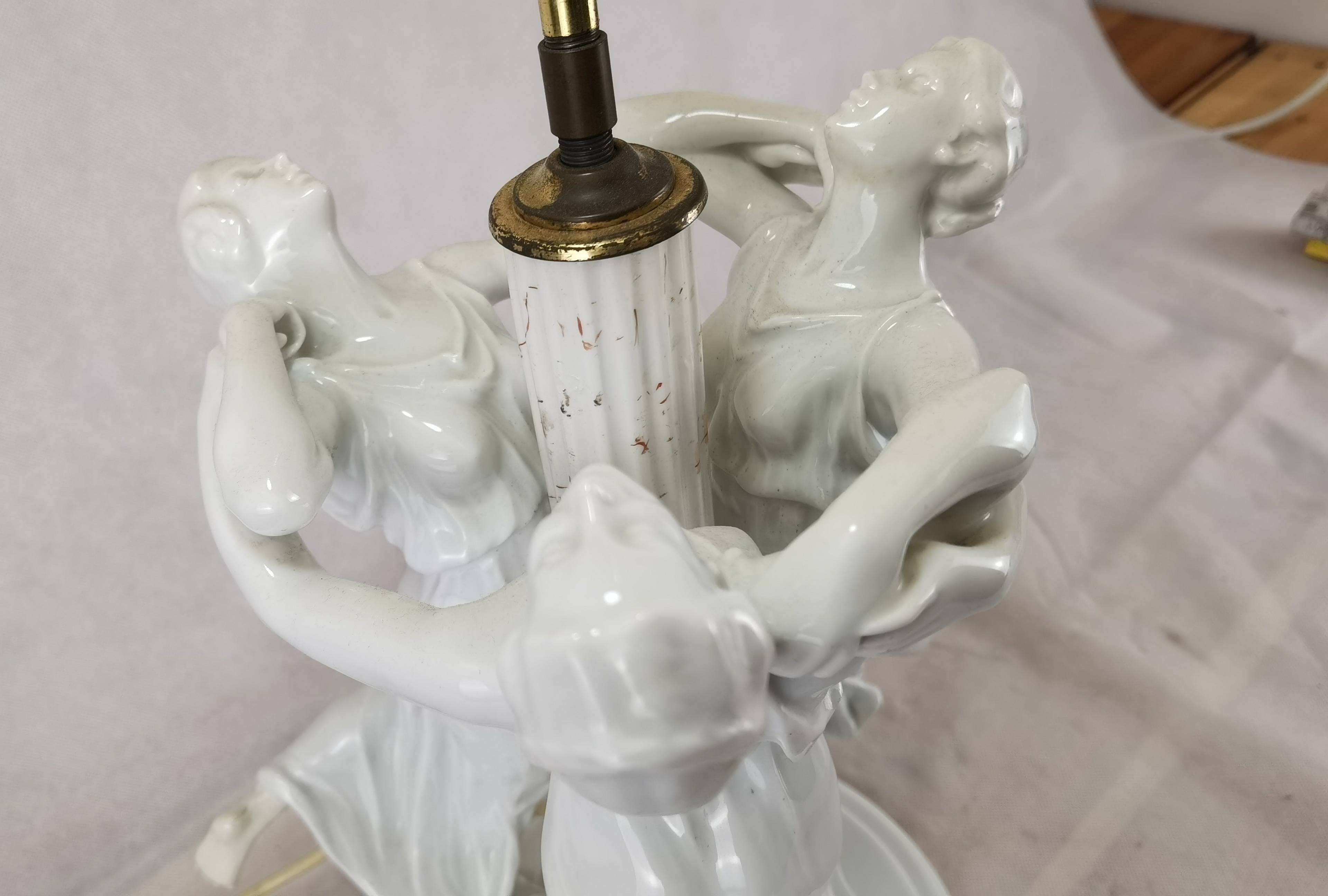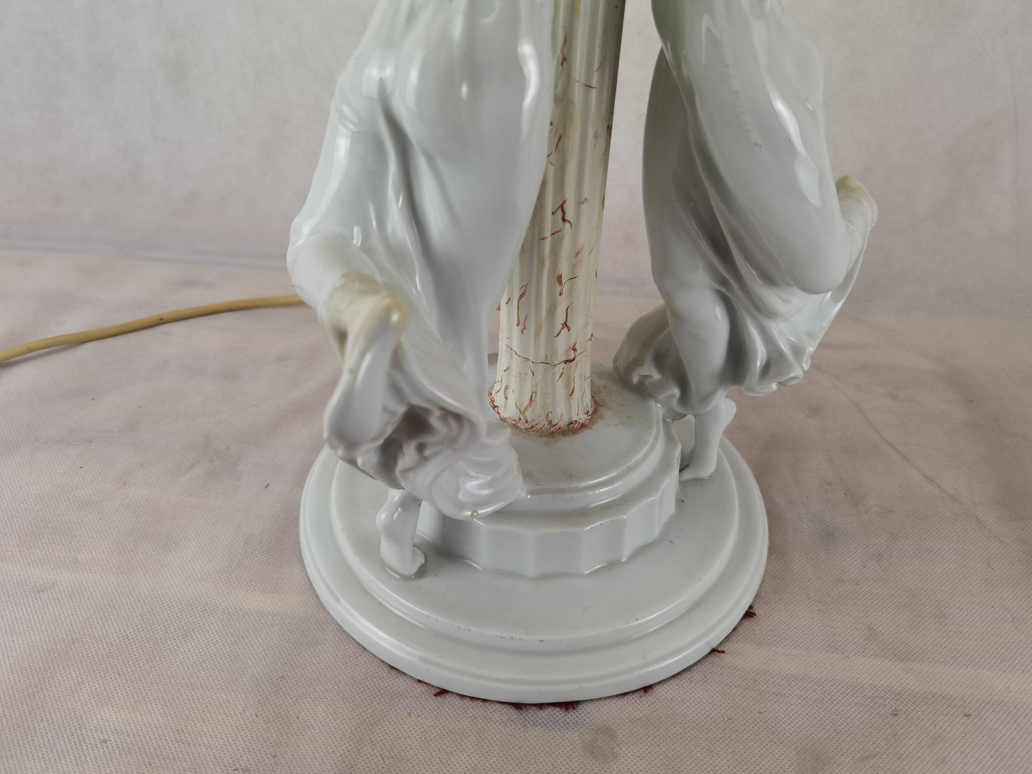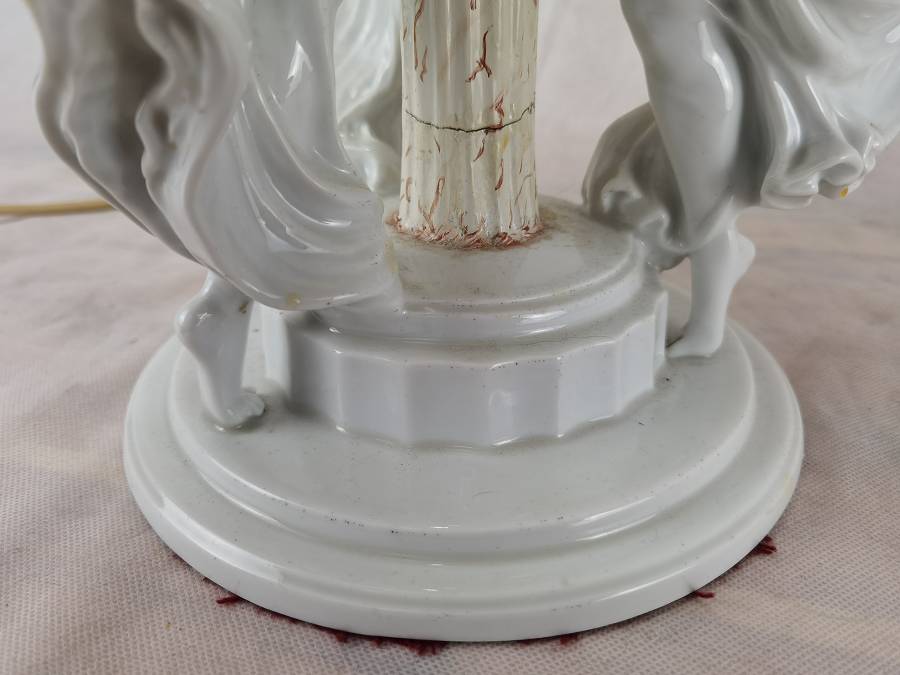 Masse/dimensions: Höhe/Height ca. 75 cm, Maximale Breite /Maximumum width ca. 45 cm Maximale Tiefe/Maximumum depth ca. 45 cm Material, Brennstellen/material, Hotspots: Die Lampe wurde aus Porzelan gefertigt und hat 2 Brennstellen mit E27 Fassung
