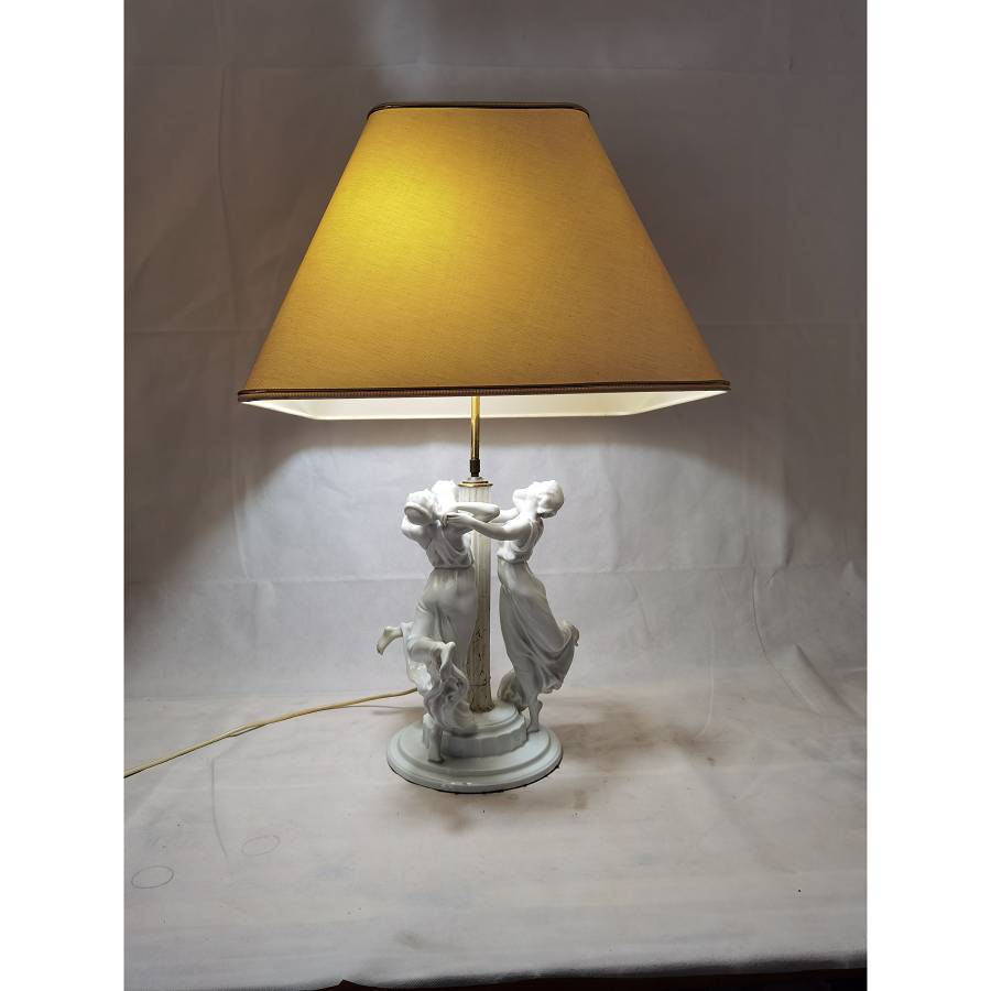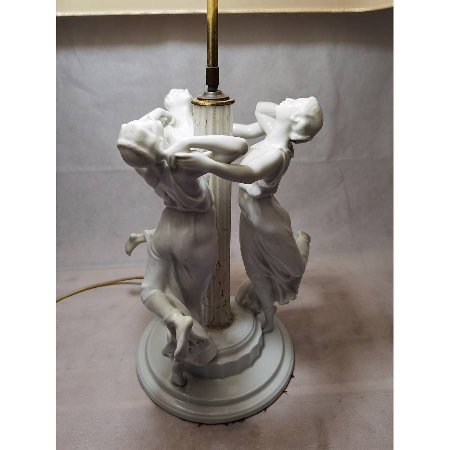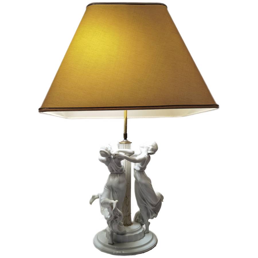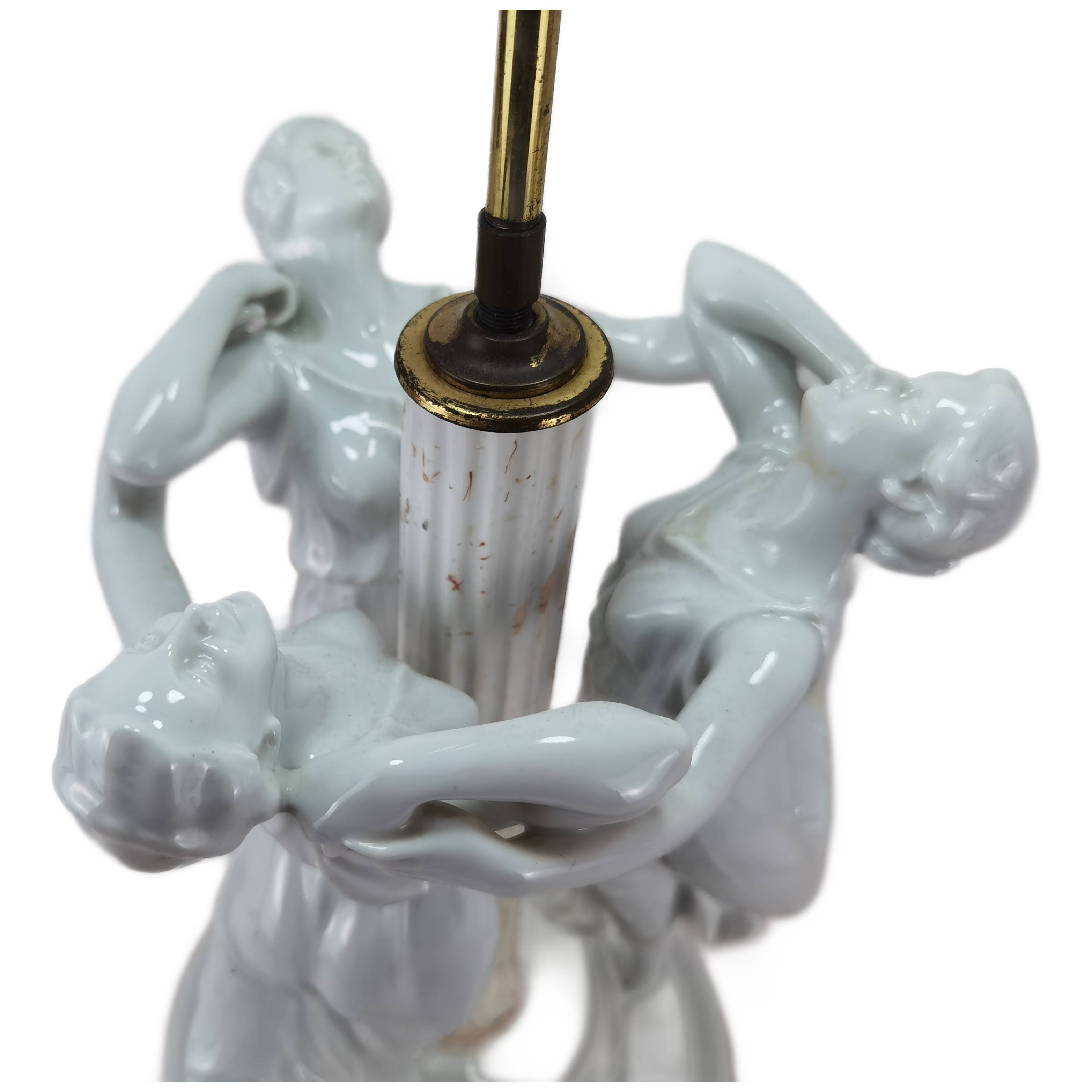 Masse/dimensions: Höhe/Height ca. 75 cm, Maximale Breite /Maximumum width ca. 45 cm Maximale Tiefe/Maximumum depth ca. 45 cm Material, Brennstellen/material, Hotspots: Die Lampe wurde aus Porzelan gefertigt und hat 2 Brennstellen mit E27 Fassung