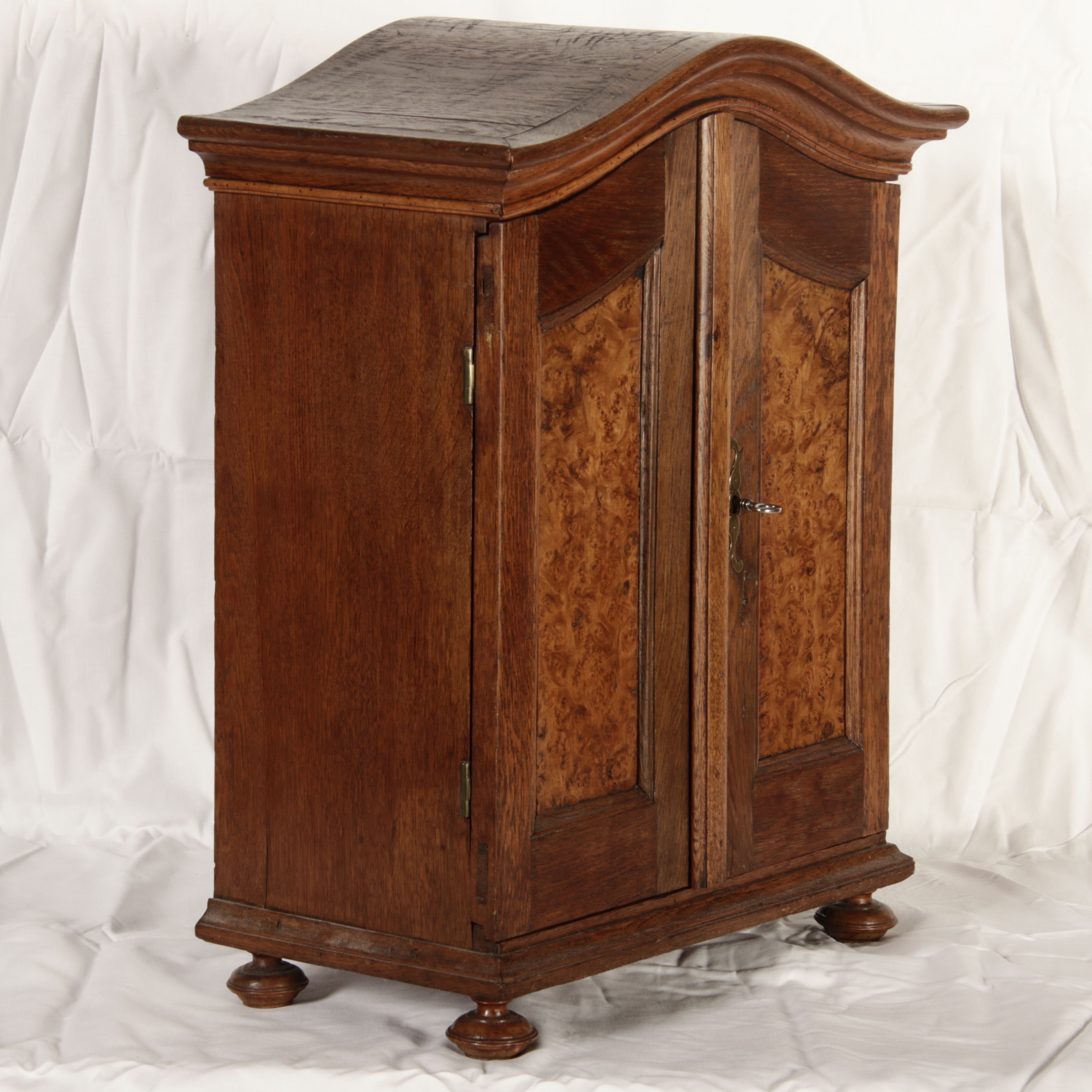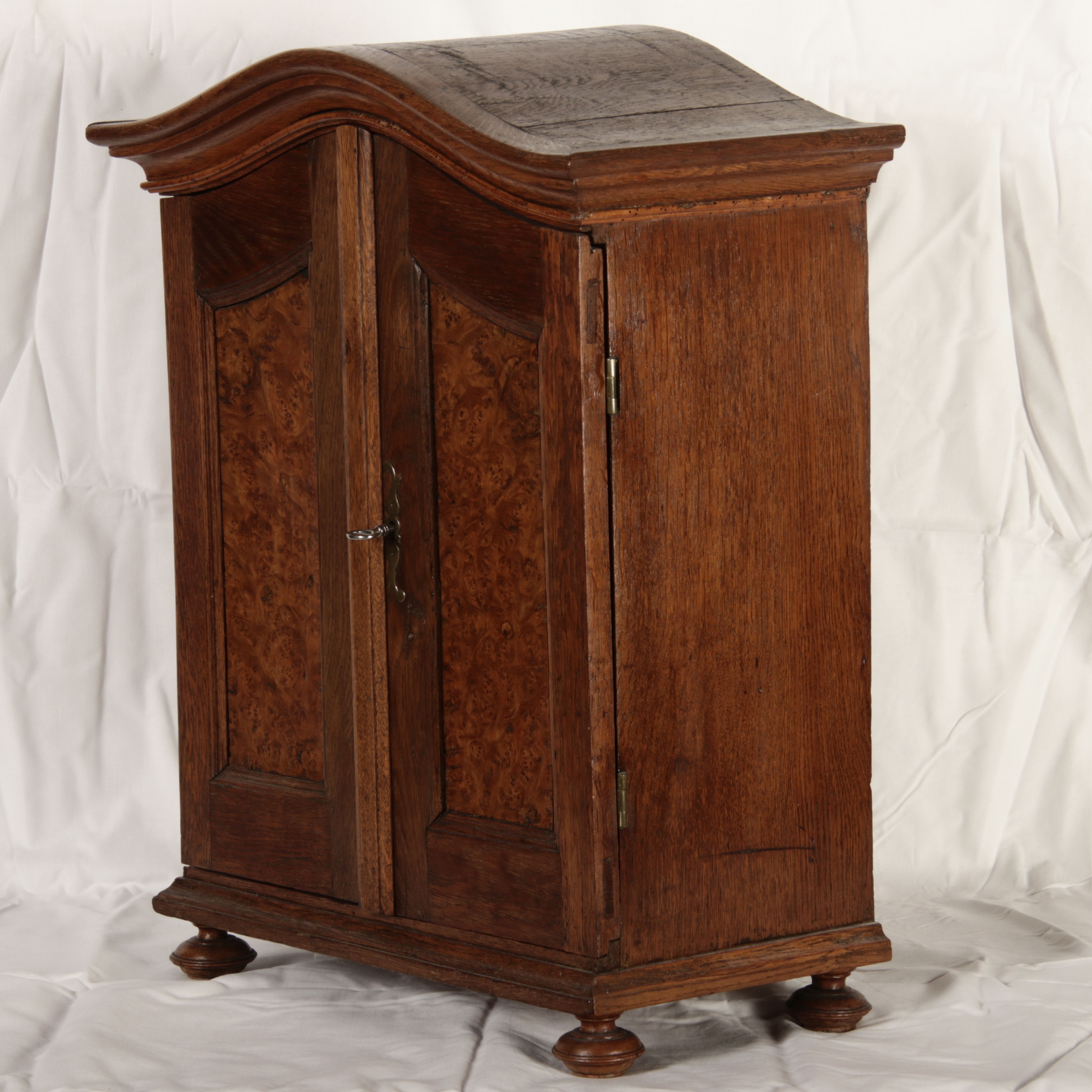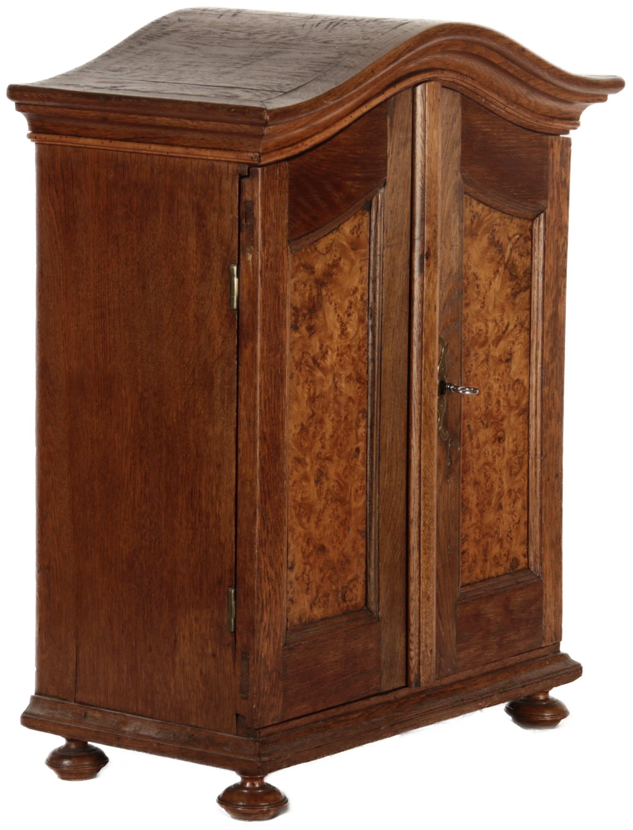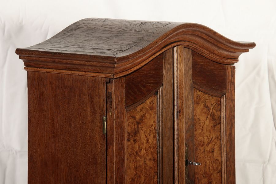 Masse/dimensions: Höhe/Height ca. 64 cm, Breite Korpus/Broad Boda ca. 43 cm, Breite Gesims/Broad cornice ca. 49,5 cm, Tiefe Korpus/Deep body ca. 25,5 cm, Tiefe Gesims/Deep cornice ca. 28 cm, Holz, Schlüssel/wood,
