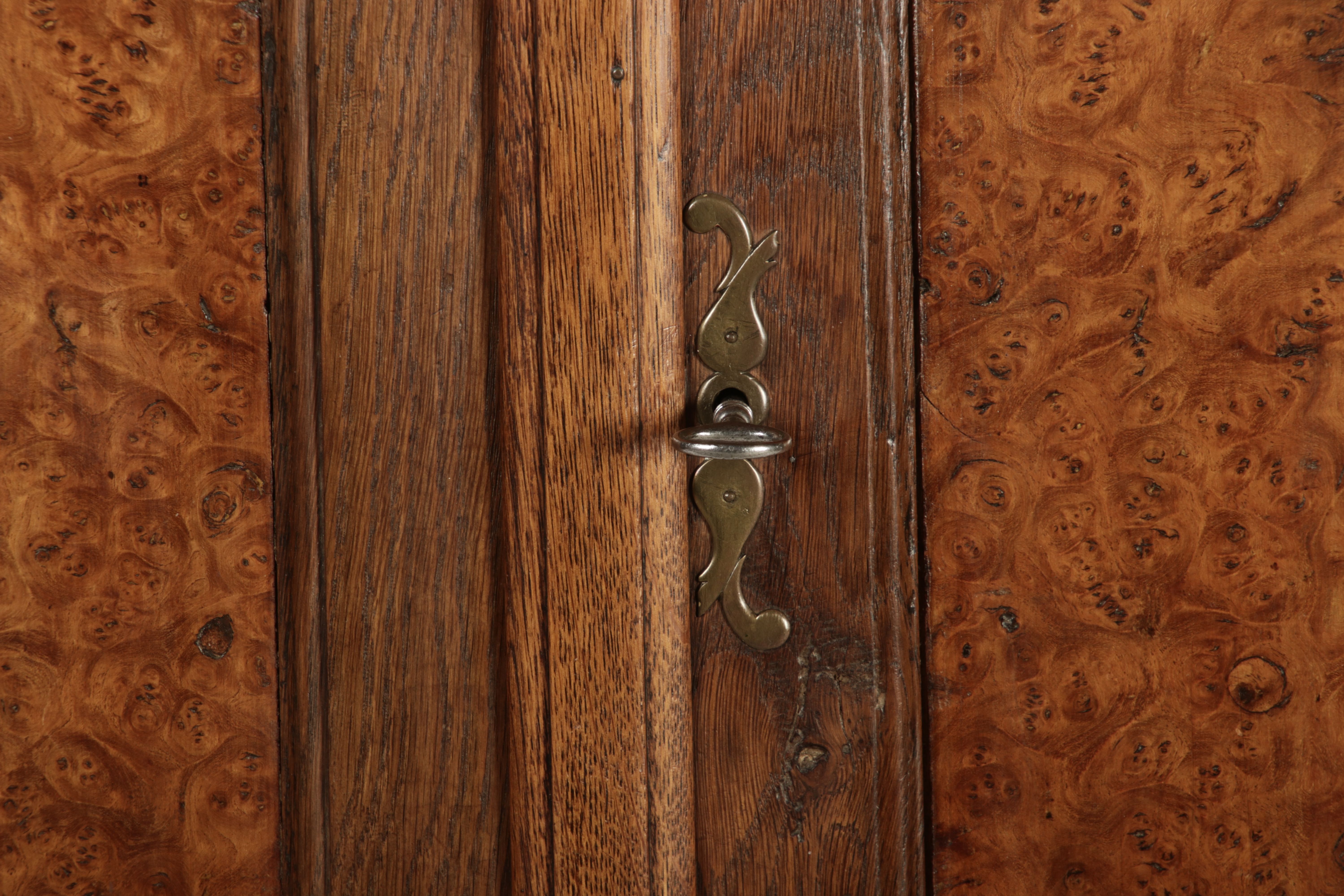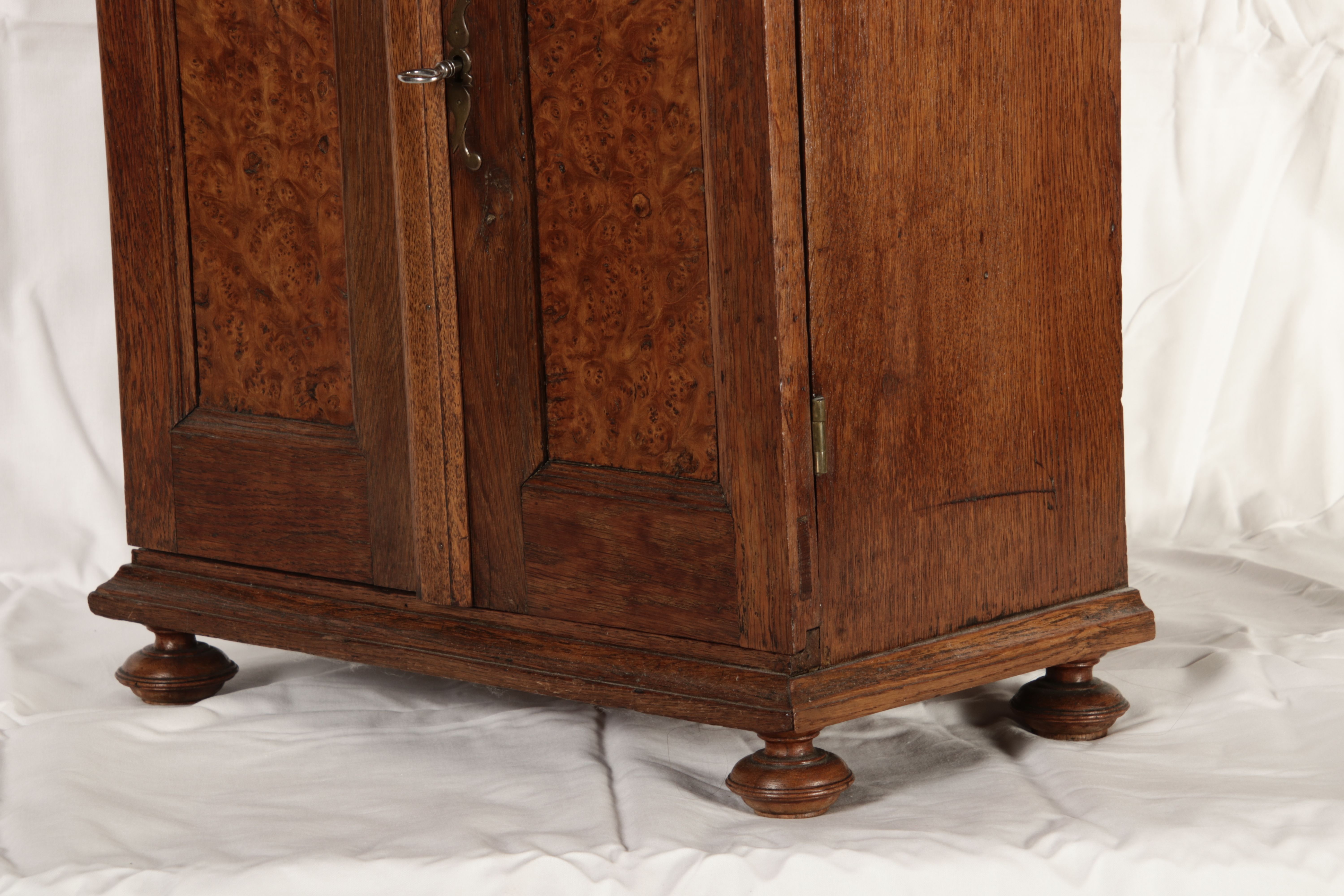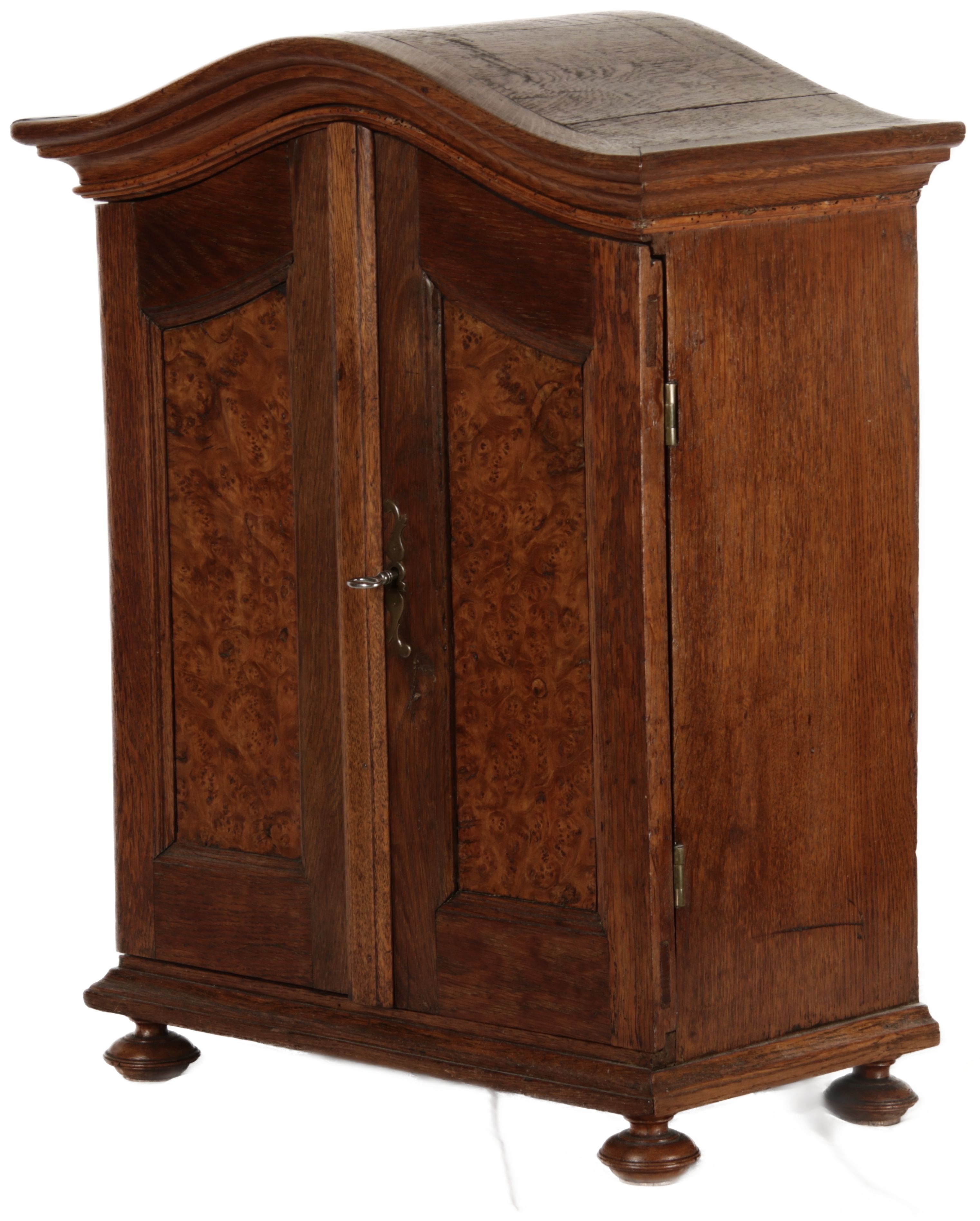 Masse/dimensions: Höhe/Height ca. 64 cm, Breite Korpus/Broad Boda ca. 43 cm, Breite Gesims/Broad cornice ca. 49,5 cm, Tiefe Korpus/Deep body ca. 25,5 cm, Tiefe Gesims/Deep cornice ca. 28 cm, Holz, Schlüssel/wood,