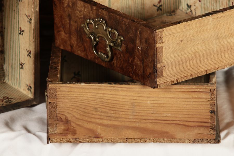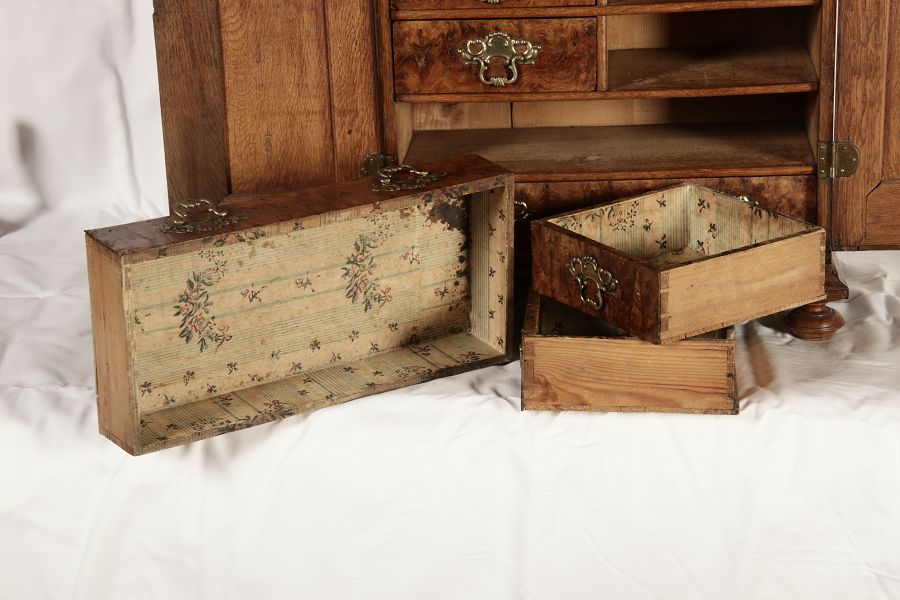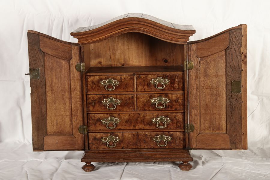 | Antikes Modelmöbel Barockschrank 18/19 Jh. Eiche innen 6 Schubladen |