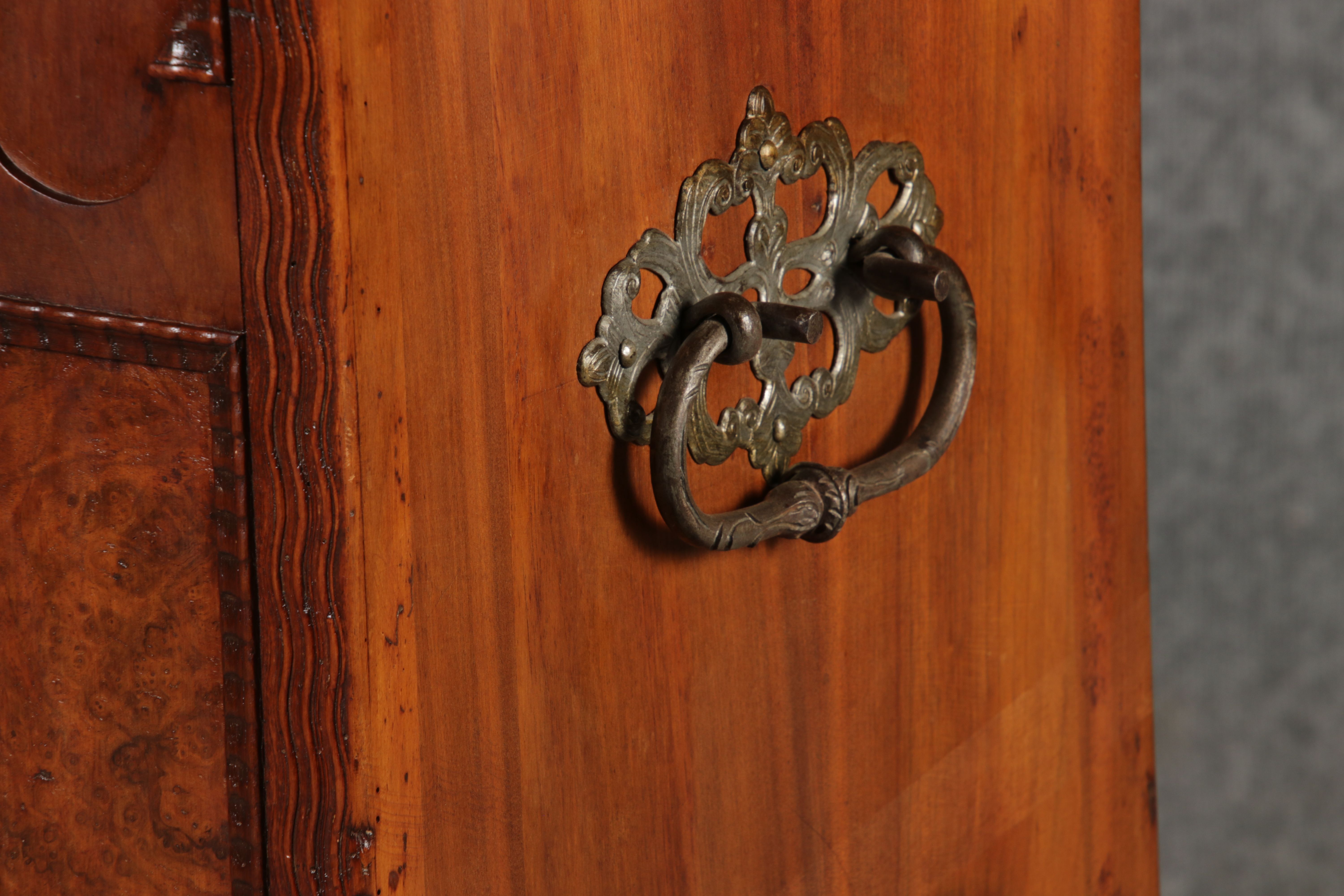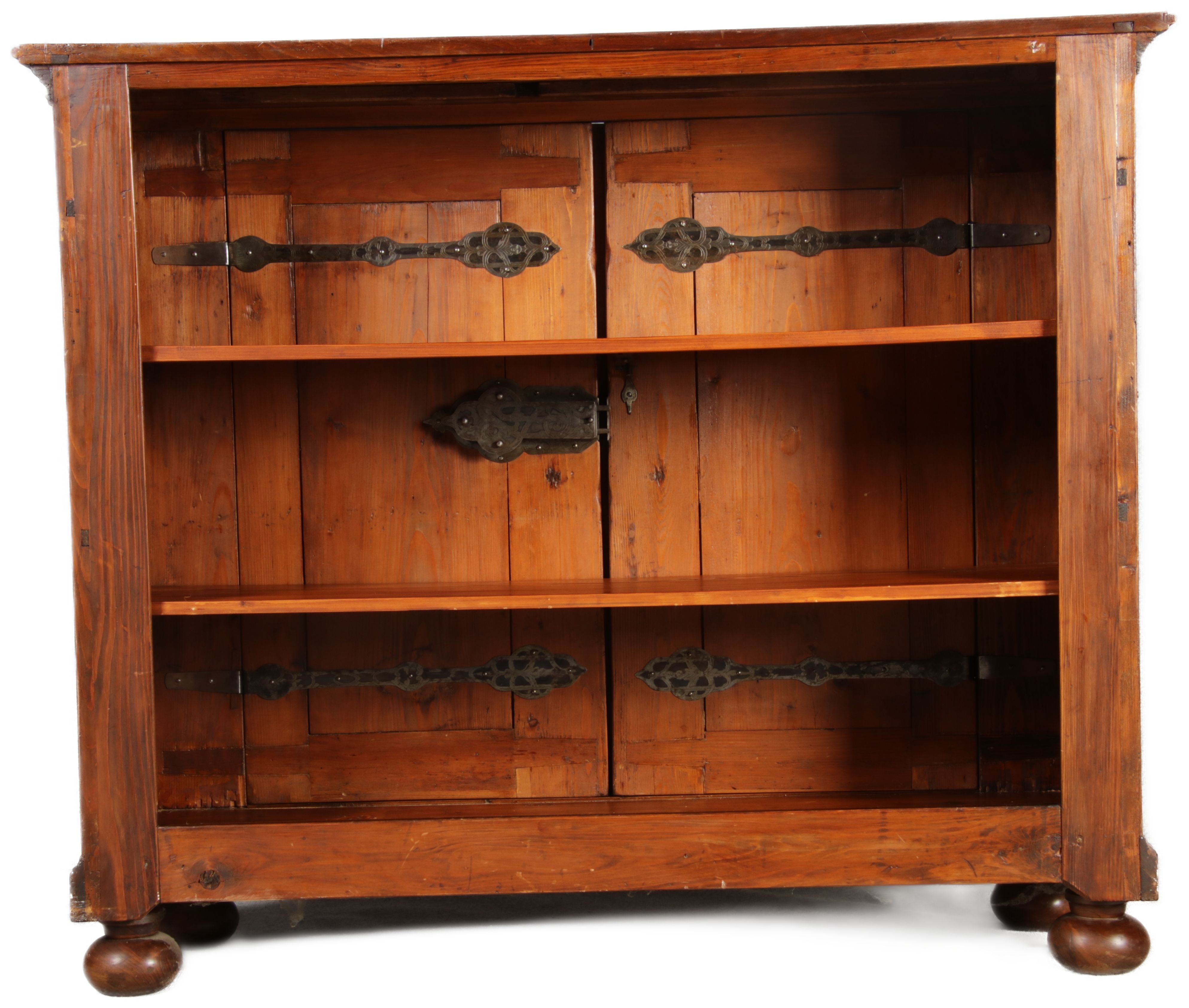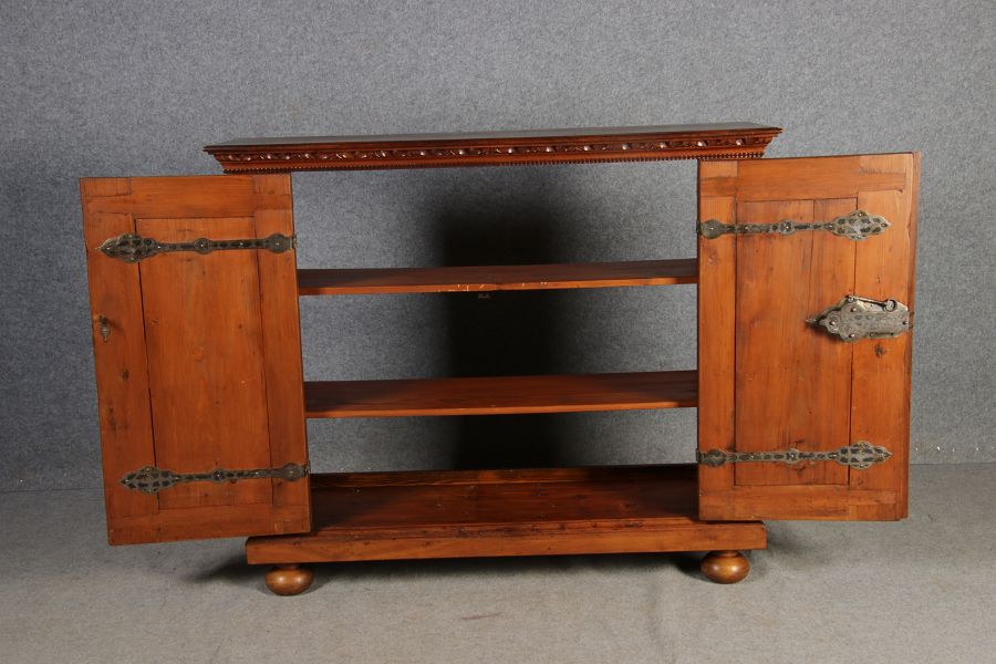 Masse/dimensions: Höhe/Height ca. 132 cm, Breite Korpus/Broad Boda ca. 146 cm, Breite Gesims/Broad cornice ca. 156,5 cm, Tiefe Korpus/Deep body ca. 43 cm, Tiefe Gesims/Deep cornice ca. 48 cm,