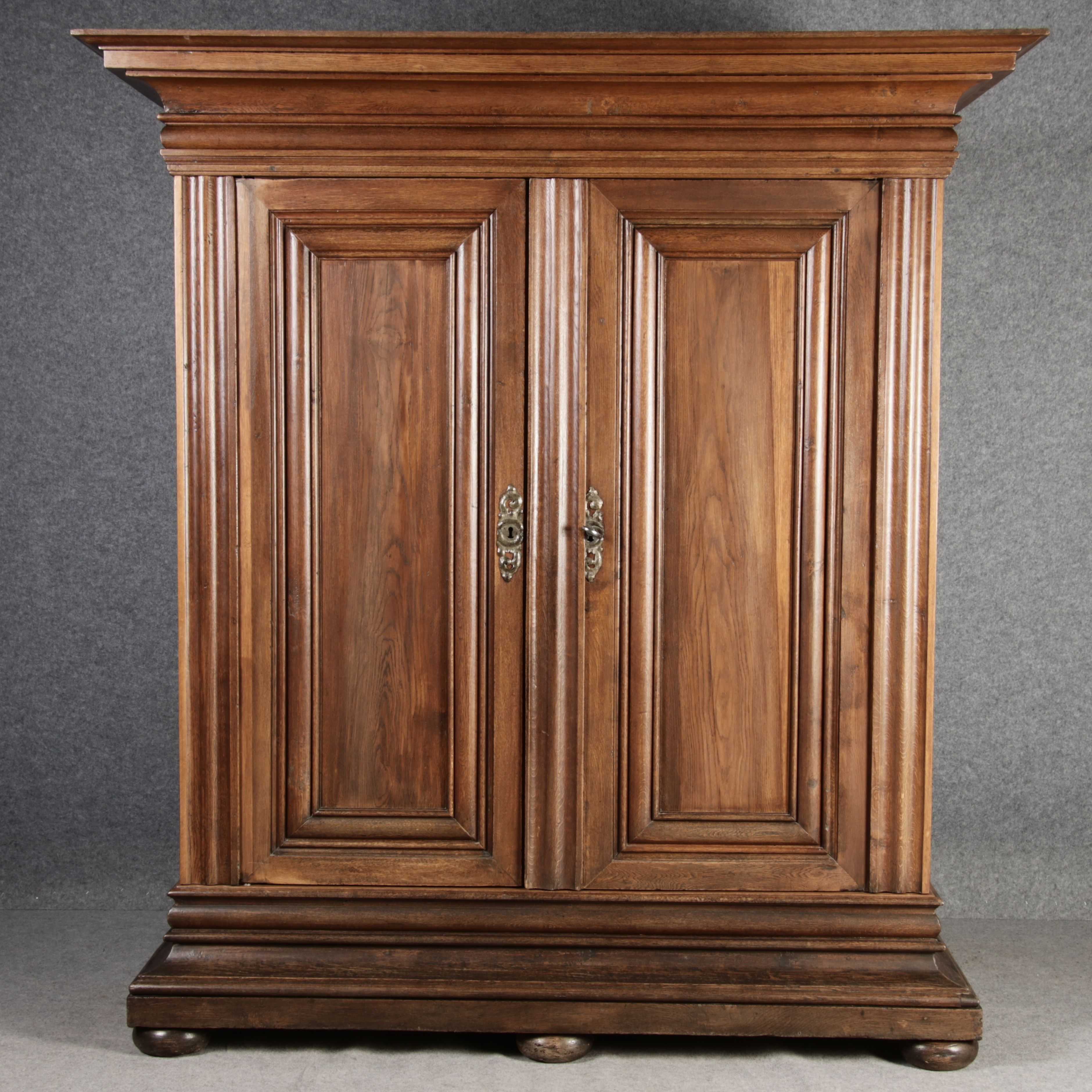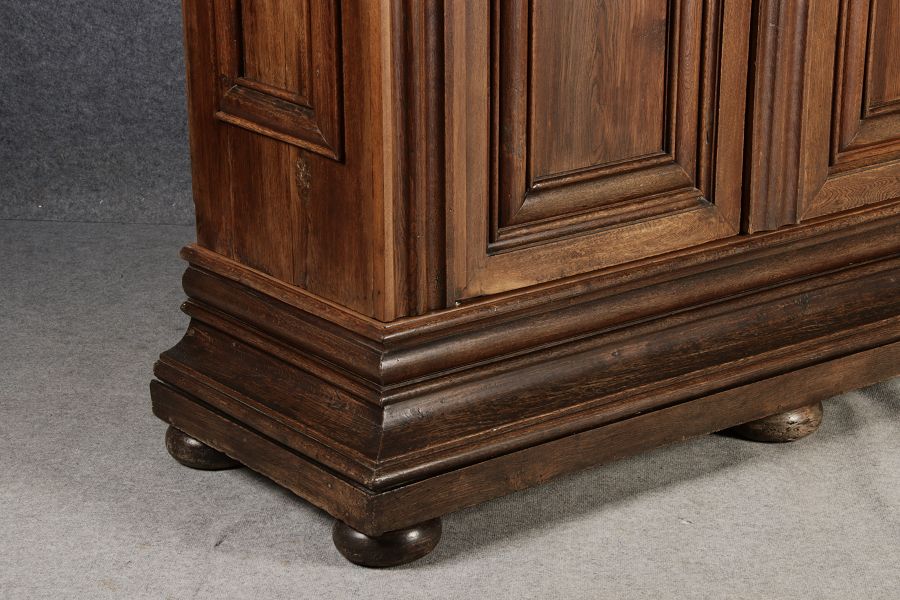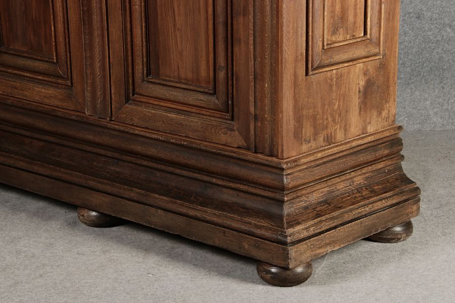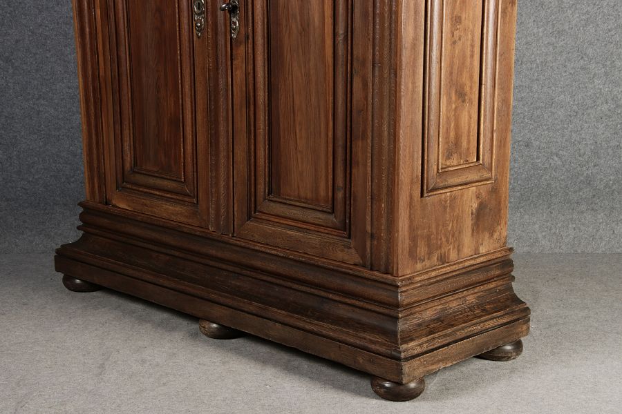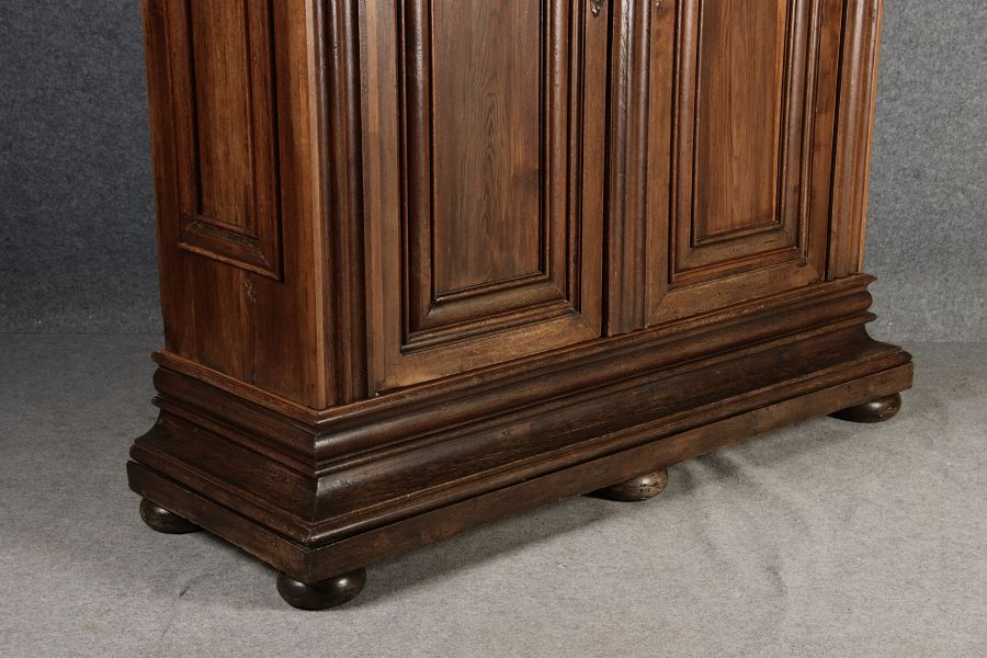 Masse/dimensions: Höhe/Height ca. 242 cm, Breite Korpus/Broad Boda ca. 182 cm, Breite Gesims/Broad cornice ca. 228 cm, Tiefe Korpus/Deep body ca. 60 cm, Tiefe Gesims/Deep cornice ca. 80 cm,
