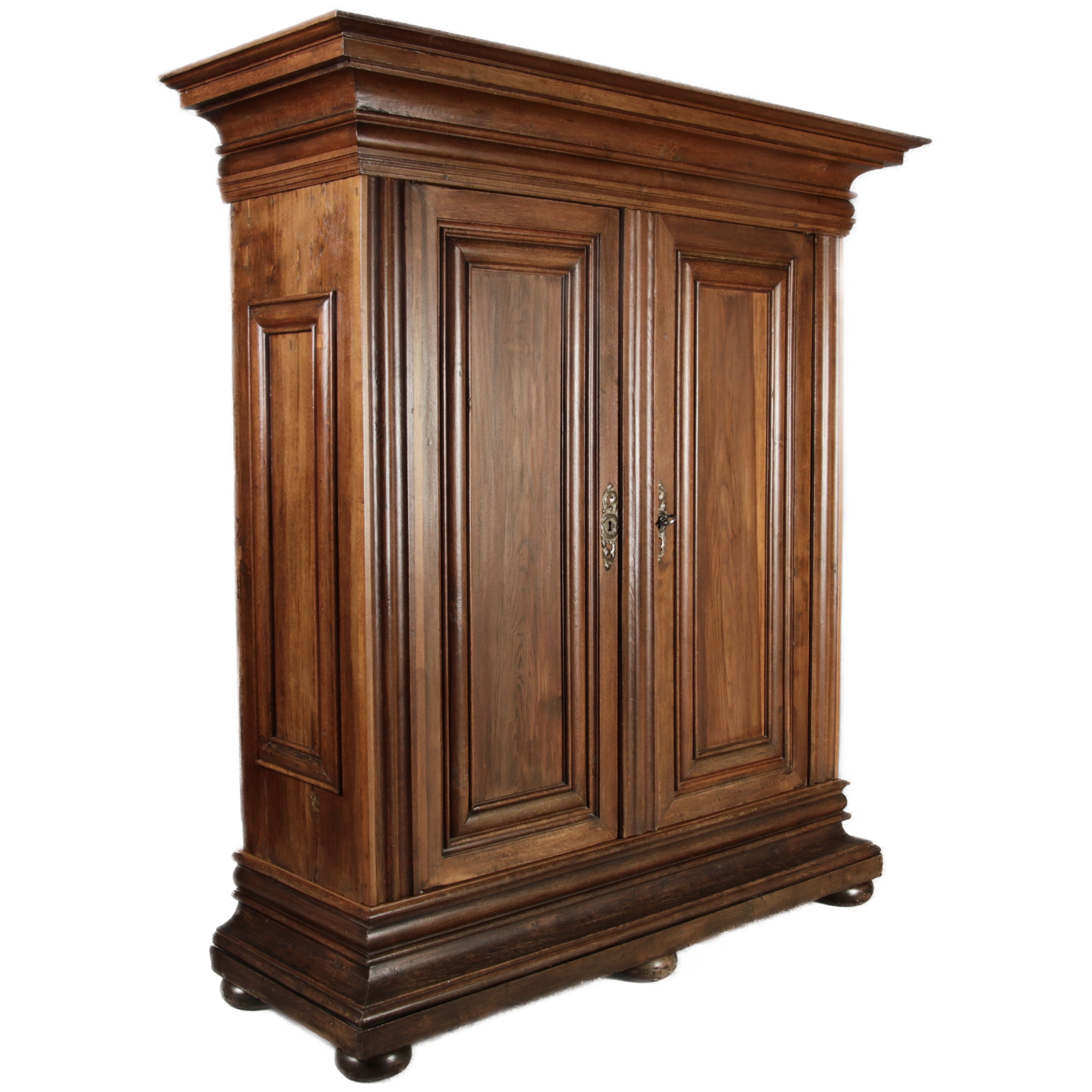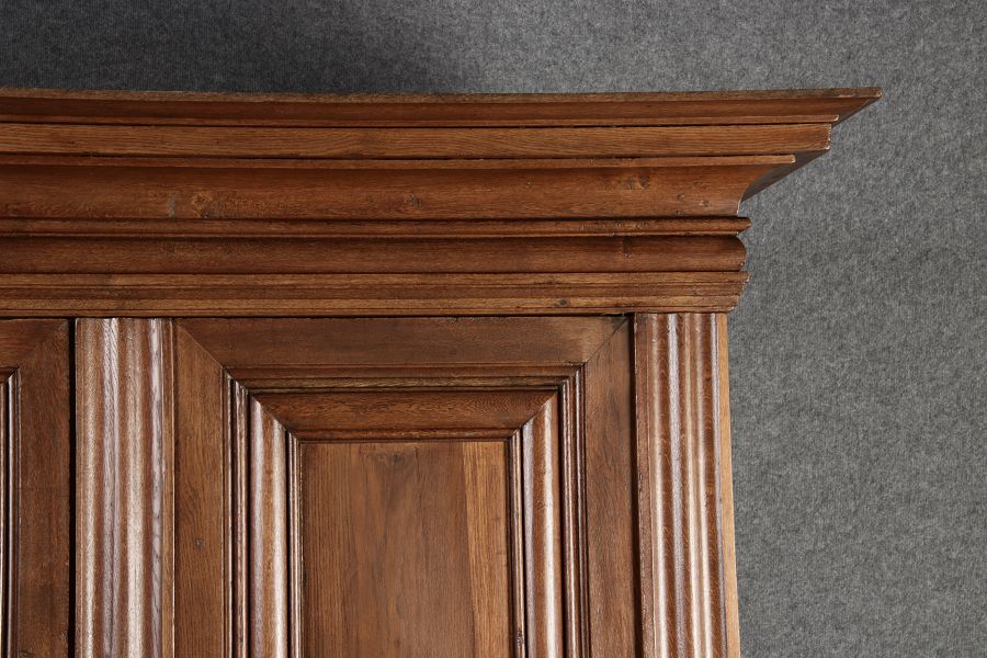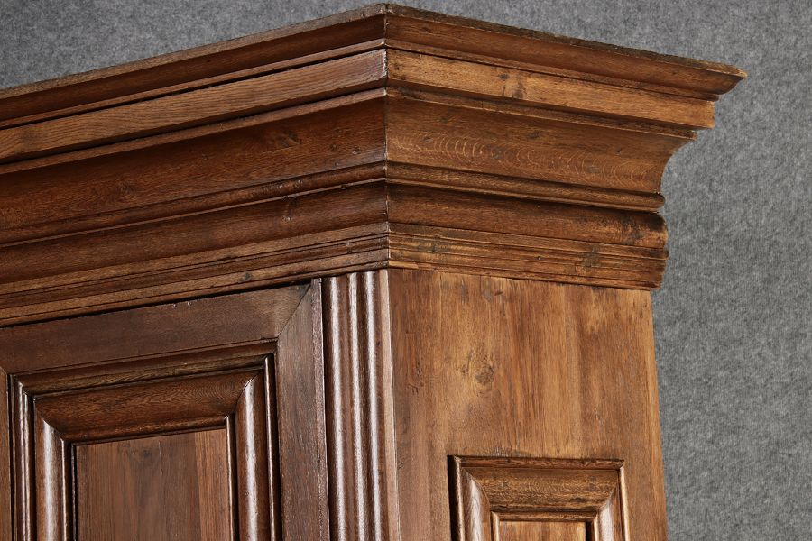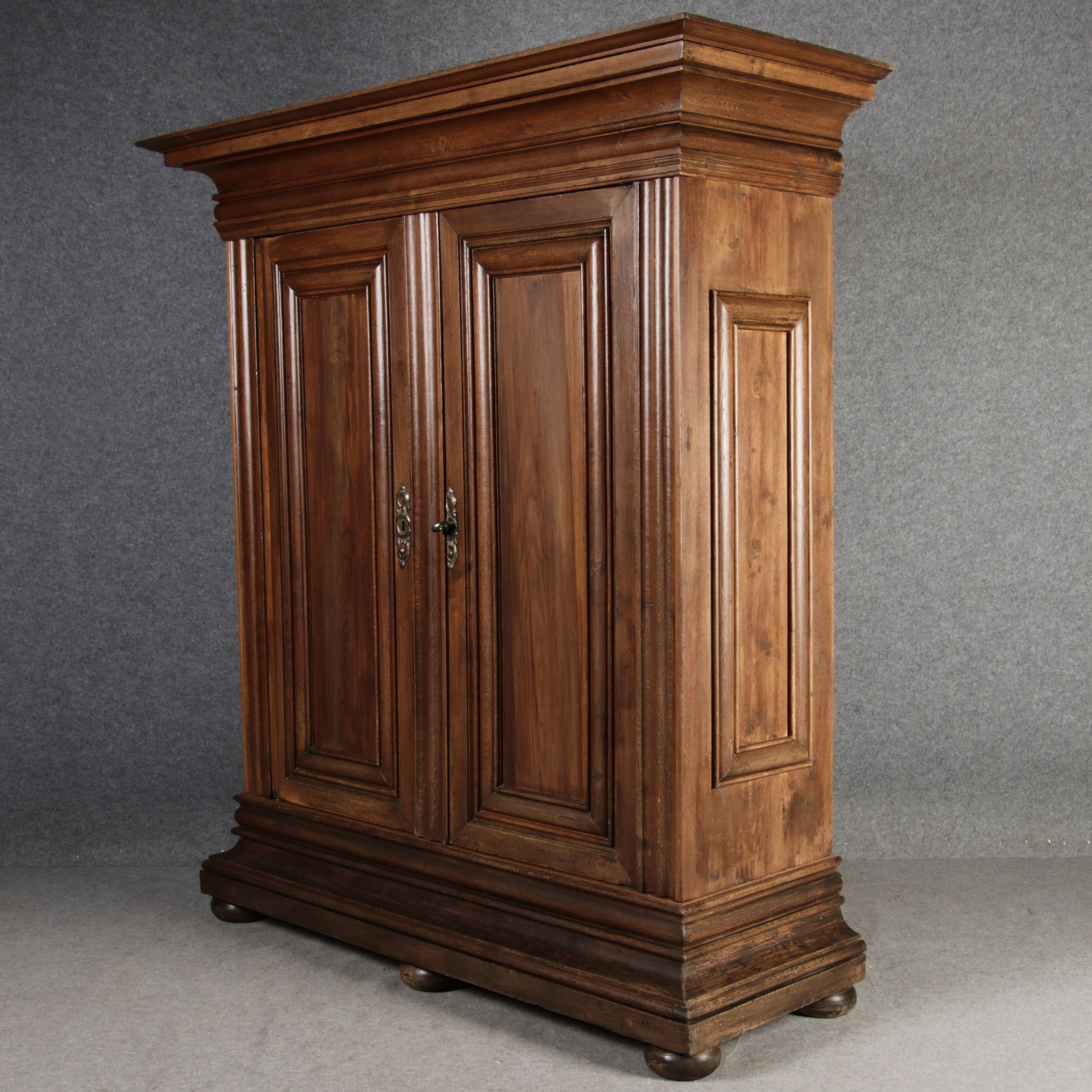 Masse/dimensions: Höhe/Height ca. 242 cm, Breite Korpus/Broad Boda ca. 182 cm, Breite Gesims/Broad cornice ca. 228 cm, Tiefe Korpus/Deep body ca. 60 cm, Tiefe Gesims/Deep cornice ca. 80 cm,